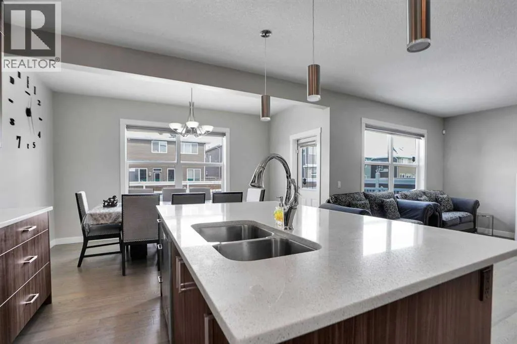 Welcome to 92 Red Embers Terrace NE, a spacious and well-designed residence offering over 4,100 sq. ft. of developed living space in the growing community of Redstone. Thoughtfully built for large and multi-generational families, this home delivers a rare combination of size, layout, and functionality.The home welcomes you with a grand double door front entry, creating a strong first impression. As you step inside, the main floor opens into a bright and functional layout designed for everyday living and entertaining.One of the standout features is the main floor bedroom suite, offering a generously sized bedroom complete with its own private ensuite bathroom and walk-in closet. This setup is ideal for extended family, guests, or anyone looking for main-level living convenience.The kitchen is designed to impress, featuring quartz countertops, stainless steel appliances, and ample cabinetry. A separate spice kitchen adds extra flexibility for cooking, especially for larger families. The oversized walk-in pantry with extensive shelving provides exceptional storage space that is rarely found.The main living and dining areas flow seamlessly together, creating a comfortable and inviting space for gatherings and family time.Upstairs, you will find a large bonus room along with four spacious bedrooms. Most of the bedrooms are designed with its own private ensuite and walk-in closet, offering a high level of privacy and comfort for every member of the household. This is a rare and highly desirable feature.Additional highlights include a built-in security system with monitor displays, a double attached garage, and an extended front driveway providing ample parking.The backyard is fully finished with a large concrete pad, offering a clean, low-maintenance outdoor space perfect for entertaining without the upkeep.The fully developed basement includes two bedrooms, a kitchen, a full bathroom, a large living area, and separate laundry. Please note this is an illeg al basement suite.Located close to parks, shopping, transit, and everyday amenities, this home offers both convenience and flexibility in one of Northeast Calgaryâs growing communities. (id:27476)