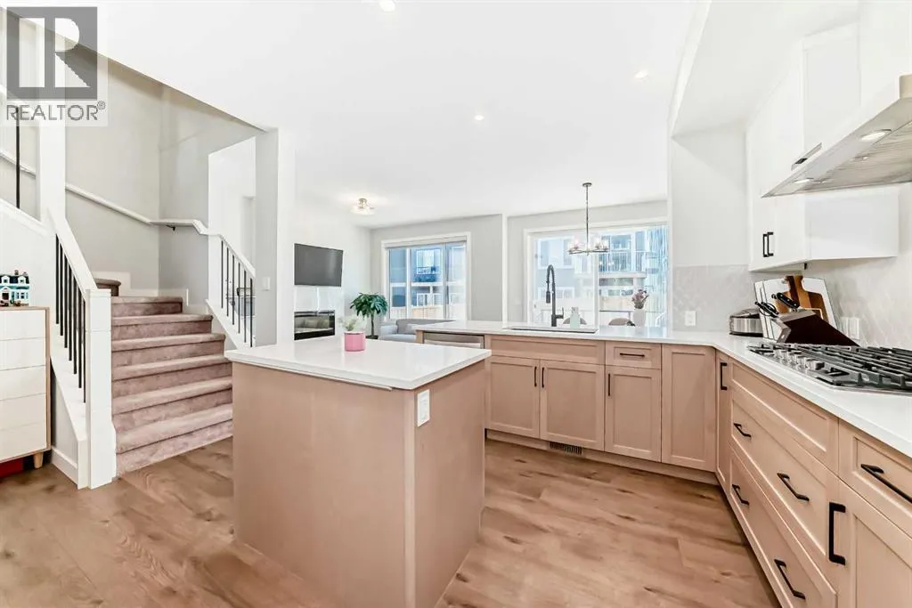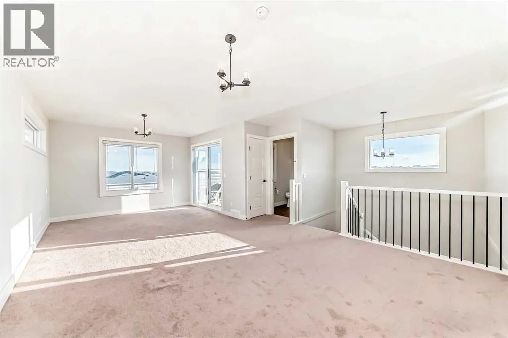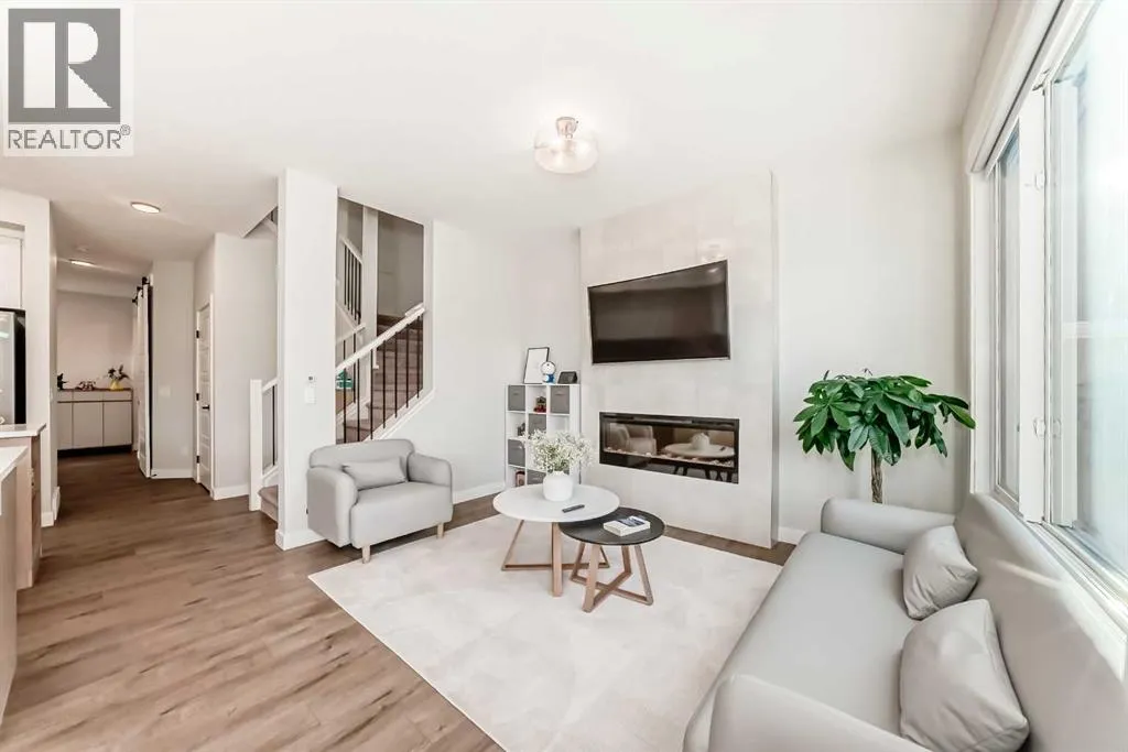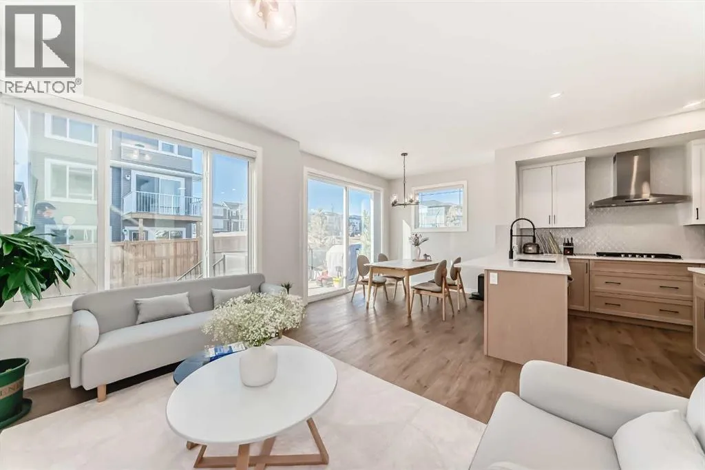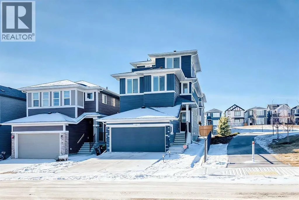 Welcome to this stunning 3-storey home, perfectly situated on a TRADITIONAL CORNER LOT beside GREEN SPACE. Featuring windows on all four sides, open views, minimum sidewalk maintenance, and a west-facing backyard that bathes in afternoon sunlight, this home combines privacy and natural light. This smart home also includes triple-pane windows and a high-efficiency furnace for enhanced comfort and energy savings. Located within walking distance to future schools and offering easy access to parks, pathways, and major routes, shopping and amenitiesâincluding Costco, T&T Supermarket, and a variety of restaurantsâare just 12 minutes away. Main floor impresses with 9â ceilings, expansive windows, and Luxury Vinyl Plank flooring throughout, creating a bright and modern living space. A versatile flex room with a barn door and large window offers the perfect setup for a home office or additional living area. The open-concept great room is centered around an electric fireplace with a floor-to-ceiling tile surround, seamlessly connecting to an executive kitchen designed for both everyday living and entertaining. The kitchen features built-in stainless steel appliances, a chimney hood fan, waterline to fridge, a quartz island counter, and a spacious walk-in pantry. Step outside to the rear deck for effortless indoorâoutdoor living. The second floor offers 3 spacious bedrooms, each featuring large walk-in closets, with two walk-in closet enhanced by windows that bring in abundant natural light. A bright bonus room with two windows provides the perfect space for family gatherings or entertainment. The third-level is an absolute standout, offering a vaulted ceiling, windows on all sides, and a private balcony. This top-floor space can serve as a future entertainment area or additional living space, with one side overlooking serene green space and the other offering expansive views stretching as far as the Livingston community. A convenient half bathroom on this level completes the space, making it perfect for family gatherings, relaxation, or entertaining. Donât miss this exceptional opportunityâexperience the perfect blend of style, functionality, and location. Schedule your private tour today and see all this home has to offer. (id:27476)