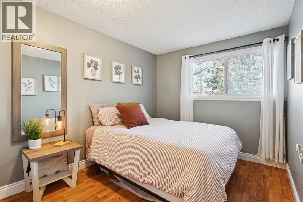 PRIME INVESTMENT IN VARSITY!!! Welcome to Varsity Estates Village, this is one of Calgaryâs most sought after and exceptionally well-managed townhome communities, known for its pride of ownership, strong management, and unbeatable long term value. This is your opportunity to own in a prime Varsity location, offering the perfect balance of safety, convenience, and lifestyle. Just minutes to the University of Calgary, major hospitals, downtown, parks, walking paths, and golf courses, this location is ideal for first time buyers, professionals, or savvy investors looking for a solid property in a high demand area. This beautifully updated, move-in ready two storey townhome immediately impresses. A welcoming foyer opens into a bright, spacious living room featuring a stunning corner stone-faced wood burning fireplace, the perfect centre piece for cozy winter nights or to set a nostalgic ambiance. The kitchen has been thoughtfully renovated with both style and function in mind, showcasing stainless steel appliances, crisp white cabinetry, warm wood countertops, a deep granite sink, and elegant gold hardware. The adjacent dining area offers ample space to entertain or enjoy everyday living. Durable laminate flooring flows throughout the main level, complemented by a fully renovated two-piece powder room for added convenience. Step outside to your private, fully fenced front patio which is an ideal space for morning coffee, summer BBQs, or unwinding in the evening sun with friends. Upstairs, youâll find a beautifully refreshed 4-piece bathroom featuring a deep soaker tub, updated vanity, and excellent storage. The primary bedroom is bright and inviting with large windows and a full-size closet, while the second bedroom is generously sized making it perfect for guests, a roommate, or to be used as a home office. The fully developed basement adds incredible versatility with a cozy family room and a flexible space currently used as a gym. This area is easily adaptable for a h ome office, studio, or hobby area. The laundry and utility room also provide additional storage. Extensive updates include newer vinyl flooring, appliances, renovated kitchen and bathrooms, and a fresh paint throughout which offers you a true move in ready with a peace of mind. A dedicated parking stall is conveniently located just steps from the unit. The professionally managed complex features reasonable condo fees and a strong reputation, making this an excellent investment opportunity or place to call home.With its stylish updates, private outdoor space (ideal for pets), unbeatable location, and exceptional value, this is one of the best opportunities currently available in Varsity. Book your showing today, this one stands out! (id:27476)