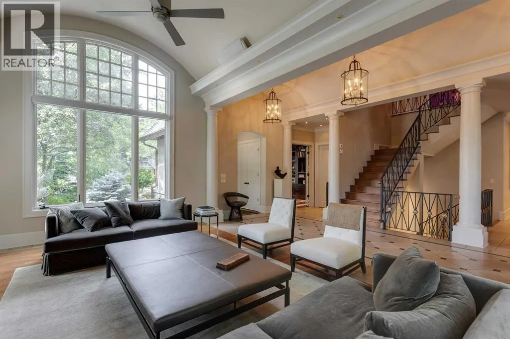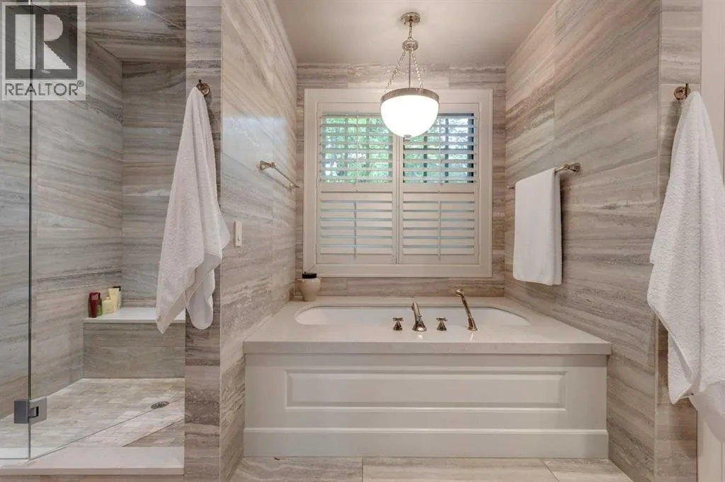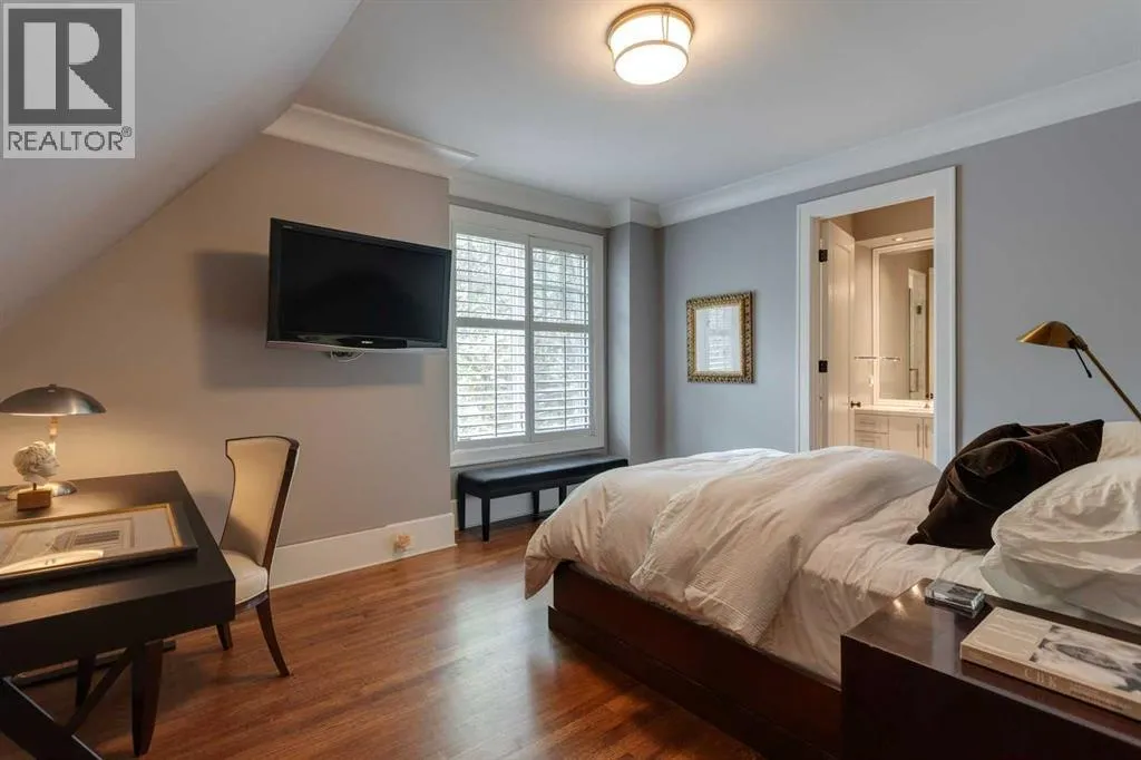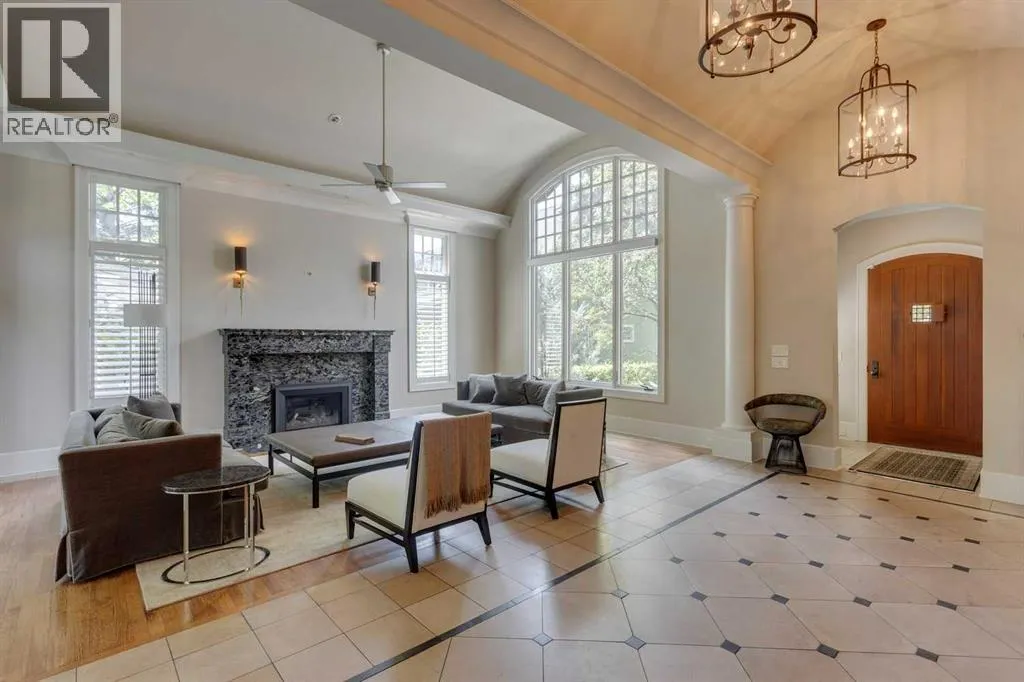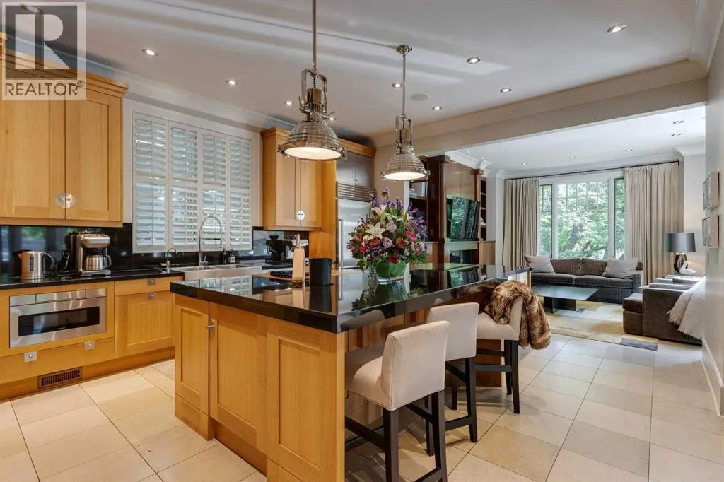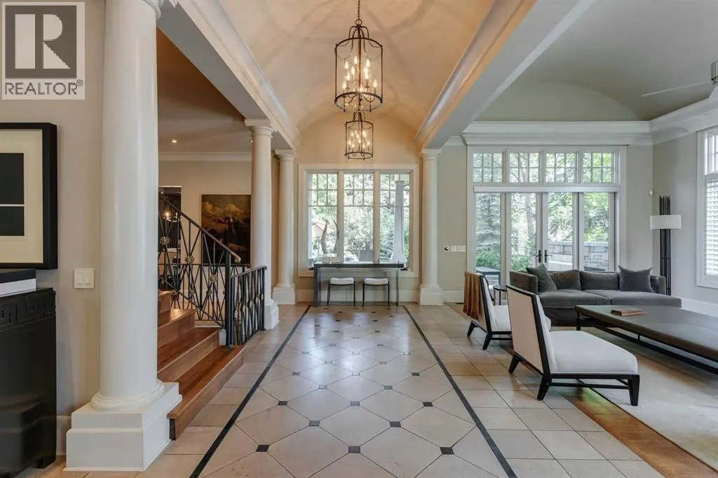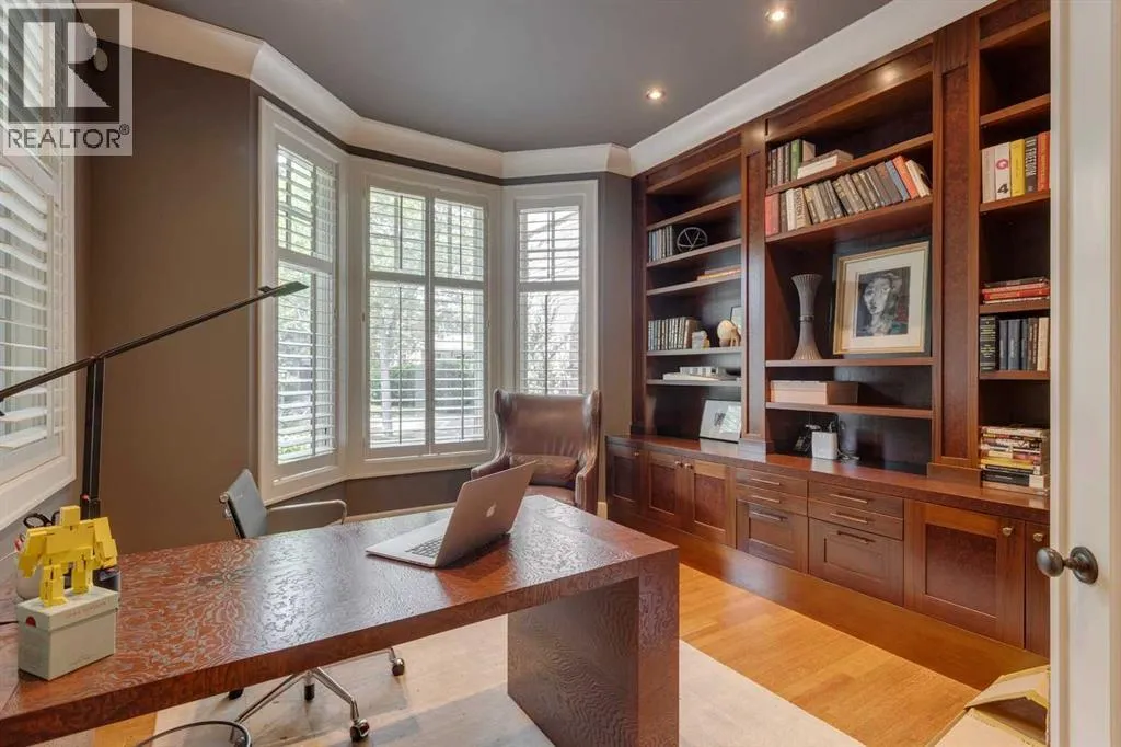 A residence of rare distinction in the prestigious community of Mount Royal. Designed by McDowell & Associates, this extraordinary estate embodies timeless architecture, enduring craftsmanship, & refined sophistication at every turn. Situated on an 80x161 ft (10,764 sq. ft.) professionally landscaped lot, this stately property offers over 5,822 sq. ft. of impeccably finished living space across three levels, featuring five bedrooms (note: basement bedroom has been converted to a large executive office) & six beautifully appointed bathrooms. From the moment you step through the grand foyer, the home reveals its pedigree - barrel vaulted ceilings through the foyer & living room, exquisite millwork, Loewen triple-pane windows & a harmonious blend of oak hardwood & honed limestone flooring. The formal living room is anchored by a gas fireplace with a marble surround, while the dining room exudes elegance beneath a statement chandelier. At the heart of the home lies the Empire-designed kitchen, outfitted with Sub-Zero, Wolf & Miele appliances, this culinary space offers inset cabinetry, granite counters, a large center island & countertop seating overlooking the private gardens. A mudroom leading from the garage & executive main-floor office with built-ins complete this level. The upper floor is a retreat of calm sophistication. The primary suite is an indulgent sanctuary, featuring a six-piece marble ensuite with steam shower, deep soaker tub, dual vanities & heated floors, alongside two custom dressing rooms. Three additional bedrooms, each with private marble ensuites, offer comfort & privacy for family & guests. The lower level continues the theme of understated luxury with a fifth bedroom (presently converted to an executive office with custom oak shelving & rolling ladder) & full spa bath with steam shower, a temperature-controlled wine room, private fitness studio (could be converted into a large family room). A spacious laundry along with ample storage provides f unctionality without compromise. The triple attached garage is as impeccably finished as the home itself - featuring epoxy flooring, built-in cabinetry, a slat wall organization system & hot/cold water lines for car washing or equipment care. Every element reflects the same meticulous attention to quality & design found throughout the residence. Outdoors, the professionally landscaped gardens form a private sanctuary of greenery & light, with limestone pathways, gas lanterns & multiple seating areas ideal for elegant entertaining with an intimate seating area in the garden surrounding a stone firepit. With in-floor heating, advanced mechanical systems & curated designer lighting throughout, this home offers enduring comfort & sophistication. Perfectly positioned within walking distance to The Glencoe Club, premier schools & the boutiques and restaurants of 17th Avenue & 4th Street SW, this distinguished Mount Royal residence represents the pinnacle of luxury living in Calgaryâs most coveted neighbourhood. (id:27476)