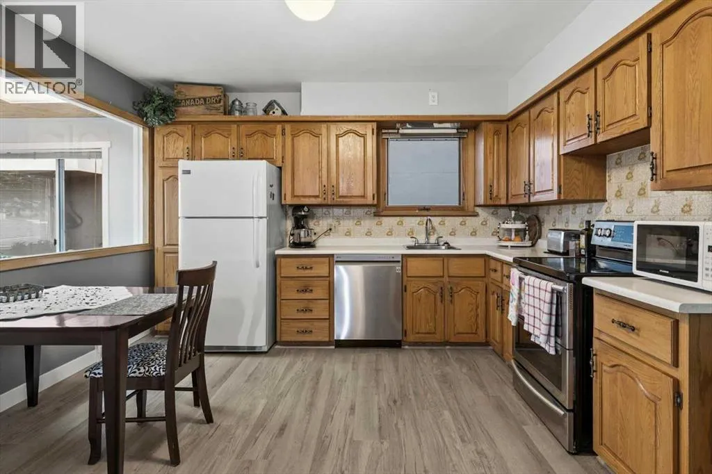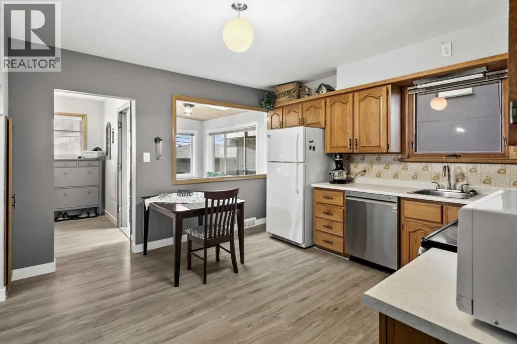 Warm and inviting, solidly built 1954 raised bungalow located in the community of Renfrew. This beautifully maintained home offers over 1,300 sq. ft. above grade on a gorgeous 50â x 120â fenced lot.The main floor features a spacious front living room, two bedrooms, four-piece bath, large open kitchen, and a generous dining area, ideal for family living or entertaining. The fully finished lower level offers two oversized bedrooms (note large windows and roll shutters), renovated three-piece bath, and a very large family room with large windows that allow an abundance of natural light.The rear yard is large and fully fenced, complete with a hot tub, double detached garage (24' 10" x 22'), and additional RV parking.Recent upgrades include painted interior throughout (2023), six new vinyl windows (four on the main level and two downstairs), luxury vinyl plank flooring throughout the main floor, hot water tank (2022), high-efficiency furnace (2018), renovated lower-level bathroom (2022), back fence (2022), back deck (2021) and shingles replaced in 2016.Ideally located close to downtown, parks and pathways, the Bow River, transit, shopping, and schools. This property offers both comfort and convenience in a highly desirable location. (id:27476)