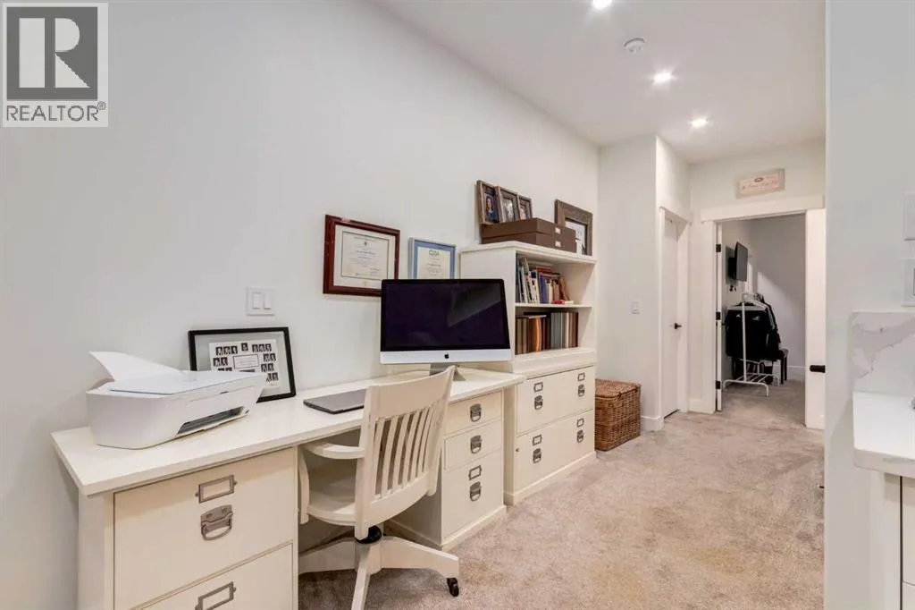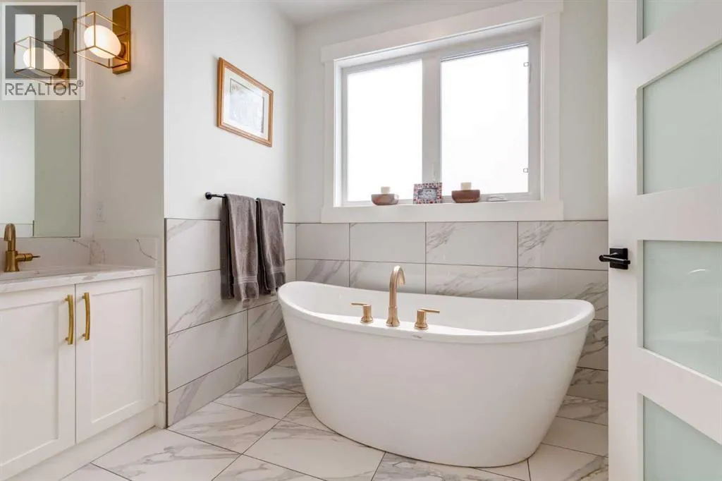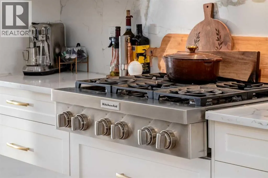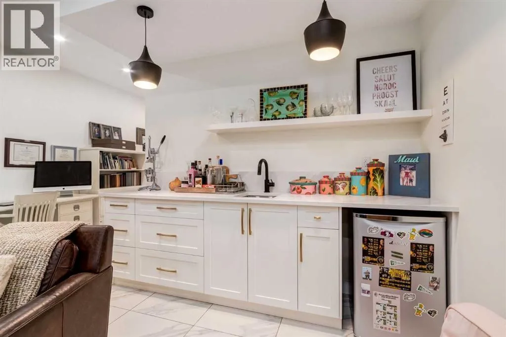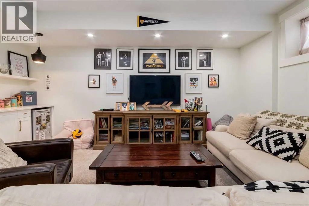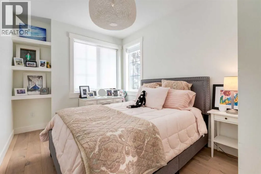 Not your average semi-detached home, but rather luxury living at its finest in the highly sought-after community of North Glenmore Park. This exceptional custom infill offers almost 3,000 sq ft of beautifully finished space with a modern farmhouse exterior, striking black mullioned windows, and professionally landscaped front and back yards designed for seamless indoor-outdoor living.The main level features 10-ft ceilings, wide-plank white oak flooring, and an open-concept layout. A chef-inspired kitchen anchors the space with a 12-ft quartz island, farmhouse sink, premium appliances, and custom cabinetry, flowing into a spacious dining area with floor-to-ceiling windows and an elegant living room with a custom built-in feature wall and gas fireplace.Upstairs offers a luxurious primary retreat with a spa-like ensuite, you need to see to appreciate, and a walk-in closet, plus two additional bedrooms, a full bath with a steam feature, and a well-appointed laundry room. The fully developed basement includes 9-ft ceilings, a large rec room with a wet bar, a fourth bedroom with a walk-in closet, and a full bathâideal for guests or extended living.The private backyard is a true highlight, featuring a built-in Napoleon BBQ, upper deck, lower patio with outdoor fireplace, water feature, and lush landscaping.Loaded with tons of upgrades, air conditioning, and built-in speakers, all just minutes to downtown, Marda Loop, Glenmore Reservoir, and endless parks and pathways. This one is a Must See!! (id:27476)