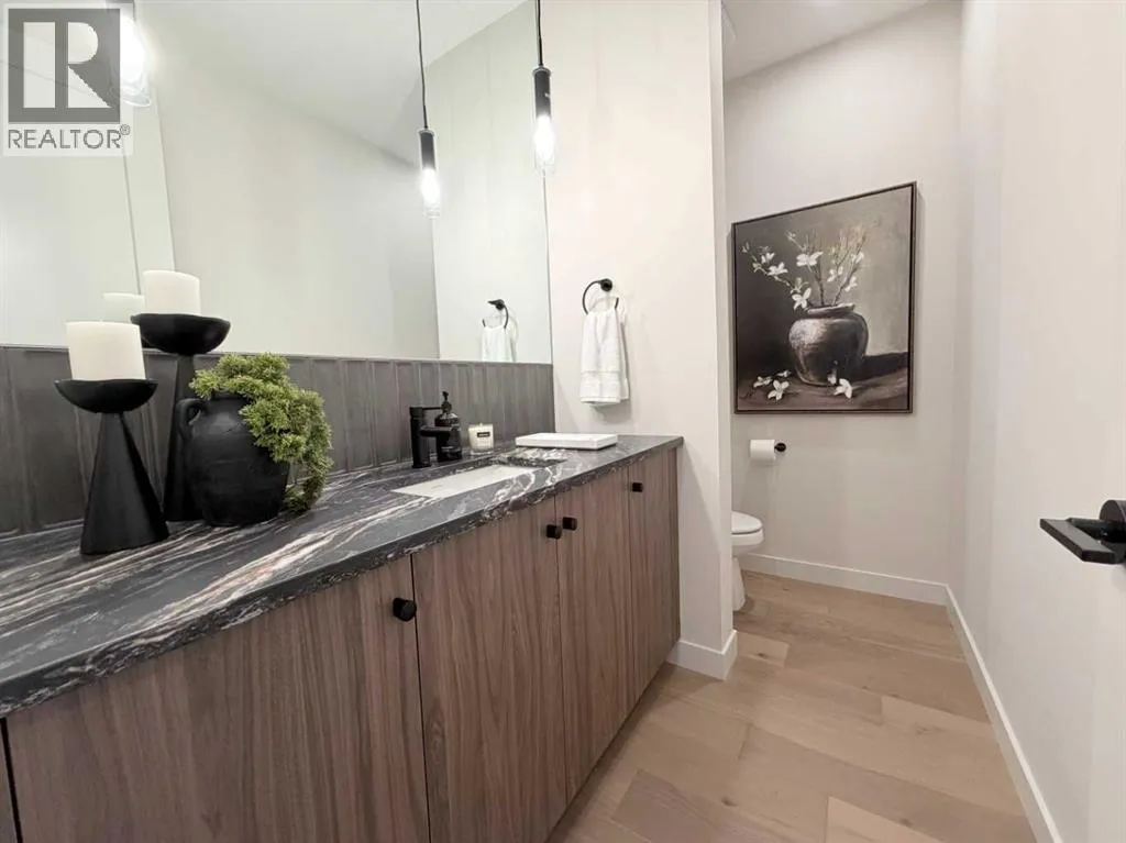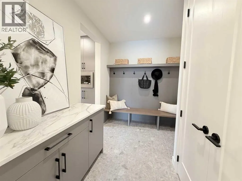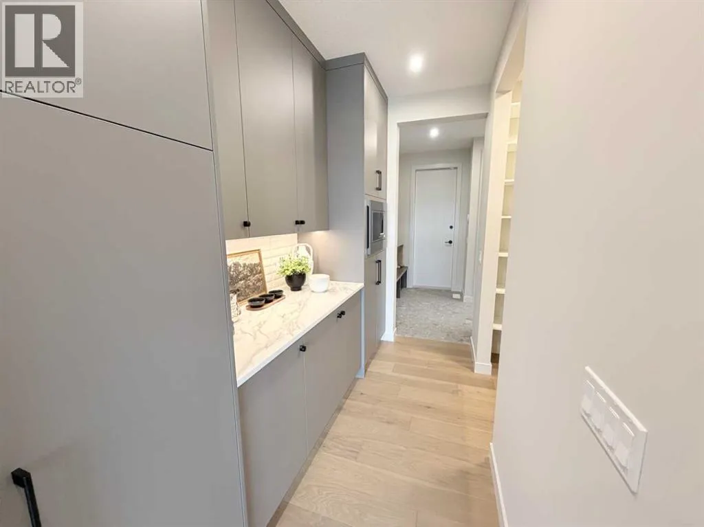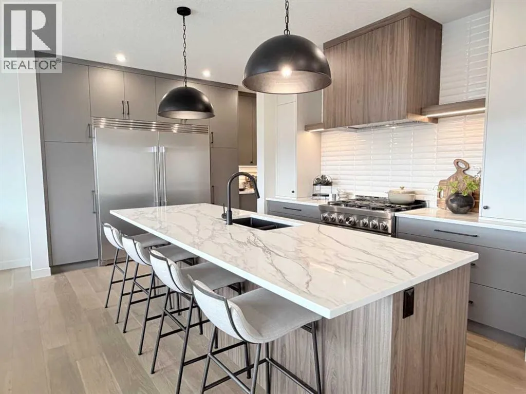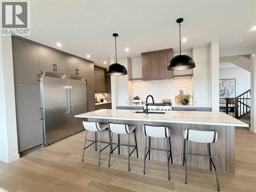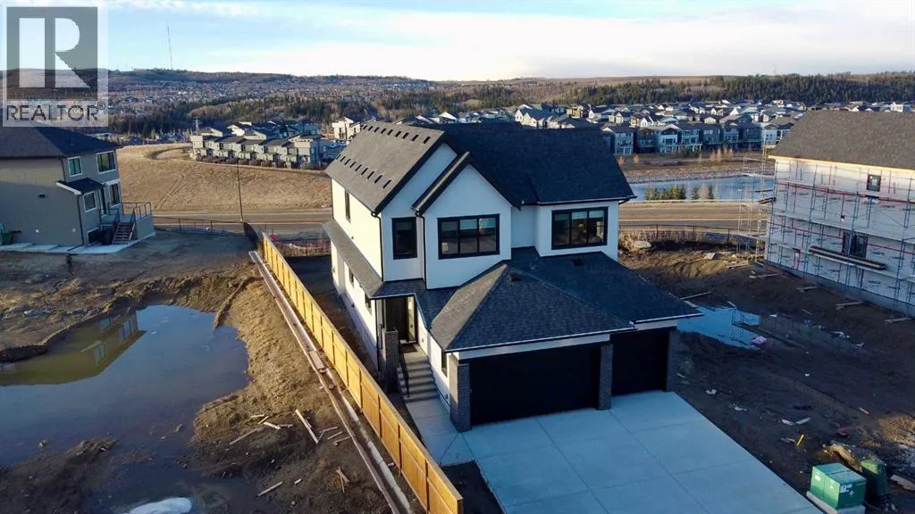 Welcome home to 406 Crimson Ridge Place NWâan exceptional Lupi Luxury Homes residence perched on the ridge in sought-after Crimson Ridge, offering breathtaking city, pond, and mountain views.Designed to impress, this stunning home blends elegance with everyday functionality, featuring 5 bedrooms and 3.5 bathrooms, including 3 generously sized bedrooms upstairsâeach complete with its own walk-in closet. A spacious 3-car garage adds both convenience and curb appeal.Step inside to discover a bright, open-concept layout enhanced by triple-pane Low-E² windows that flood the home with natural light. The gourmet kitchen is a true showpiece, boasting full-height modern cabinetry to the 9-foot ceiling, an oversized island, and a premium appliance package including a built-in stainless steel double fridge/freezer, upgraded gas range, dishwasher, microwave, hood fan, and bar fridgeâperfect for both entertaining and everyday living. A butlerâs pantry adds extra prep space and storage.The expansive great room centers around a striking fireplace, creating a warm and inviting atmosphere. From here, step out onto the large deckâideal for relaxing or hosting while soaking in the panoramic views.Upstairs, the luxurious primary suite offers a private retreat with a spa-inspired ensuite featuring a curb less walk-in shower, deep soaker tub, dual vanities, and a spacious walk-in closet.Additional highlights include:â¢Main floor denâperfect for a home office â¢Wide plank hardwood flooring throughout â¢Custom-built lockers/mudroom storage â¢Powered window coverings and integrated security system â¢Dual high-efficiency furnaces for optimal comfort The fully developed lower level expands your living space with a fifth bedroom, full bathroom, large recreation room, and dedicated media areaâplus ample storage in utility and storage rooms.An elegant open staircase with metal spindles and oak railing creates a grand first impression in the foyer, setting the tone for the craftsmansh ip found throughout.This is a rare opportunity to own a refined, move-in-ready luxury home in one of the areaâs most desirable communities.Schedule your private showing today and experience elevated living at its finest. (id:27476)