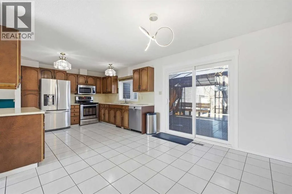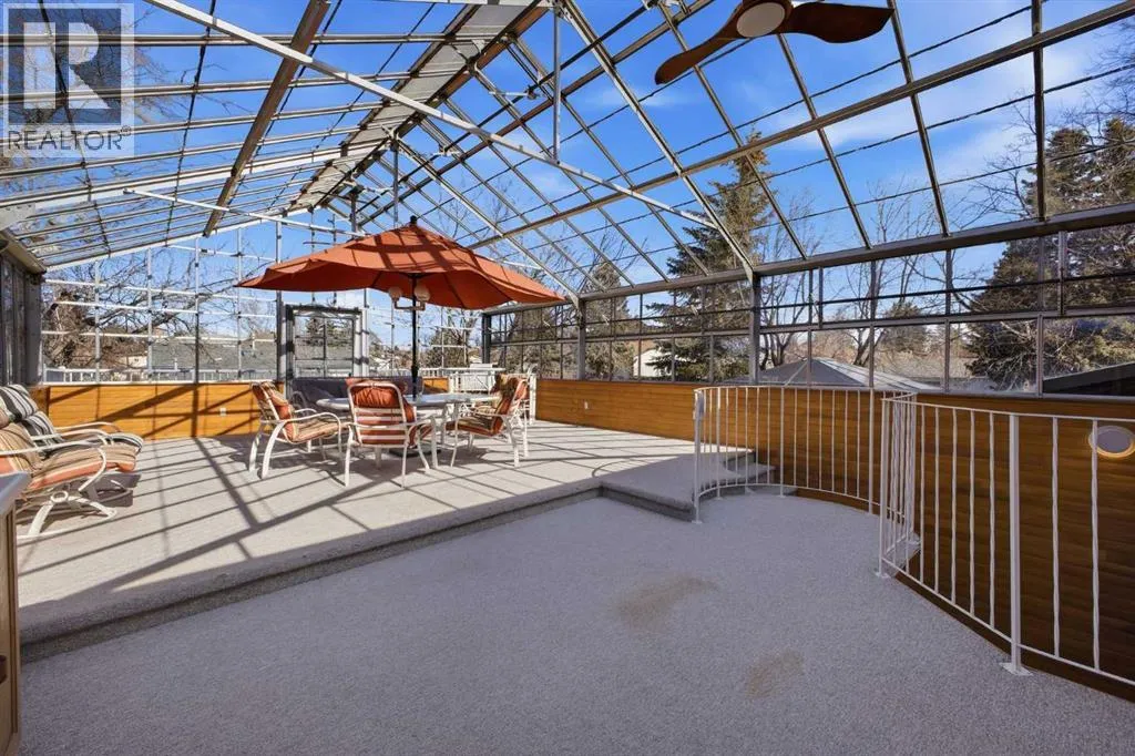 Welcome to a truly ONE-OF-A-KIND home offering space, versatility, and endless potential! Boasting over 2,812 SQ.FT of developed living space, this 4 BEDROOM + Den property is highlighted by an incredible 613 sq.ft. HEATED and AIR-CONDITIONED glass-enclosed SOLARIUM â a rare feature perfect for year-round enjoyment. Whether you envision a home office, fitness studio, media room, or a stunning space to host family and friends under the sky, this solarium is sure to impress.The main and upper levels feature newer laminate flooring, a spacious living room with a cozy wood-burning fireplace, and a functional kitchen with newer stainless steel appliances and dining area with sliding doors leading to the backyard. Upstairs, youâll find three well-sized bedrooms and 1.5 bathrooms, including a primary retreat with French doors opening directly to the solarium, also accessible via a beautiful curved staircase to the downstairs.The lower level offers even more flexibility with a large recreation space, bar area, fourth bedroom, den, additional 1.5 bathrooms, and a versatile flex roomâideal for growing families or multi-purpose living.Complete with an OVERSIZED ATTACHED GARAGE (21'2" x 34'), this home is move-in ready or presents an incredible opportunity to renovate and customize to your personal style and taste. This large CORNER LOT is just STEPS TO A PLAYGROUND, with schools, shopping, and amenities nearby â this is a home that truly stands apart! (id:27476)