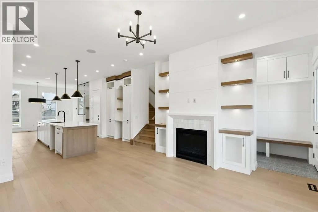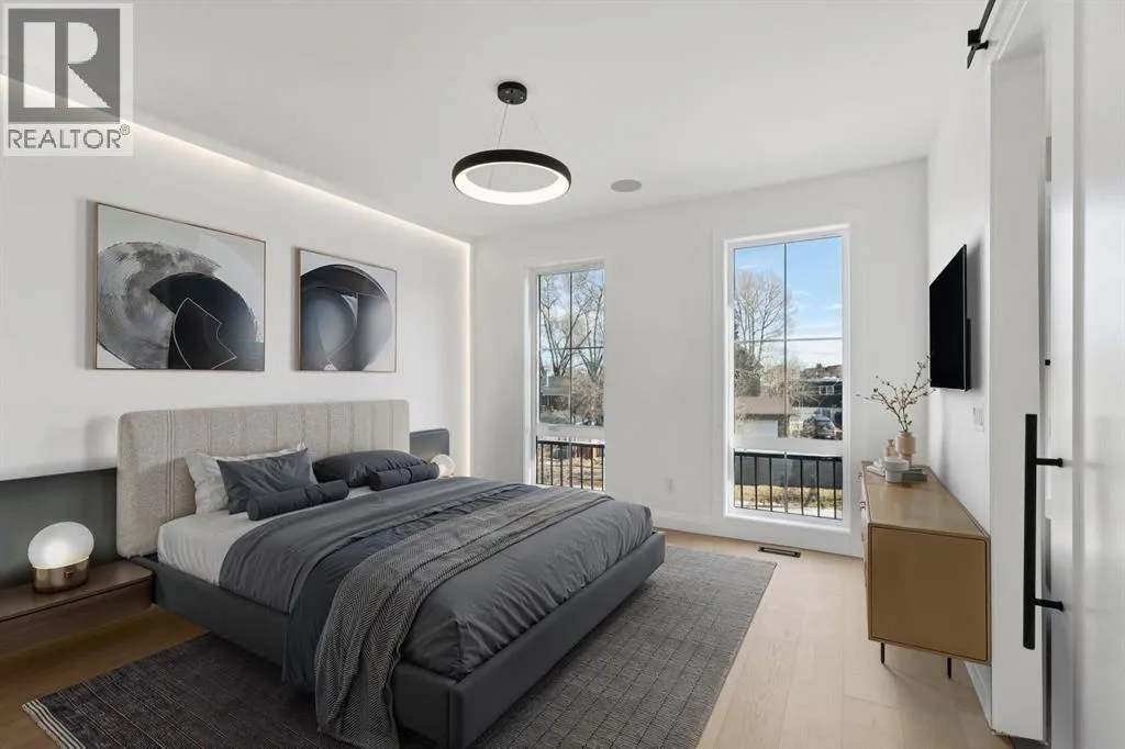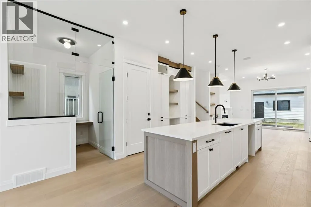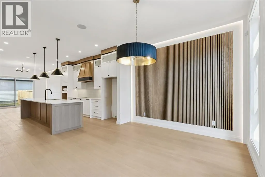 Situated just steps from the Bow River in the highly sought after community of Parkdale, this sophisticated modern residence offers over 3,600 sq ft of beautifully curated living space, blending elevated design with exceptional functionality. The bright, open concept main floor welcomes you with a spacious entry and a stunning front dining area, highlighted by an illuminated feature wall that adds warmth and architectural interest. A glass enclosed office provides a perfect work-from-home setting, while the heart of the home, an exquisite designer kitchen, impresses with an expansive 10â quartz waterfall island, built-in wall oven and microwave, gas cooktop, and sleek cabinetry. Striking glass panelled black fronts anchor the cooking space, complemented by crisp white shaker cabinetry for a refined modern aesthetic. A thoughtfully designed pantry with bar area and beverage fridge enhances both form and function. At the rear, the airy living room with a contemporary gas fireplace opens effortlessly to the west facing backyard and low maintenance deck through sliding glass doors. The second floor offers three generous bedrooms, each with its own walk-in closet, a full bathroom, and a well appointed laundry room with sink. The primary sanctuary features floor-to-ceiling windows, a striking feature wall, and a custom walk-in closet. The luxurious 6pc ensuite boasts heated floors, a steam shower, and a deep soaker tub for a luxurious escape. The third floor loft is exceptional offering incredible versatility and elevated living. Enjoy a built-in desk area, convenient coffee bar, and a front balcony with downtown views. This level also hosts a second primary suite, complete with a private rear balcony, walk-in closet, and a lavish 6pc ensuite with heated floors, a deep soaker tub, and an oversized glass shower. The fully developed basement features a separate entrance leading to a legal suite. This thoughtfully designed space includes two spacious bedrooms, a 4pc bathroom , its own laundry, and a stylish kitchen with warm wood cabinetry, eat-up island, and full appliance package. The inviting living room is anchored by a modern media wall, while access to the utility room reveals a tankless hot water system. Outside, the landscaped yard offers ample green space for kids and pets, and leads to a double detached garage. Additional upgrades include rough-ins for security, AC, and central vacuum, along with exposed aggregate steps and walkways. Ideally located, youâre just steps to Foothills Medical Centre, and only minutes from Alberta Children's Hospital and the vibrant University District, offering an incredible mix of dining, shopping, and everyday amenities. Surrounded by parks, pathways, cafés, and the natural beauty of the Bow River, this exceptional home delivers the perfect balance of luxury, comfort, and convenience. (id:27476)