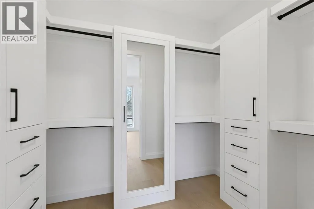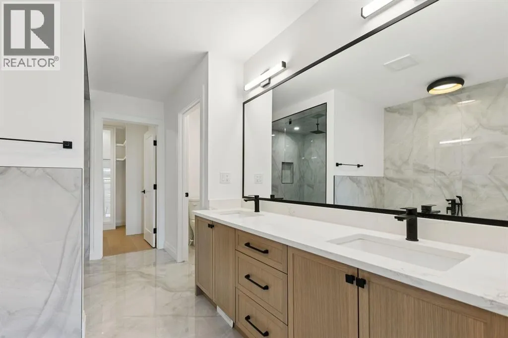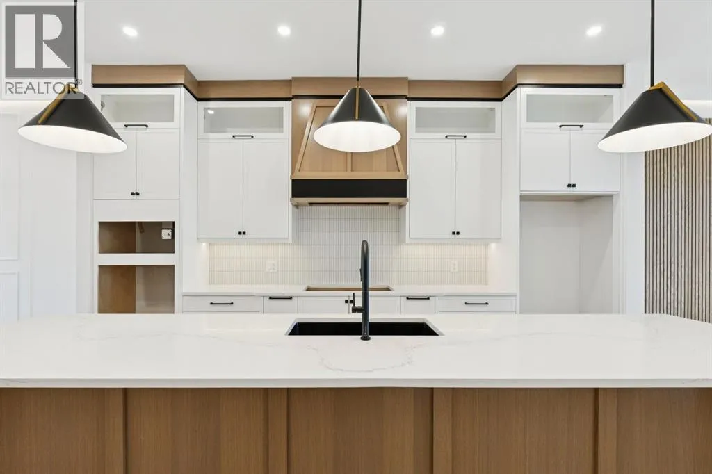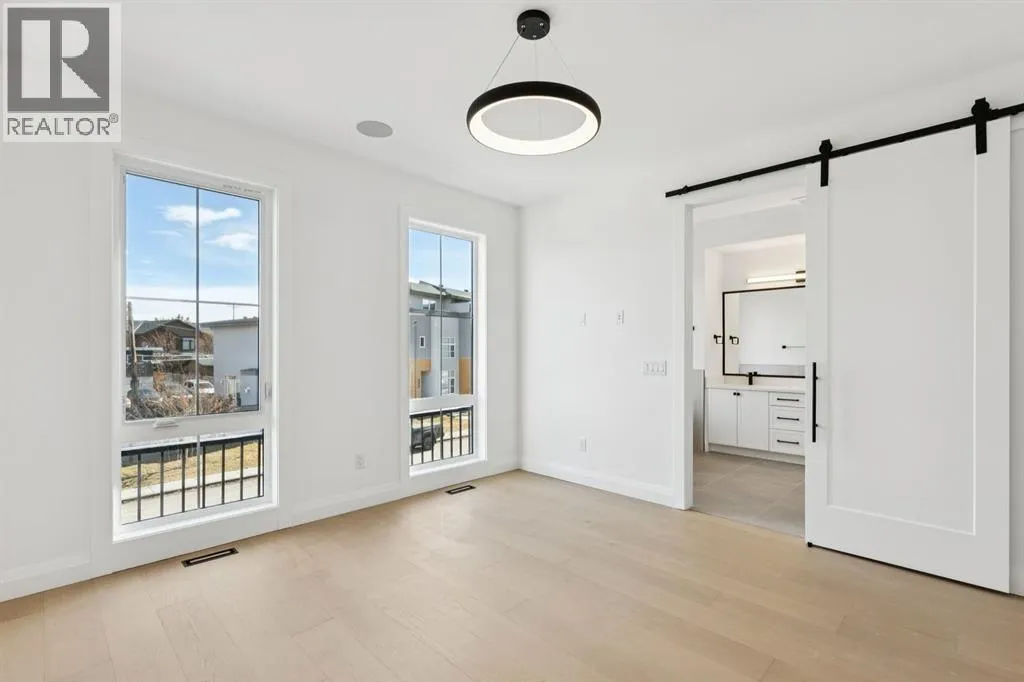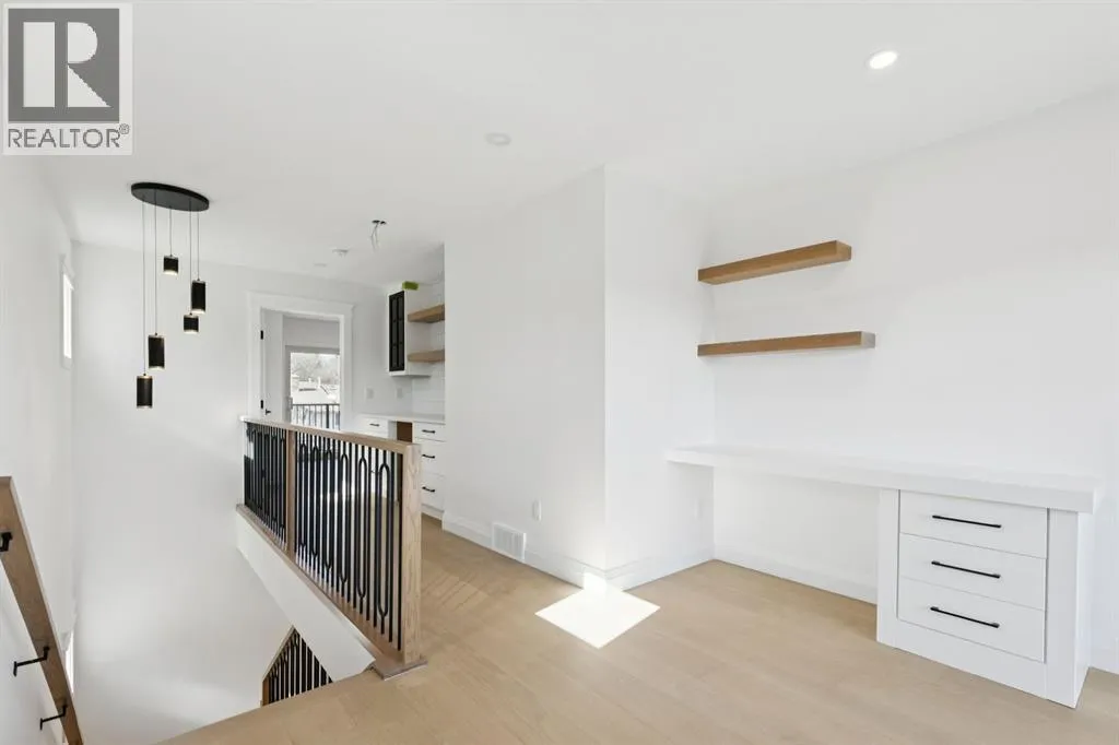 Situated just steps from the Bow River in the highly sought after community of Parkdale, this sophisticated modern residence offers over 3,600 sq ft of beautifully curated living space, blending elevated design with exceptional functionality. The bright, open concept main floor welcomes you with a spacious entry and a stunning front dining area, highlighted by an illuminated feature wall that adds warmth and architectural interest. A glass enclosed office provides a perfect work-from-home setting, while the heart of the home, an exquisite designer kitchen, impresses with an expansive 10â quartz waterfall island, built-in wall oven and microwave, gas cooktop, and sleek cabinetry. Striking glass panelled black fronts anchor the cooking space, complemented by crisp white shaker cabinetry for a refined modern aesthetic. A thoughtfully designed pantry with bar area and beverage fridge enhances both form and function. At the rear, the airy living room with a contemporary gas fireplace opens effortlessly to the west facing backyard and low maintenance deck through sliding glass doors. The second floor offers three generous bedrooms, each with its own walk-in closet, a full bathroom, and a well appointed laundry room with sink. The primary sanctuary features floor-to-ceiling windows, a striking feature wall, and a custom walk-in closet. The luxurious 6pc ensuite boasts heated floors, a steam shower, and a deep soaker tub for a luxurious escape. The third floor loft is exceptional offering incredible versatility and elevated living. Enjoy a built-in desk area, convenient coffee bar, and a front balcony with downtown views. This level also hosts a second primary suite, complete with a private rear balcony, walk-in closet, and a lavish 6pc ensuite with heated floors, a deep soaker tub, and an oversized glass shower. The fully developed basement features a separate entrance leading to a legal suite. This thoughtfully designed space includes two spacious bedrooms, a 4pc bathroom , its own laundry, and a stylish kitchen with warm wood cabinetry, eat-up island, and full appliance package. The inviting living room is anchored by a modern media wall, while access to the utility room reveals a tankless hot water system. Outside, the landscaped yard offers ample green space for kids and pets, and leads to a double detached garage. Additional upgrades include rough-ins for security, AC, and central vacuum, along with exposed aggregate steps and walkways. Ideally located, youâre just steps to Foothills Medical Centre, and only minutes from Alberta Children's Hospital and the vibrant University District, offering an incredible mix of dining, shopping, and everyday amenities. Surrounded by parks, pathways, cafés, and the natural beauty of the Bow River, this exceptional home delivers the perfect balance of luxury, comfort, and convenience. (id:27476)