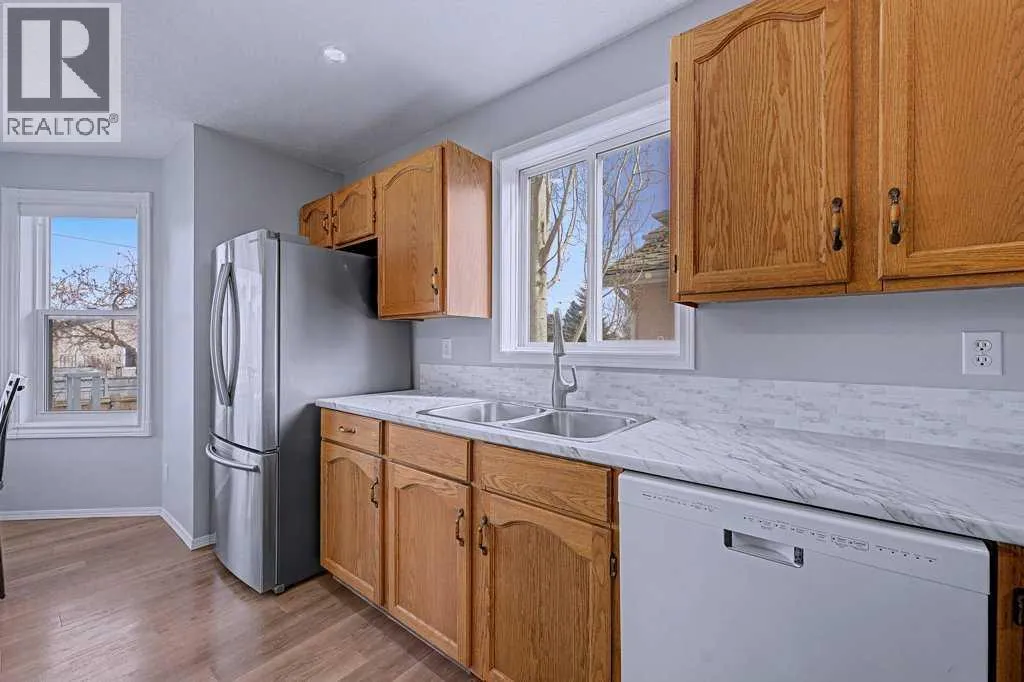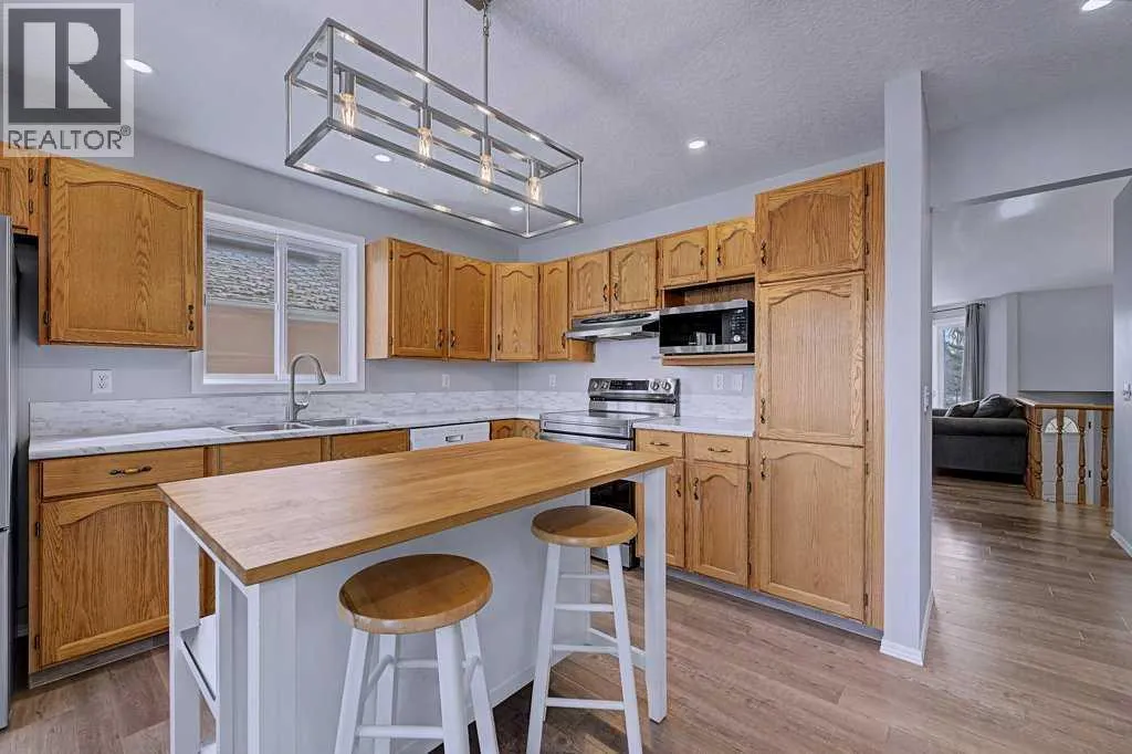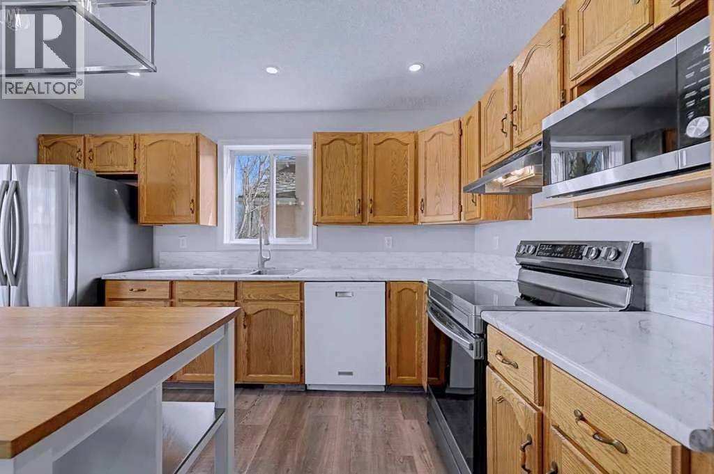 In the LAKE COMMUNITY OF SUNDANCE, you will love walking just up the street to take the kids or grandkids swimming or skating, boating or fishing! What a great opportunity to own a SUBSTANTIALLY RENOVATED bi-level home with DOUBLE ATTACHED GARAGE, within WALKING DISTANCE to SCHOOLS and the LAKE! Come and see 24 Sunlake Circle SE with a total of 4 bedrooms, and over 2300 square feet of developed space! No more scaping snow off the car, thanks to your double garage! STEP IN THE FRONT DOOR, and you will immediately appreciate so many updates to this great floor plan (see s full list of updates at the end of this write-up). TWO BEDROOMS UP, and TWO BEDROOMS DOWN, plus THREE FULL BATHROOMS. Visit with your guests in a SPACIOUS FRONT LIVING ROOM with VAULTED CEILINGS, a GAS FIREPLACE (with tile detailing) and PLENTY OF SUNLIGHT from three southwest facing bayed windows! The SPACIOUS DINING ROOM will allow you to stretch out the table for all your special occasions! What a great kitchen upstairs with some STAINLESS-STEEL appliances, POT LIGHTING, and a cozy breakfast nook (bayed with three more windows). TWO BEDROOMS on the main level are both SPACIOUS. The PRIMARY BEDROOM has a WALK-IN CLOSET & four-piece ensuite bathroom with a large JETTED TUB (surrounded by raised tile decking), and a SEPARATE STEP-IN SHOWER. UPDATED FLOORING runs through much of the main level, including the ensuite. HEAD DOWNSTAIRS for a movie night! DOUBLE BARN DOORS leading to a LARGE REC ROOM (plus kitchenette) with ANOTHER GAS FIREPLACE to keep you comfy all year round! LARGE BASEMENT WINDOWS. This 'kitchenette' has PLENTY OF CABINETS and counter space, MORE STAINLESS-STEEL appliances and a bayed eating nook, similar to upstairs. LAMINATE runs through much of the lower level as well (with carpet in all bedrooms). The BASEMENT BATHROOM has a tub/shower combo with a WAND SHOWER HEAD, absolutely perfect for washing your puppies after a fun day in FISH CREEK PARK! Decent storage space downstairs. HEAD OUT back to enjoy the updated deck with GAS CONNECTIONS for your BBQ. Do you have a camping trailer? From the back lane, you will love opening the double-gated fence so you can load up the trailer from your own backyard! MANY UPDATES IN RECENT YEARS including: Downstairs kitchen cabinets in December 2018. All brand-new appliances downstairs January 2019 (fridge, stove, & dishwasher). FRESH INTERIOR PAINT and knockdown texture upgrade in December 2018. New waterproof laminate flooring in November 2018. Poly B Replaced in April 2021. New washing machine in July 2019. New fridge upstairs in June 2020 (Under warranty until October 4, 2026), and a new stove upstairs in May 2022. Upstairs recessed lighting in kitchen. Eavestroughs and downspouts (some repaired and some new including downspouts) in Sept. 2020. Fences in July 2020. New decking in April 2021. Three new Moen toilets in 2019. New water heater. New furnace in February 2020. Book your showing today! (id:27476)