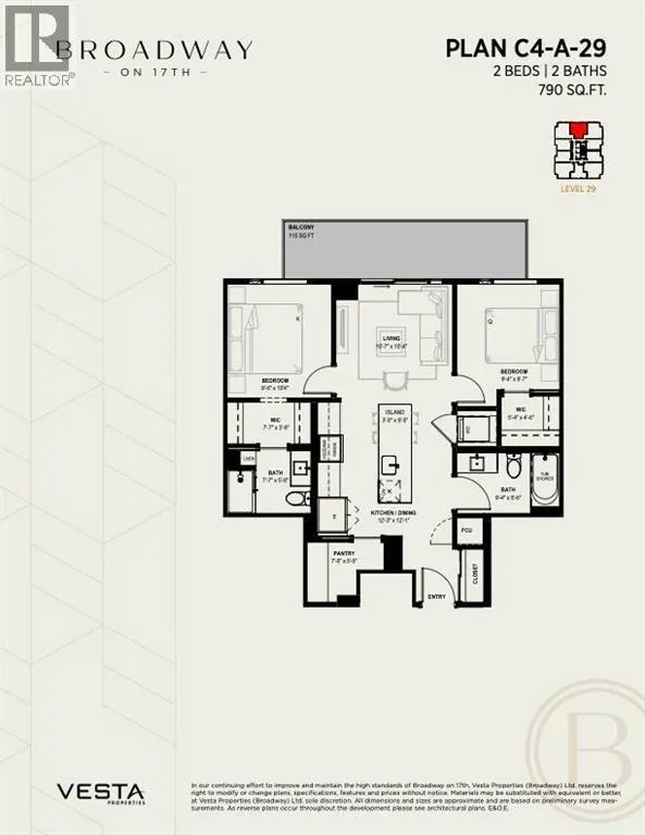 Welcome to Broadway on 17th, a landmark new development redefining urban living in the heart of Calgary. This architecturally striking community offers a rare opportunity to secure a home in one of the cityâs most vibrant and evolving corridors.The C4 model on the 29th floor showcases the perfect blend of sophistication and functionality, featuring thoughtfully designed interiors, premium appliances, and contemporary finishes curated for elevated everyday living. Spacious and efficient, this home reflects modern design principles while offering comfort, style, and flexibility.Residents will enjoy an unmatched collection of resort-style amenities, including a full spa and sauna, state-of-the-art fitness studio, co-working spaces, games lounge, arcade, sports simulator, and beautifully designed social lounges. Pet-friendly areas and collaborative workspaces further enhance the lifestyle experience.A true highlight of the development is the Level 46 Fireside Sky Loungeâan exclusive retreat featuring a bar, indoor fireplace, and private dining areas, all set against breathtaking panoramic views of downtown Calgary and the Rocky Mountains.At ground level, the vibrant Broadway Plaza will bring daily convenience to your doorstep with curated retail, restaurants, cafés, daycare, and office spacesâcreating a dynamic, walkable urban village.Designed with intention, the tower placement maximizes natural light, privacy, and sightlines, ensuring each residence benefits from optimal sunshine and stunning views.Offering a diverse range of layouts including studios, one-bedroom, two-bedroom, junior three-bedroom residences, and exclusive sub-penthouse and penthouse homes, Broadway on 17th delivers options for every lifestyle and stage of life.Located just minutes from Calgaryâs best shopping, dining, entertainment, and cultural destinations, this is urban living at its finest. Scheduled for completion in October 2030.Live above the energy at Broadway on 17th by Ves ta Properties. (id:27476)