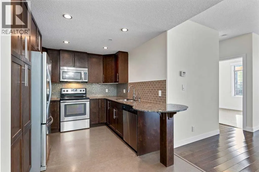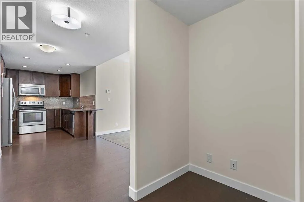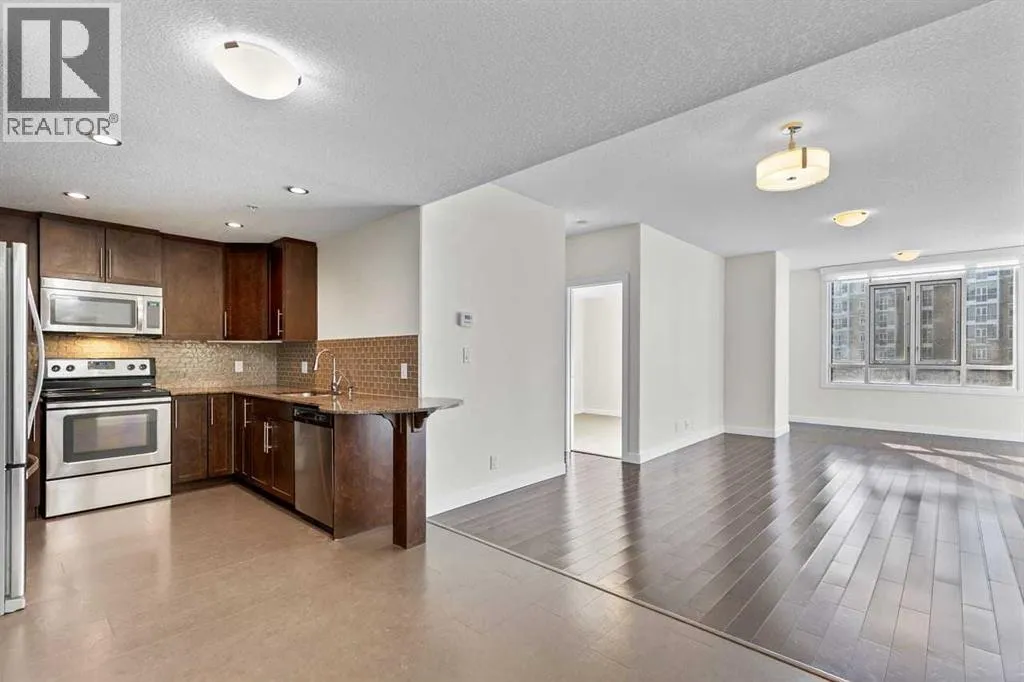 Welcome to The Groves of Varsity, where solid concrete construction, polished common areas, and standout amenities come together in one of northwest Calgaryâs most established communities.This 2-bedroom, 2-bathroom condo offers 993.37 square feet of thoughtfully planned living space with a bright, comfortable layout and a clean, move-in-ready feel. The entire unit has been freshly painted, giving the home a crisp, refreshed look. The kitchen blends function and style with dark full-height cabinetry, stone countertops, stainless steel appliances, a tile backsplash, and a raised eating bar that connects easily to the dining area.Beyond that, the spacious living room offers plenty of flexibility for furniture placement, rich dark flooring, and large windows that fill the space with natural light while framing an open outlook over the surrounding trees. The layout feels practical and well balanced, with defined rooms, a welcoming foyer, and smart separation between the main living areas and the bedrooms.The primary bedroom is generously sized and features a true 5-piece ensuite with a double vanity, soaker tub, and separate glass shower. The second bedroom sits near a full 4-piece bathroom, which works well for guests, roommates, or a home office setup.In-suite laundry adds everyday convenience, while the included underground parking stall and separate storage locker make day-to-day living even easier.Residents of The Groves of Varsity also enjoy access to impressive amenities, including a fitness room, stylish lobby, social lounge, outdoor terrace, and beautifully landscaped courtyard spaces.Set in Varsity, this home puts you in a well-established northwest Calgary neighbourhood known for its mature setting and excellent access to major routes like Crowchild Trail and 32 Avenue NW. The community sits next to the University of Calgary, includes Market Mall within Varsity Village, and offers access to green space like Bowmont Natural Park, along with nearby C -Train service.Well appointed and well located, this condo offers comfort, convenience, and access to a full-service complex in one of Calgaryâs most desirable established communities. Book your private showing today. (id:27476)