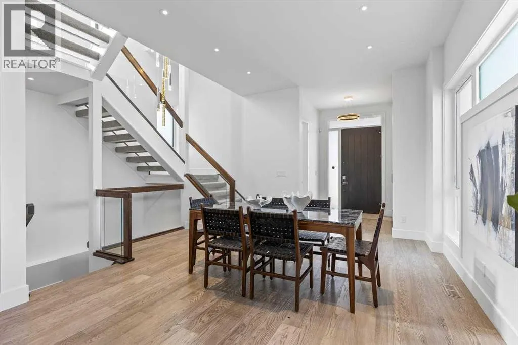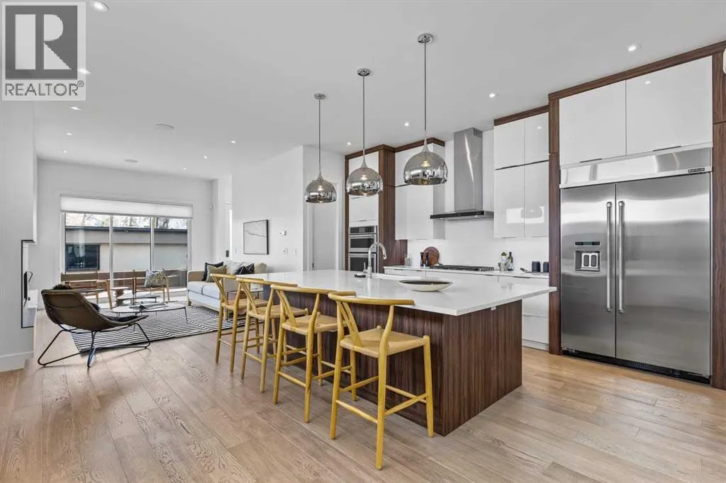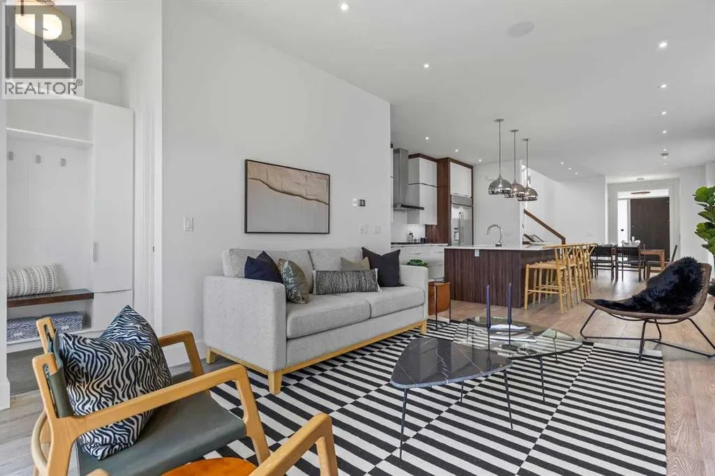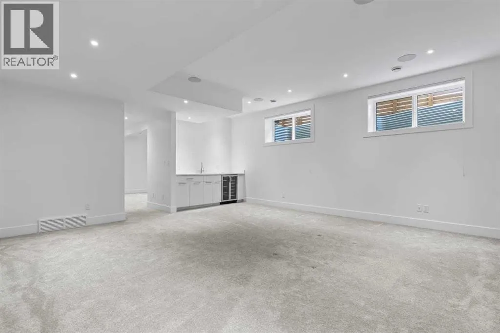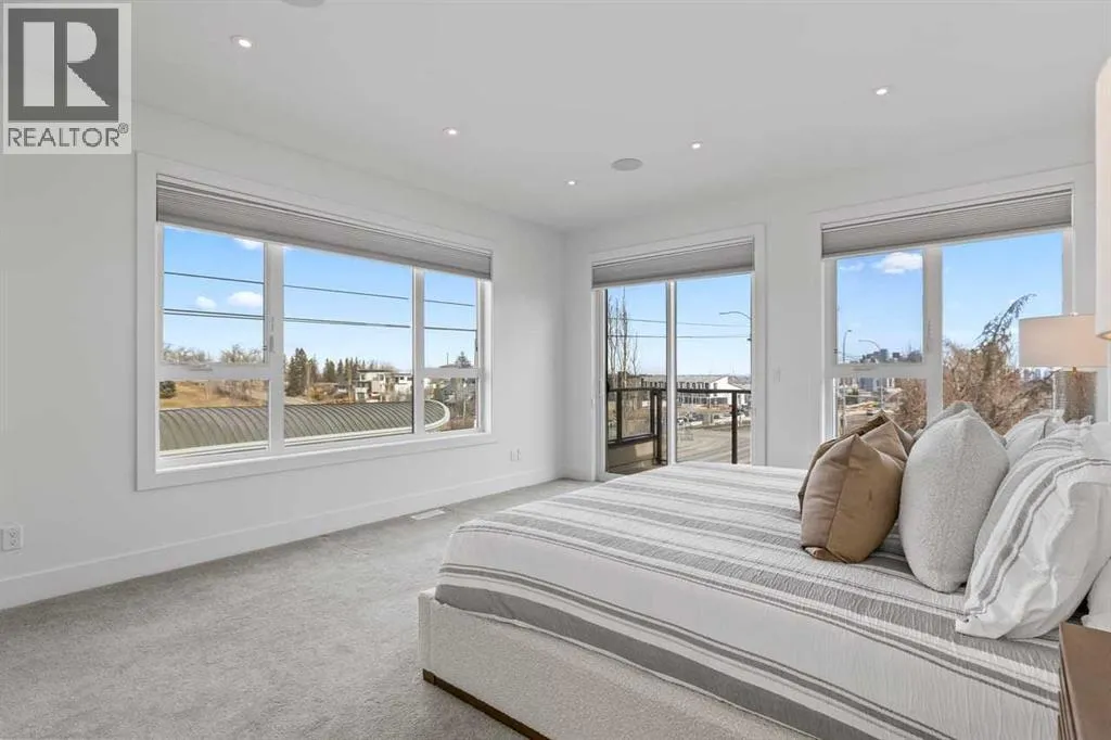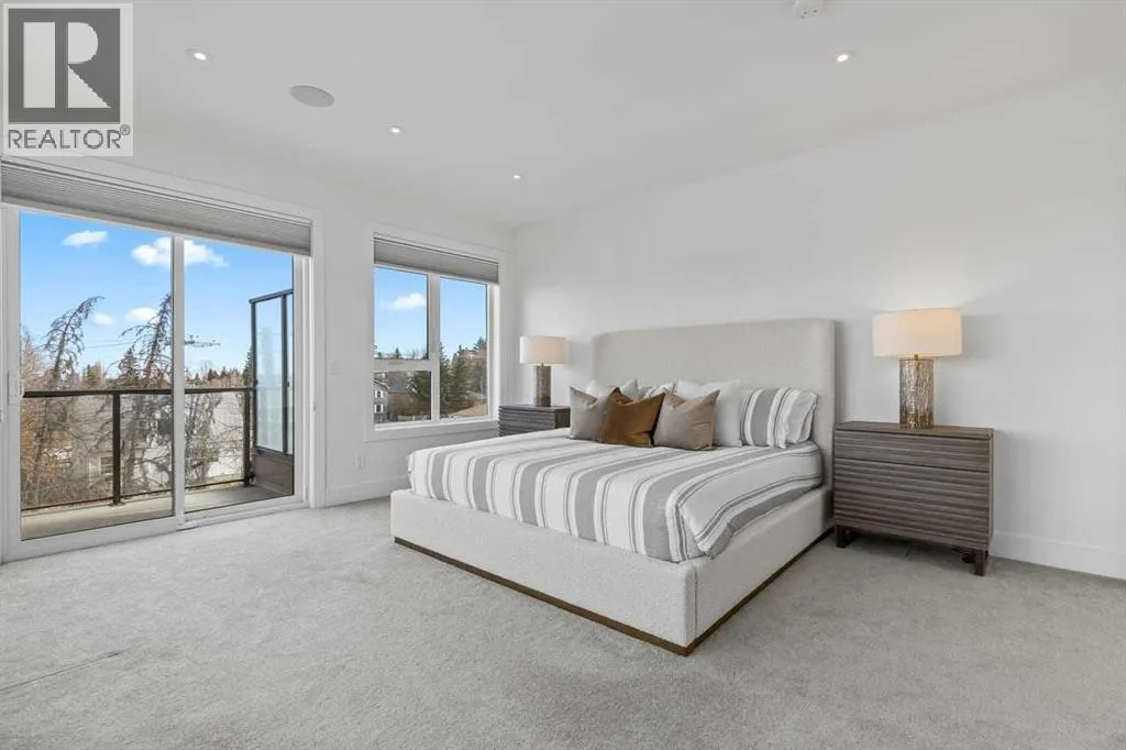 Welcome to 1400 26A Street SW, a standout inner-city home offering 3600+ sq ft of total living space in the highly coveted community of Shaganappi. This architecturally striking THREE-STOREY design blends modern luxury with exceptional functionality, enhanced by BEAUTIFUL CITY AND GOLF COURSE VIEWS.The main floor features a spacious foyer with a built-in front closet, a dedicated main-floor den, and a bright, open layout with a generous dining room. The chef-inspired kitchen offers an oversized island, high-end finishes, and a WALK IN PANTRY. At the back of the home, the inviting living room centers around a gas fireplace, while the well-designed mudroom with custom storage leads to the maintenance-free yard.The second floor includes a flexible family lounge, a SECOND PRIMARY BEDROOM with a walk-in closet, 5-pc ensuite, and private balcony, plus another large bedroom with its own walk-in closet, a full bathroom, and upper laundry.The ENTIRE 3rd FLOOR is a LUXURY PRIMARY RETREAT, featuring a generous bedroom, a dream-worthy BOUTIQUTE WALK IN CLOSET, and a spa-inspired 5-pc ensuite. Oversized windows showcase stunning city and golf course views from inside the bedroom, with a private balcony offering an additional outdoor escape. The fully developed basement adds a large recreation/media room, a stylish wet bar, a bedroom with walk-in closet, a full bathroom, and ample storage â ideal for guests or a home gym.This is inner-city living at its finest: walkable, connected, and minutes to downtown, while offering the space, comfort, and elevated design rarely found in the core.More than a home - itâs a lifestyle statement! (id:27476)