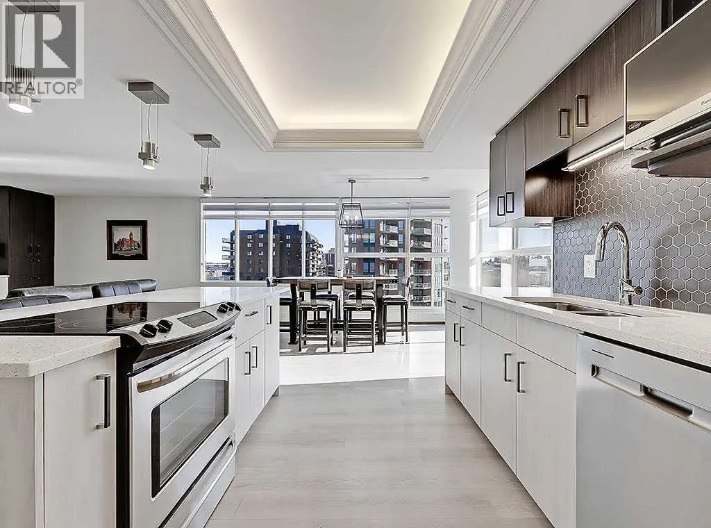 Welcome to Riverstone, a prestigious, amenity rich complex in the heart of Mission, running adjacent the Elbow River & pathway system. This rare south, southeast & northeast facing end unit underwent a complete remodel in 2021, including all new kitchen, bathrooms, flooring, paint & fixtures. The unit offers nearly 1500 sq ft, 2 bedrooms, 2 bathrooms, laundry, den, large open concept living & dining space, and exceptional views of the Elbow River. Enjoy the security of having the most friendly 24 hour concierge service in Calgary, security monitoring the building and parking area, indoor pool & hot tubs, fitness room, change rooms with sauna, a library, social room, tennis courts & car wash. The building is impeccably maintained with recent renovations to the pool & hot tub, all new fitness room & equipment & changerooms, renovated hallways throughout. Separate storage unit, titled underground parking & plenty of visitor parking. Enjoy immediate access to exquisite shops, high end dining & the prominent Glencoe Club just a few short blocks away. Opportunities like this for a good size floorplan, well managed building in an exceptional community, do not come up often. (id:27476)