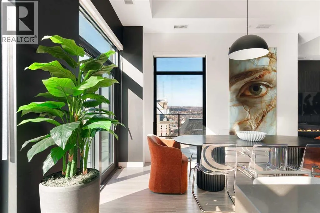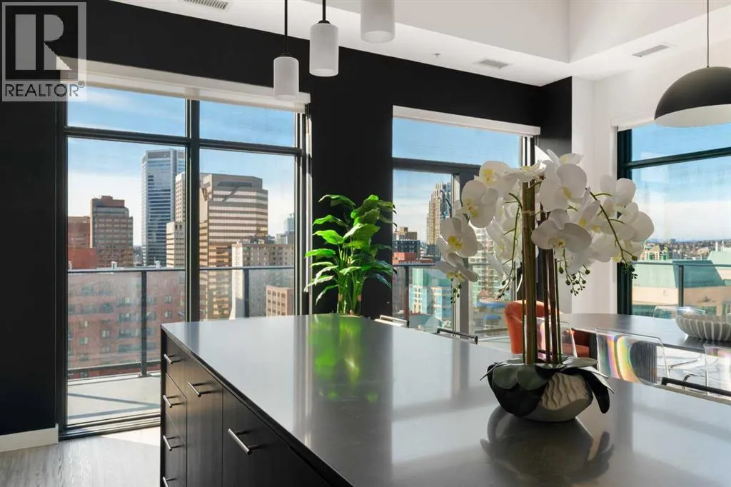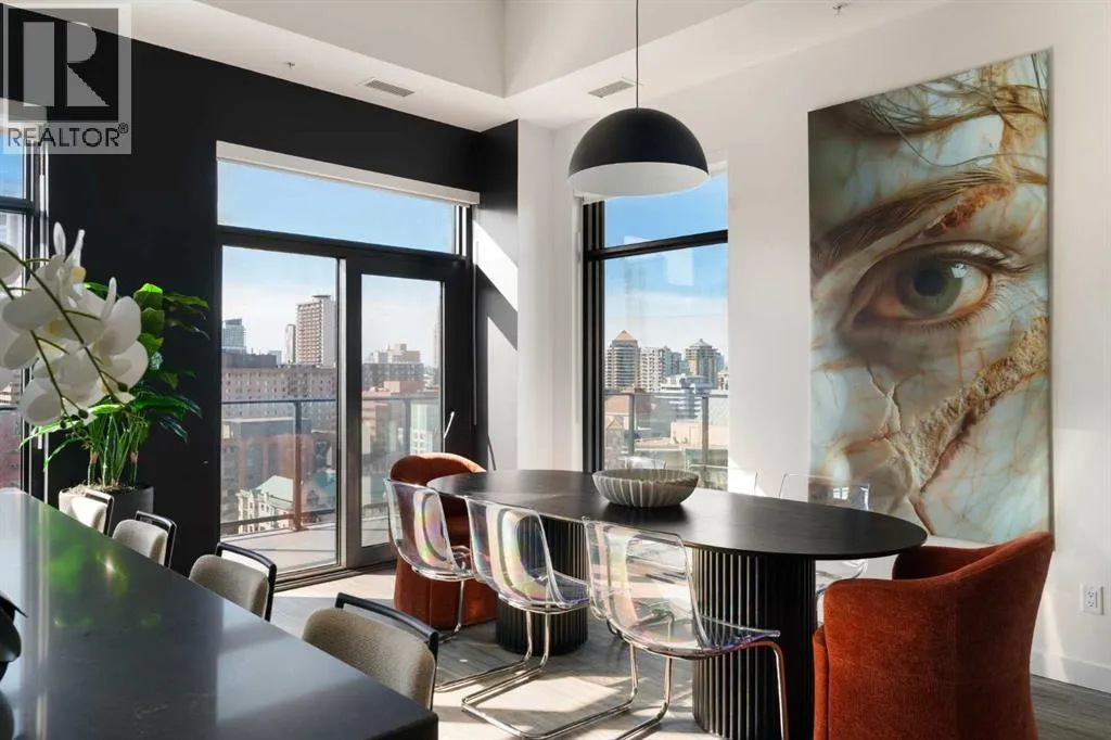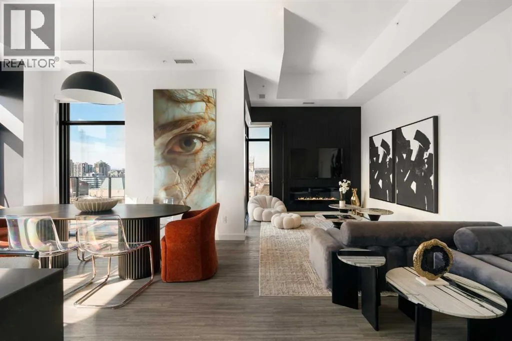 Experience elevated urban living in this luxury penthouse in Downtown Calgary, offering a rare combination of breathtaking views, modern design, and premium finishes. This exceptional 2 bedroom + den, 2 bathroom condo is thoughtfully designed with a seamless open-concept layout that connects the living, dining, and kitchen spacesâperfect for both entertaining and everyday living.The contemporary kitchen features sleek finishes and flows effortlessly into a bright and spacious living area, all framed by expansive windows that capture panoramic views of the Rocky Mountains, Bow River, and Calgary skyline. Step outside onto the expansive wrap-around balcony with west exposure, ideal for enjoying stunning sunsets and outdoor living at its finest.The primary bedroom retreat offers both comfort and sophistication, complete with a spa-inspired 5-piece ensuite featuring a soaker tub, dual vanity, and walk-in shower. A second bedroom and versatile den provide flexibility for guests, a home office, or additional living or storage space.Additional features include titled underground parking, and a dedicated storage locker. Located in the heart of Downtown Calgary, this penthouse offers unmatched access to river pathways, dining, shopping, and urban amenitiesâmaking it an ideal opportunity for buyers seeking luxury condo living in one of Calgaryâs most desirable locations.A rare penthouse offering with unmatched views, location, and lifestyleâdonât miss your opportunity. (id:27476)