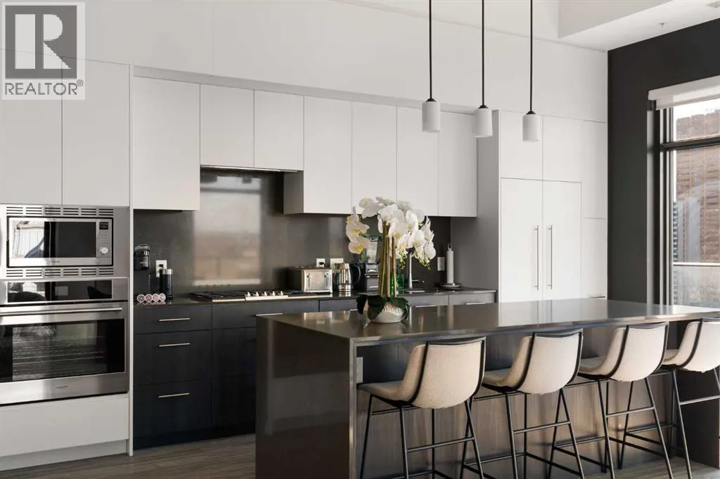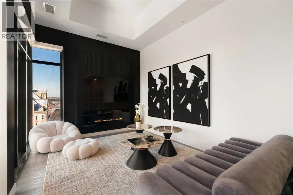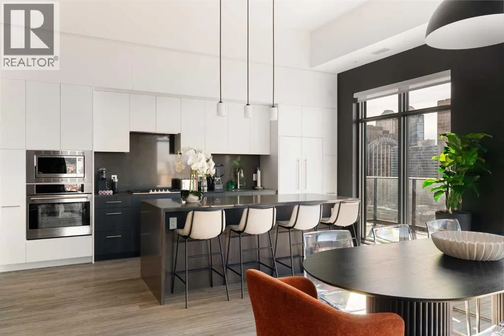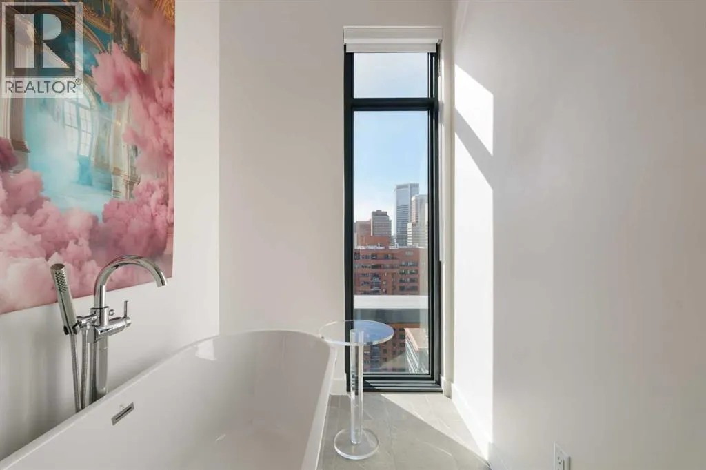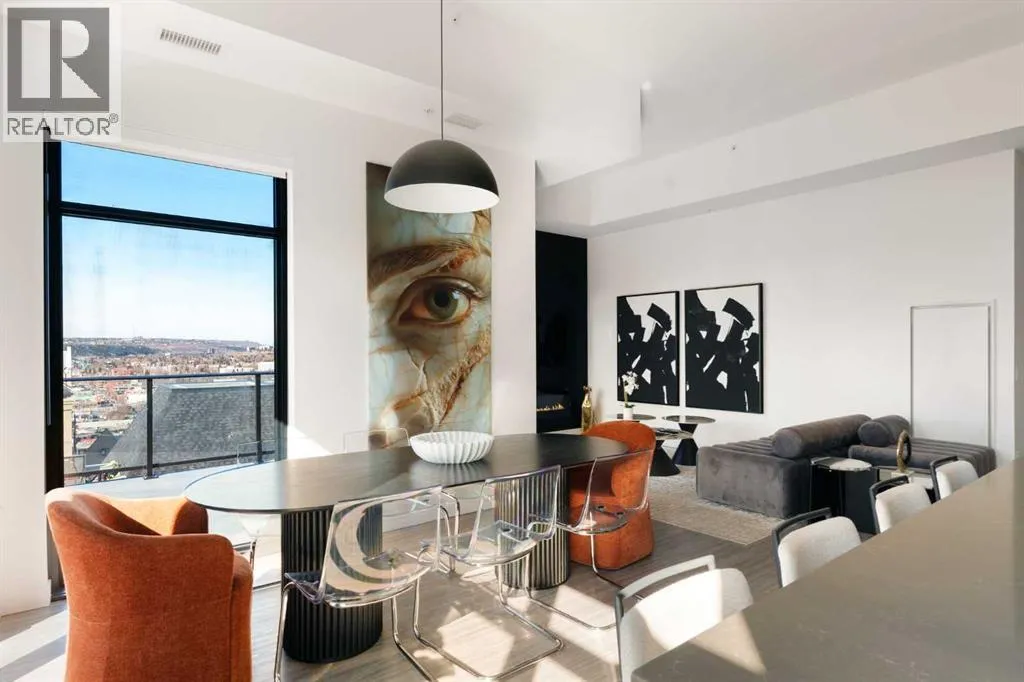 Experience elevated urban living in this luxury penthouse in Downtown Calgary, offering a rare combination of breathtaking views, modern design, and premium finishes. This exceptional 2 bedroom + den, 2 bathroom condo is thoughtfully designed with a seamless open-concept layout that connects the living, dining, and kitchen spacesâperfect for both entertaining and everyday living.The contemporary kitchen features sleek finishes and flows effortlessly into a bright and spacious living area, all framed by expansive windows that capture panoramic views of the Rocky Mountains, Bow River, and Calgary skyline. Step outside onto the expansive wrap-around balcony with west exposure, ideal for enjoying stunning sunsets and outdoor living at its finest.The primary bedroom retreat offers both comfort and sophistication, complete with a spa-inspired 5-piece ensuite featuring a soaker tub, dual vanity, and walk-in shower. A second bedroom and versatile den provide flexibility for guests, a home office, or additional living or storage space.Additional features include titled underground parking, and a dedicated storage locker. Located in the heart of Downtown Calgary, this penthouse offers unmatched access to river pathways, dining, shopping, and urban amenitiesâmaking it an ideal opportunity for buyers seeking luxury condo living in one of Calgaryâs most desirable locations.A rare penthouse offering with unmatched views, location, and lifestyleâdonât miss your opportunity. (id:27476)