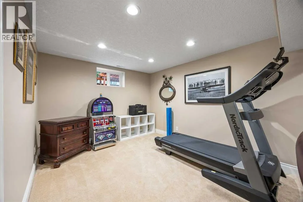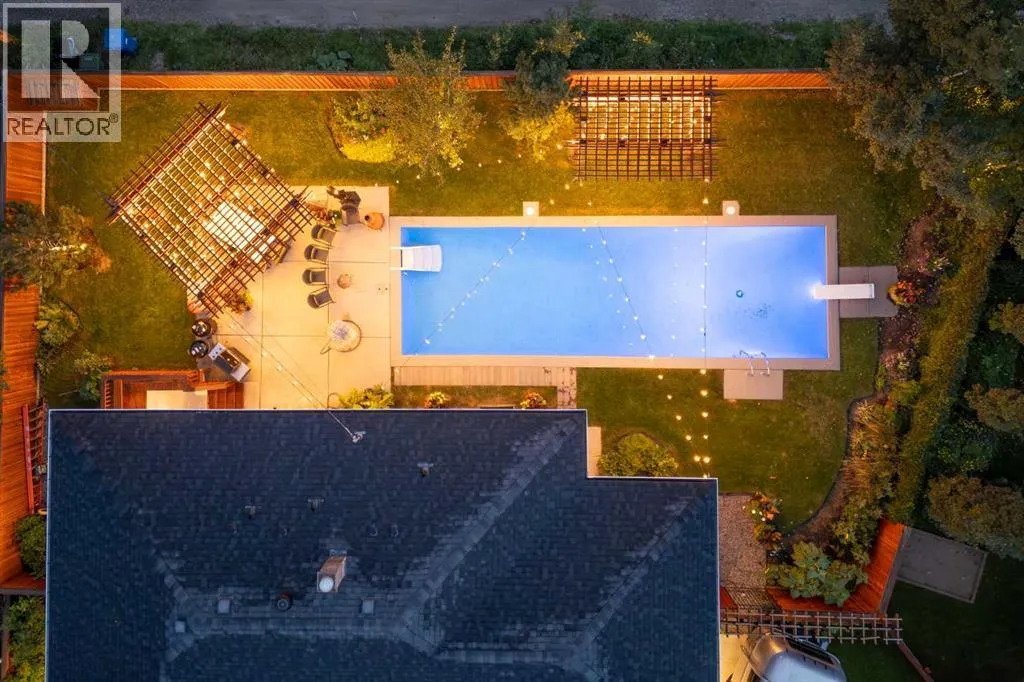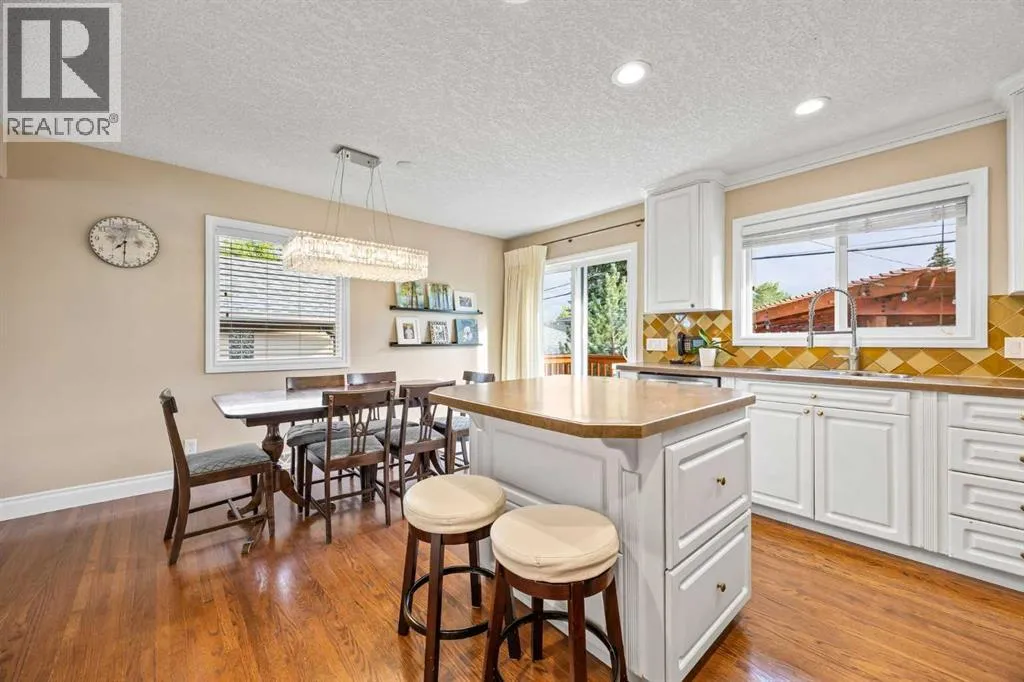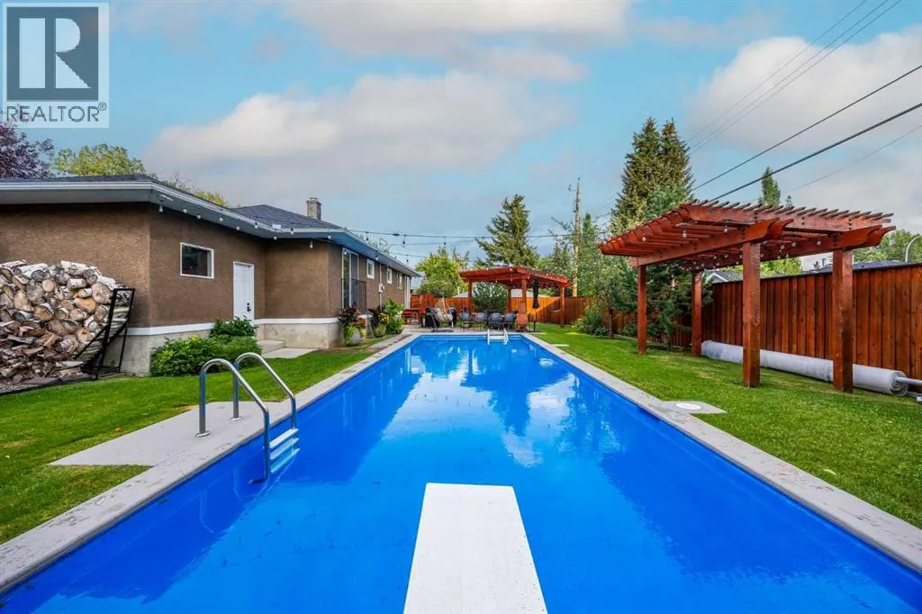 Tucked away on a quiet cul-de-sac in the highly sought-after community of Wildwood, this beautifully updated 1,258 sq ft bungalow offers a perfect blend of style, comfort, and outdoor living. Large windows throughout fill the home with natural light, with the spacious living room showcasing huge windows that frame the view of the front yard. Hardwood floors run through the main level, complemented by a front den thatâs ideal for a home office or music room. The kitchen impresses with a centre island, loads of cabinetry, a glass tile backsplash, and crisp white cupboards, opening to the dining room with direct access to your private backyard oasis. Here, youâll find a sparkling pool, two pergolas with ambient lighting, a spacious deck, lush perennial gardens, and green space designed for both entertaining and relaxation. The main floor hosts 2 generous bedrooms and 2 full baths, while the fully developed basement offers 2 additional bedrooms, a full bath, and a large rec room with a cozy fireplace and dedicated gym area. Combining a prime location with a functional layout and resort-style yard, this property is truly a rare find in one of Calgaryâs most desirable neighbourhoods. (id:27476)