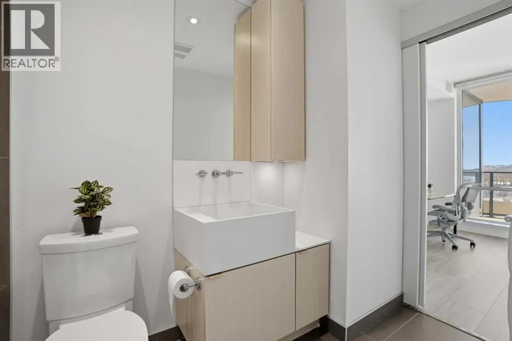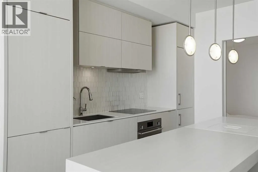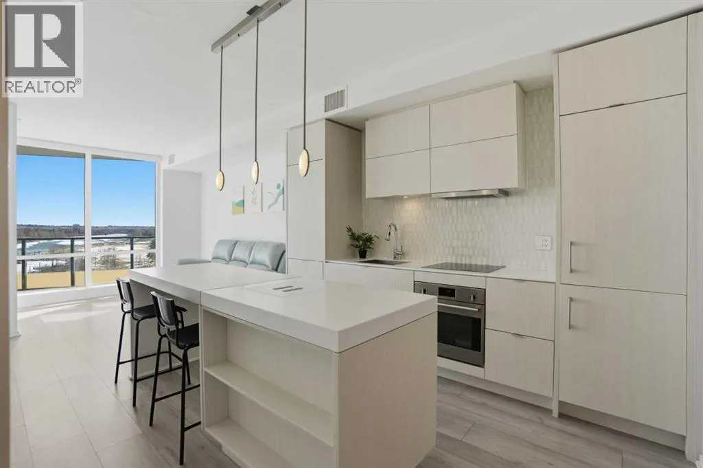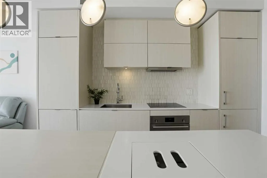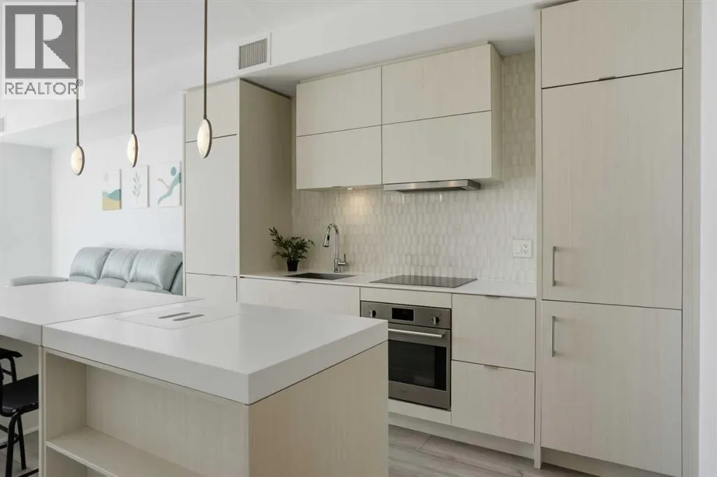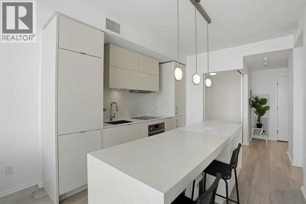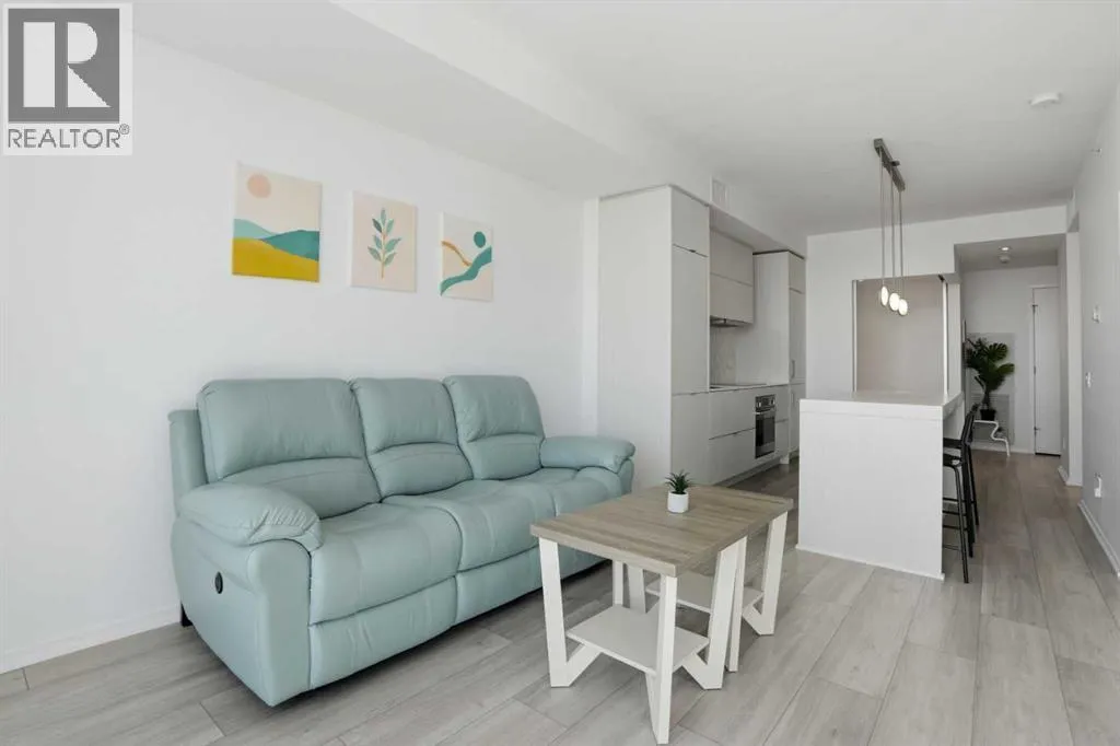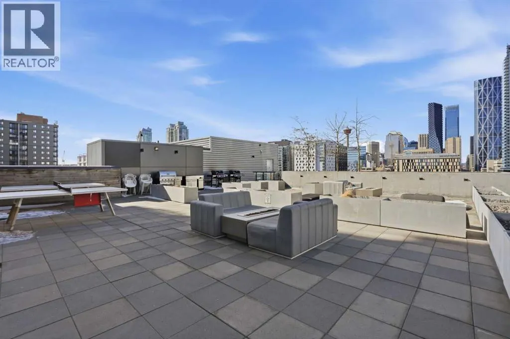 Welcome to this standout 6th floor residence at Verve in East Village, thoughtfully designed as one of the buildingâs most sought-after layouts. Originally featured as the builderâs show suite, this floor plan was chosen for its exceptional flow, functionality, and livability, and it truly stands apart from other units in the building.Offering 1 bedroom plus a spacious den, this home delivers all the space you need without paying for a second bedroom. The den is generously sized and can comfortably fit a king sized bed plus end table. Making it ideal for guests, a home office, or flexible living that rivals a true two bedroom layout.Inside, youâre welcomed by a smart, open-concept design with no wasted space. Unlike many comparable units, there are no long hallways or awkward corners, allowing for a larger, more functional living area. Floor-to-ceiling windows bring in an abundance of natural light, while modern finishes, in suite laundry, and air conditioning ensure everyday comfort. Step outside to your covered balcony, perfect for relaxing or entertaining year-round.Storage is a rare highlight here, with four deep closets throughout the unit, offering more capacity than most similar condos and even competing with many two bedroom layouts. The attention to detail continues with a dedicated storage locker located in a clean, enclosed room on P3, providing a more secure and private alternative to typical parkade storage.Positioned on the 6th floor, this unit offers the perfect balance, not too low, not too high, with direct access to Verveâs best amenities just steps from your door. Enjoy the fully equipped fitness centre, party room, library, and expansive outdoor terrace without ever needing to wait for an elevator.Verve is known for its full concierge service and exceptional lifestyle offerings, including a stunning rooftop terrace on the 25th floor with panoramic views of downtown Calgary, the Bow River, and the mountains.Located in the heart of East Village, youâre just steps from RiverWalk, the CTrain, Superstore, cafes, restaurants, and everyday conveniences, making this one of Calgaryâs most walkable and dynamic communities.This unit includes titled underground parking, a separate storage locker, secure visitor parking, and is pet friendly and approved for mid-term rentals, offering incredible flexibility for both homeowners and investors.A rare opportunity to own one of Verveâs best layouts, combining smart design, exceptional storage, and unbeatable access to amenities. (id:27476)