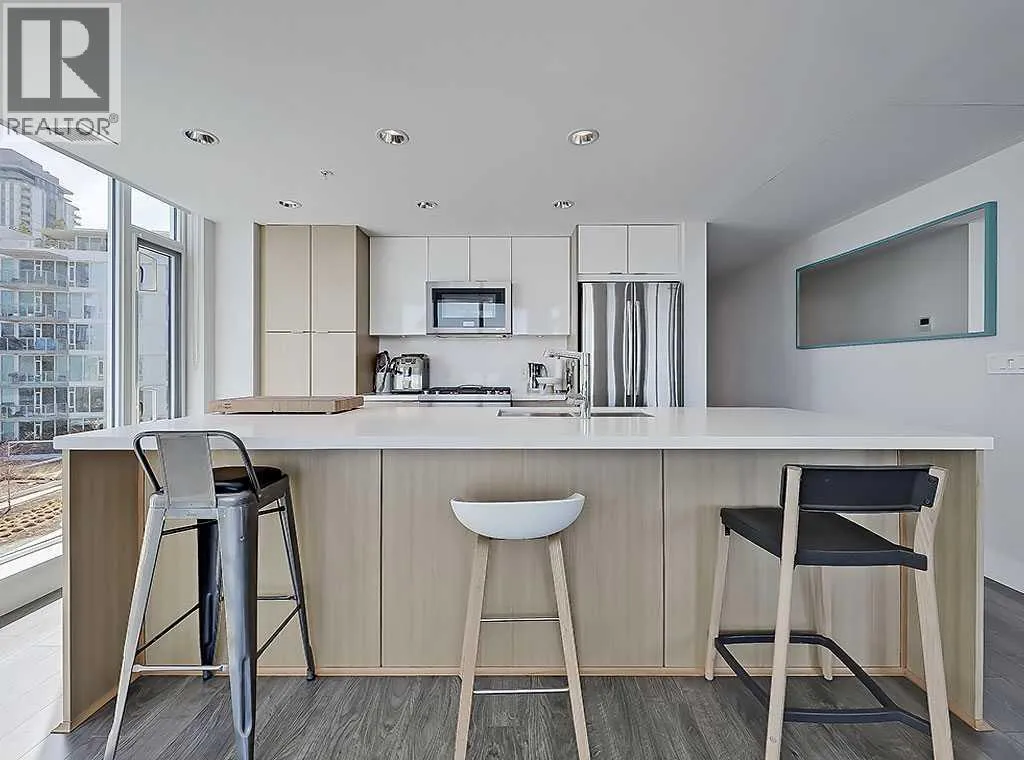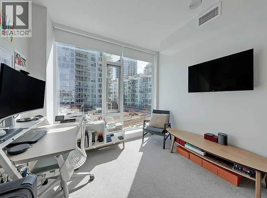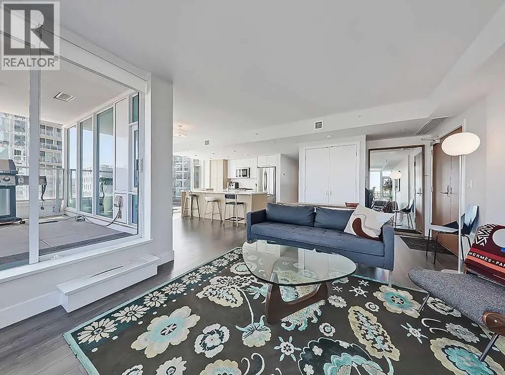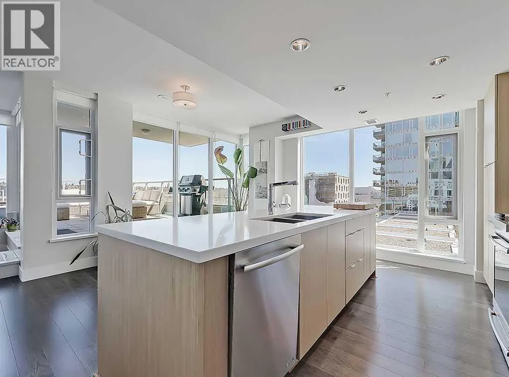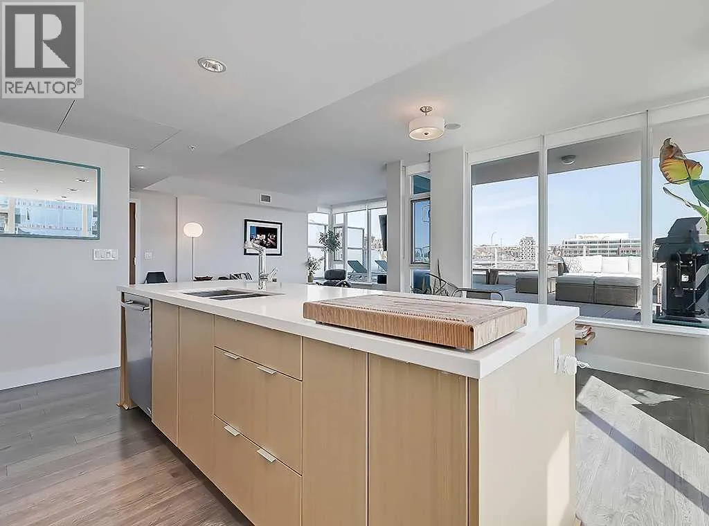 Welcome to Suite 406 at the Pulse Tower in Evolution, where luxury meets lifestyle in the heart of Calgaryâs sought-after East Village. This stunning three-bedroom, two-bathroom residence features two-parking stalls, a large private terrace, and is highlighted by floor-to-ceiling windows that immerse the home in natural light. One of its most impressive features is the expansive 577 square-foot private outdoor space with sweeping views of the Bow River and the downtown skylineâideal for entertaining or relaxing in complete privacy. The home is in meticulous condition and showcases contemporary design throughout, including a sleek, modern kitchen outfitted with stainless steel appliances, quartz countertops, and ample cabinetry. Spacious bedrooms, a spa-like ensuite, air conditioning, in-suite laundry, and generous storage all contribute to the comfort and functionality of the space. The unit features AC, heated bathroom floors, custom closet shelving, two side-by-side assigned parking stalls and a large private storage unit, offering added convenience in an urban setting. Residents of Evolution enjoy access to an array of premium amenities, including a garden terrace with BBQ area, a fully equipped fitness facility, steam room, sauna, and a stylish owners' lounge with pool tableâperfect for socializing or unwinding. Situated in the vibrant East Village, this location is second to none. Youâre just steps from the Bow River pathways and St. Patrickâs Island, and within easy reach of iconic Calgary landmarks like the Central Library, Studio Bell, and the Simmons Building. With grocery stores, restaurants, cafés, and the C-Train all just minutes away, this is downtown living redefinedâblending walkability, culture, and community in one of the cityâs most exciting neighbourhoods. (id:27476)