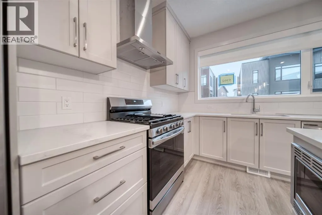 Ravines of Royal Oak by Janssen Homes offers unmatched quality & design, located on the most scenic & tranquil of sites in the mature NW community of Royal Oak. This dual primary (2BR), 2.5 bath 1,442sf 3-storey, townhouse with single attached garage boasts superior finishings. Entry level offers convenient flex space ideal for office, media-room, gym, or storage. Main floor open-concept-plan features end kitchen option with full-height cabinets, soft close doors/drawers & full extension glides, quartz counters, undermount sink, plus 4 S/S appliances opening onto dining area & living room with access to balcony. Upper level includes two roomy master retreats, both with well-appointed 4-pce ensuites & tile flooring. Ample closet space with site-built shelving & separate laundry space . Single attached garage adds the final touch. Ravines of Royal Oak goes far beyond typical townhome offerings; special attention has been paid to utilizing high quality, maintenance free, materials to ensure long-term, worry-free living. Acrylic stucco with underlying 'Rainscreen' protection, stone, & Sagiwall vertical planks (ultra-premium European siding) ensure not only that the project will be one of the most beautiful in the city, but that it will stand the test of time with low maintenance costs. Other premium features include triple-pane, argon filled low-e, aluminum clad windows, premium grade cabinetry with quartz countertops throughout, 9' wall height on all levels, premium Torlys LV Plank flooring, 80 gal hot water tank, a fully insulated & drywalled attached garage that includes a hose bib & smart WiFi door opener, among other features. Condo fees include building insurance, exterior building maintenance & long-term reserve/replacement fund, road & driveway maint., landscaping maint., driveway & sidewalk snow removal, landscaping irrigation, street & pathway lighting, garbage/recycling/organics service. Bordered by ponds, natural ravine park, walking paths & only minutes to LRT station, K-9 schools, YMCA & 4 major shopping centres. A solid investment - visit today! **Photos from a similar unit** (id:27476)