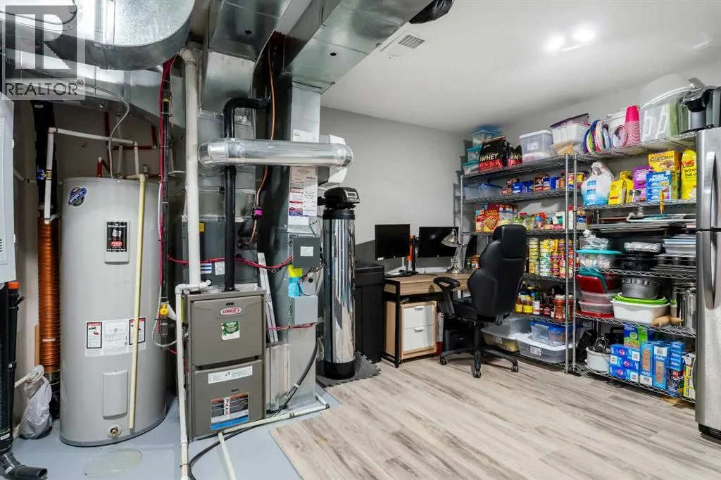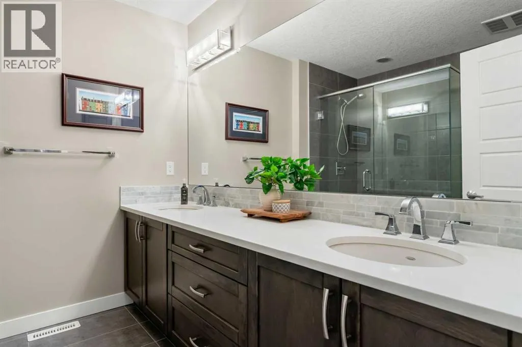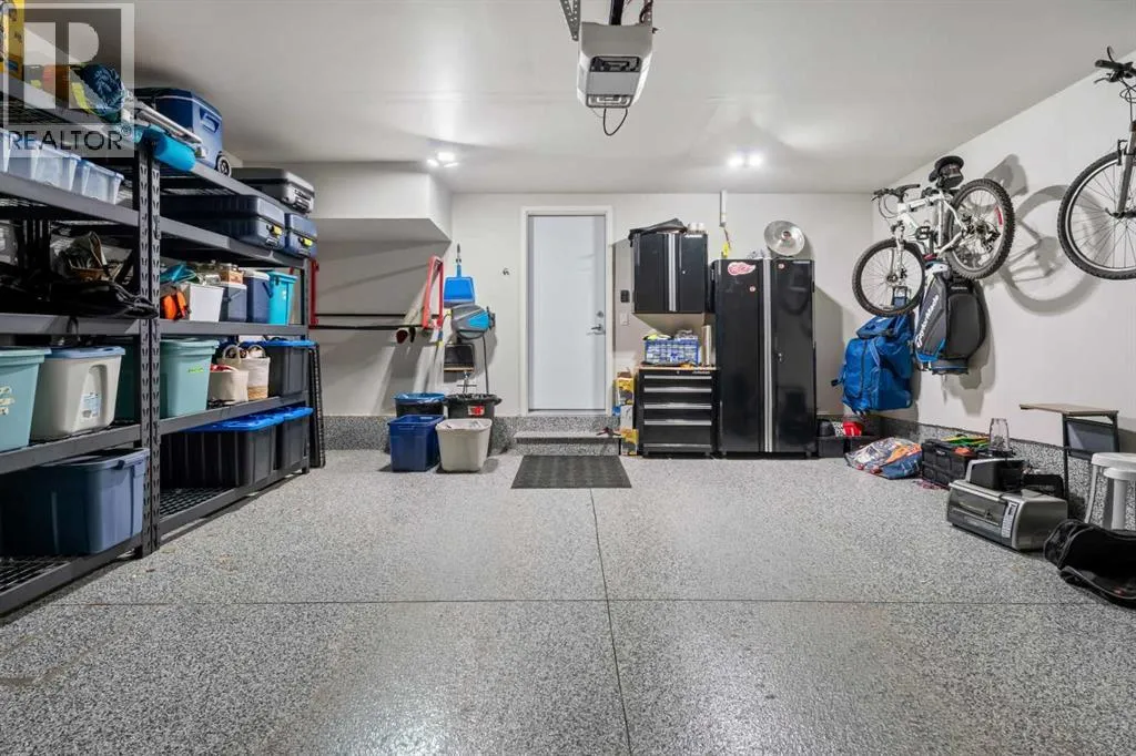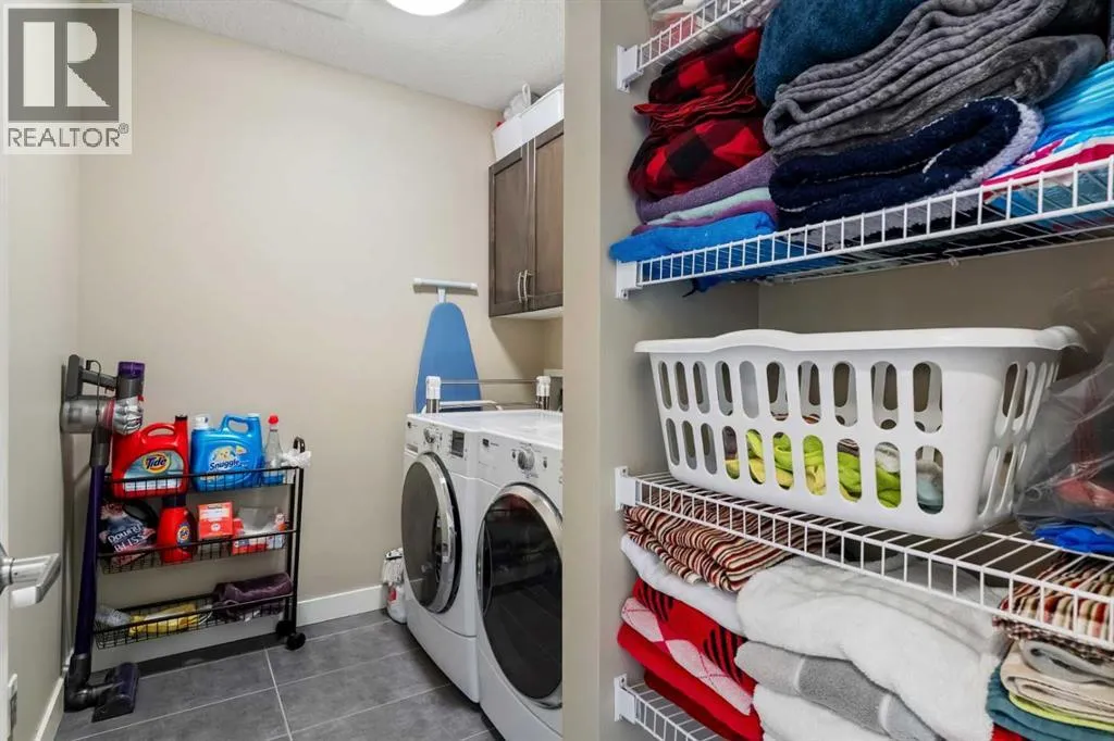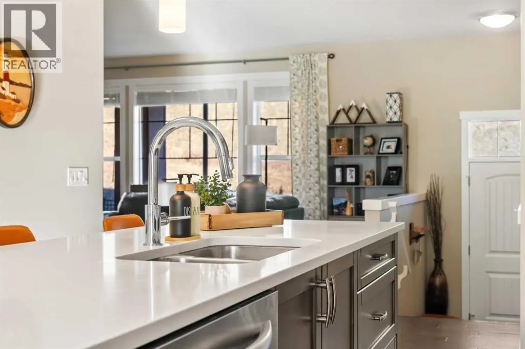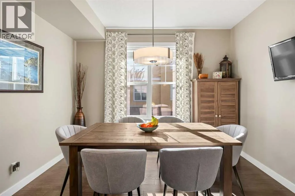 Opportunities like this, do not become available often! ESTATE living Located in the highly desirable community of Cranston Riverstone, this beautifully maintained lower level, BUNGALOW-style townhome offers the perfect blend of comfort, functionality and lifestyleâsurrounded by nature and wild life. With 1732 sq. ft. of combined living space, this home is ideal for downsizers, small families, or buyers seeking low-maintenance living without compromising on style or convenience.The main level features a bright, open-concept layout with durable ENGINEERED HARDWOOD flooring, large windows, and a warm, inviting feel. The living room is centered around a cozy gas fireplace, perfect for relaxing or entertaining. The kitchen is both stylish and functional, complete with quartz countertops, a central island, modern appliances, and ample cabinetry, making everyday cooking a breeze. The adjoining dining area offers plenty of space for hosting and entertaining. This home includes two spacious bedrooms, highlighted by a comfortable primary retreat with a walk-in closet featuring built-in organizers and a private 4-piece ensuite with a double vanity. A second full bathroom provides added flexibility for guests or shared living. In-unit laundry with built-in cabinetry adds everyday convenience.Step outside to enjoy your OVERSIZED patio overlooking the scenic Riverstone HILLSIDE, where nature and wildlife are part of your everyday view. Whether you're relaxing or barbecuing, this outdoor space is perfect for year-round enjoyment. This home also features a FINISHED double attached garage with EXPOXY flooring which also includes garage cabinets, bikes racks and a tire rack. More valuable upgrades include NEW central air conditioning, window coverings, a water softener and doorbell camera. As you enter the basement, this space adds additional versatility, making it an ideal space for a home office, hobby area, or extra storage.Located within Mosaic Riverstone in Cranston, r esidents enjoy professionally maintained grounds with landscaping and snow removal, enhancing the low-maintenance lifestyle. The community offers easy access to walking and biking pathways, schools, shopping, parks, and the Bow Riverâperfect for outdoor enthusiasts. With its smart layout, quality finishes, and prime location in one of southeast Calgaryâs most sought-after communities, 109 Cranbrook Villas SE is an exceptional opportunity! Book your showing today! (id:27476)