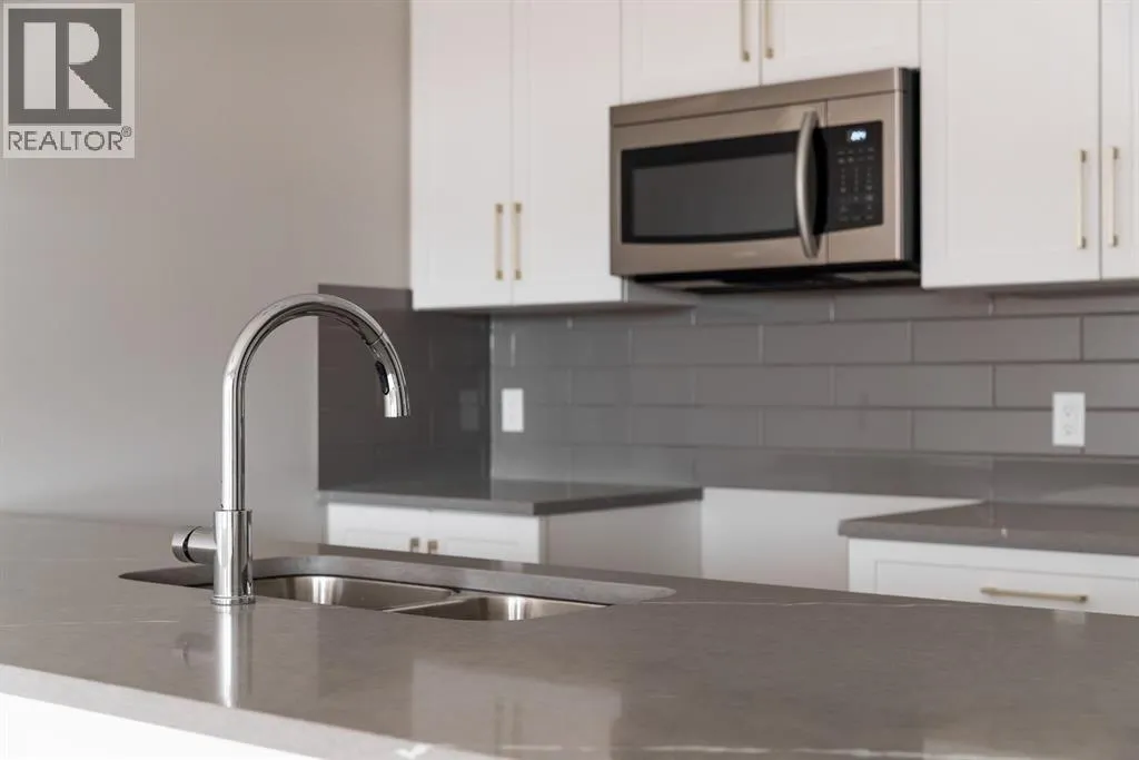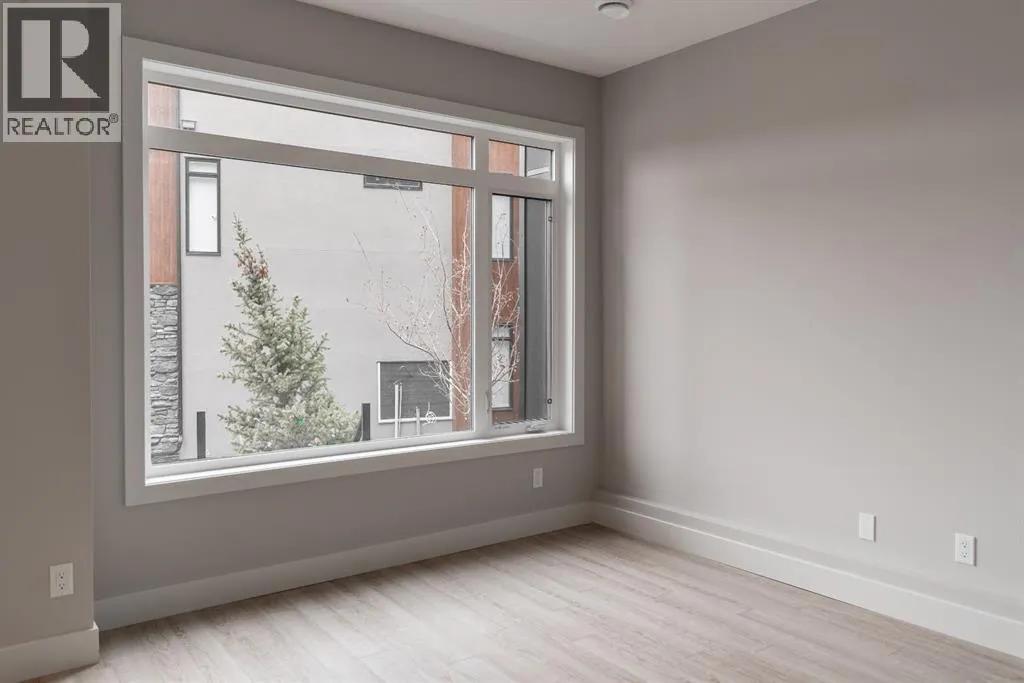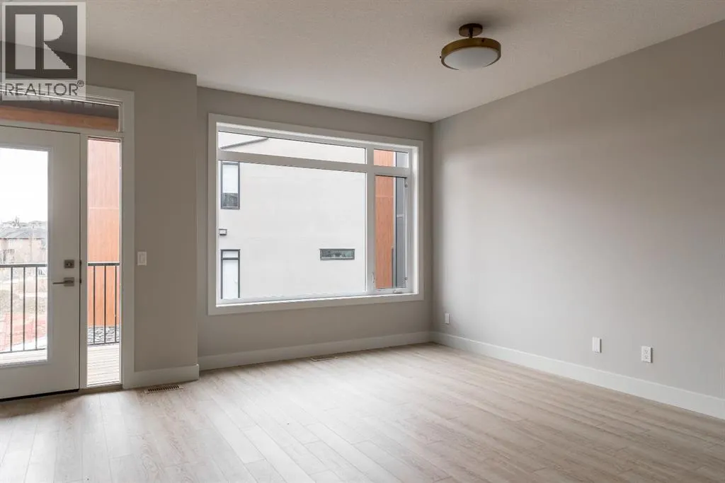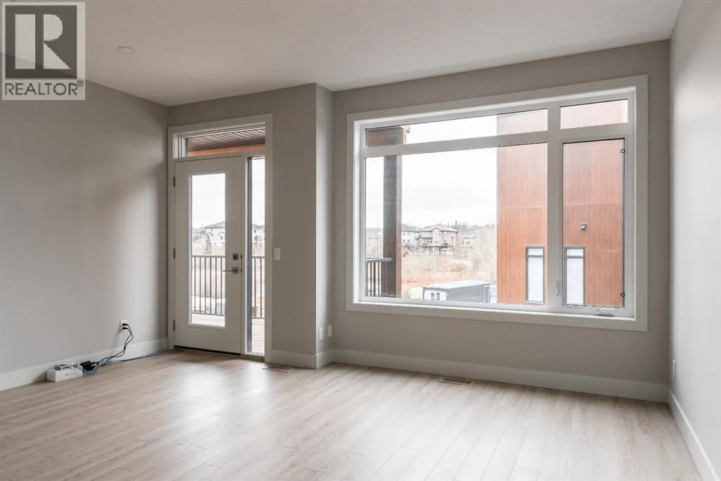 Ravines of Royal Oak by Janssen Homes offers unmatched quality & design, located on the most scenic & tranquil of sites in the mature NW community of Royal Oak. This 2BR, 1-full bath 1,233sf (1,233RMS) 24â-wide stacked townhouse with single attached garage boasts superior finishings. Open-concept-plan features a fresh, modern kitchen with full-height cabinets, soft close doors/drawers & full extension glides, quartz counters, undermount sink, plus 4 S/S appliances & convenient peninsula island opening onto both dining area with access to rear balcony & spacious living room. With over 900sf on the second living level there is ample space for a roomy master retreat, 4-pce bath with tile floor & quartz vanity, an additional bedroom which can be used as an office, & ultra-convenient laundry area. Convenient flex room on the main level along with a single attached garage with room to park an extra car on front driveway completes the package. Ravines of Royal Oak goes far beyond typical townhome offerings; special attention has been paid to utilizing high quality, maintenance free, materials to ensure long-term, worry-free living. Acrylic stucco with underlying 'Rainscreen' protection, stone, & Sagiwall vertical planks (ultra-premium European siding) ensure not only that the project will be one of the most beautiful in the city, but that it will stand the test of time with low maintenance costs. Other premium features include triple-pane, argon filled low-e, aluminum clad windows, premium grade cabinetry with quartz countertops throughout, 9' wall height on all levels, premium Torlys LV Plank flooring, 80-gal hot water tank, a fully insulated & drywalled attached garage that includes a hose bib & smart WiFi door opener, among other features. Condo fees include building insurance, exterior building maintenance & long-term reserve/replacement fund, road & driveway maint., landscaping maint., driveway & sidewalk snow removal, landscaping irrigation, street & pathway lighting , garbage/recycling/organics service. Bordered by ponds, natural ravine park, walking paths & only minutes to LRT station, K-9 schools, YMCA & 4 major shopping centres. Note - photos from a similar model in the complex. (id:27476)