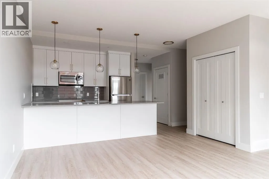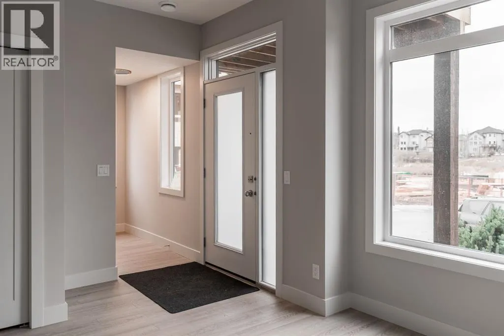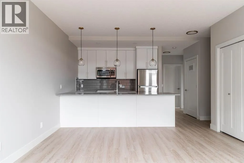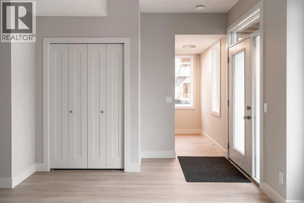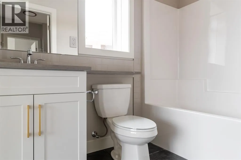 Ravines of Royal Oak by Janssen Homes offers unmatched quality & design, located on the most scenic & tranquil of sites in the mature NW community of Royal Oak. This 2BR, 1-full bath 1,233sf (1,233RMS) 24â-wide stacked townhouse with single attached garage boasts superior finishings. Open-concept-plan features a fresh, modern kitchen with full-height cabinets, soft close doors/drawers & full extension glides, quartz counters, undermount sink, plus 4 S/S appliances & convenient peninsula island opening onto both dining area with access to rear balcony & spacious living room. With over 900sf on the second living level there is ample space for a roomy master retreat, 4-pce bath with tile floor & quartz vanity, an additional bedroom which can be used as an office, & ultra-convenient laundry area. Convenient flex room on the main level along with a single attached garage with room to park an extra car on front driveway completes the package. Ravines of Royal Oak goes far beyond typical townhome offerings; special attention has been paid to utilizing high quality, maintenance free, materials to ensure long-term, worry-free living. Acrylic stucco with underlying 'Rainscreen' protection, stone, & Sagiwall vertical planks (ultra-premium European siding) ensure not only that the project will be one of the most beautiful in the city, but that it will stand the test of time with low maintenance costs. Other premium features include triple-pane, argon filled low-e, aluminum clad windows, premium grade cabinetry with quartz countertops throughout, 9' wall height on all levels, premium Torlys LV Plank flooring, 80-gal hot water tank, a fully insulated & drywalled attached garage that includes a hose bib & smart WiFi door opener, among other features. Condo fees include building insurance, exterior building maintenance & long-term reserve/replacement fund, road & driveway maint., landscaping maint., driveway & sidewalk snow removal, landscaping irrigation, street & pathway lighting , garbage/recycling/organics service. Bordered by ponds, natural ravine park, walking paths & only minutes to LRT station, K-9 schools, YMCA & 4 major shopping centres. Note - photos from a similar model in the complex. (id:27476)