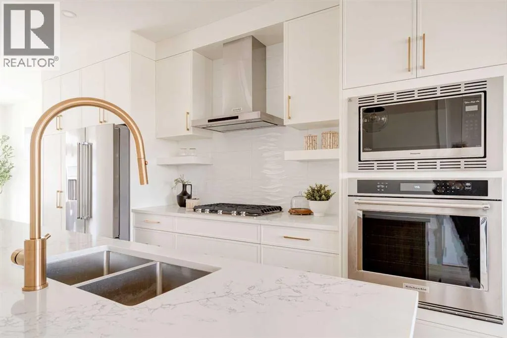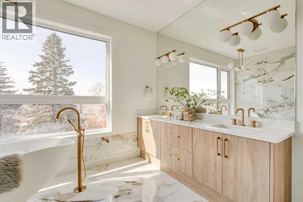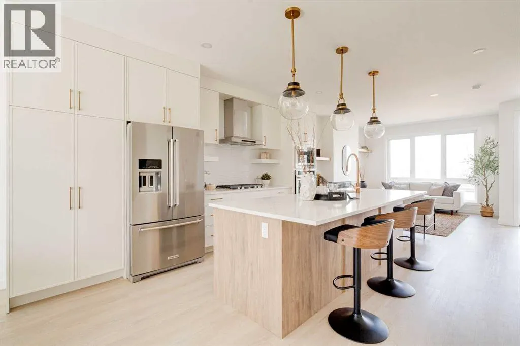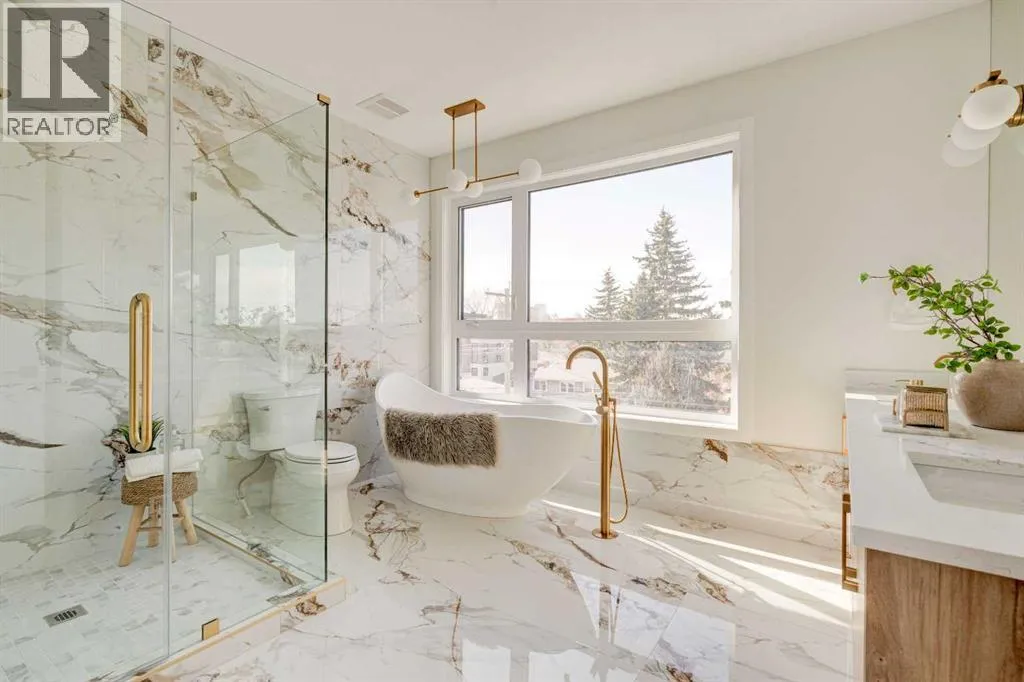 Discover the perfect blend of sophisticated living and everyday comfort in this exceptional home in the heart of Winston Heights. Spanning over 2,900 square feet of thoughtfully developed space, this residence offers stunning views and a layout that truly works for how you live.The main floor welcomes you with an open, light-filled living room anchored by a cozy gas fireplace â the kind of space where memories are made over long dinners and great conversations. Just steps away, the gourmet kitchen shines with premium finishes and thoughtful design, making it a joy to cook, entertain, or simply enjoy your morning coffee.Upstairs, the second floor delivers flexibility with a peaceful primary suite featuring a luxurious 5-piece ensuite, plus an additional bedroom that adapt beautifully for family, a home office, or a quiet reading nook. The third floor is a true standout â a private master retreat with its own generous 5-piece ensuite and a private patio that captures breathtaking views, ideal for unwinding with a glass of wine on warm summer evenings.Throughout the home, youâll notice the quality touches: rich hardwood floors, sleek quartz countertops, and impeccable craftsmanship in every detail.The fully finished basement adds even more living options with a spacious recreation room complete with a wet bar, two additional bedrooms, and a full bathroom â perfect for guests, teens, or extended family.Located in vibrant Winston Heights, youâre surrounded by parks, golf courses, and just minutes from downtown Calgary â giving you the rare combination of peaceful neighbourhood living with effortless city access. (id:27476)