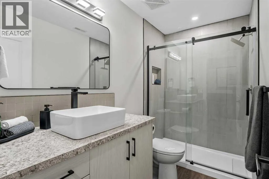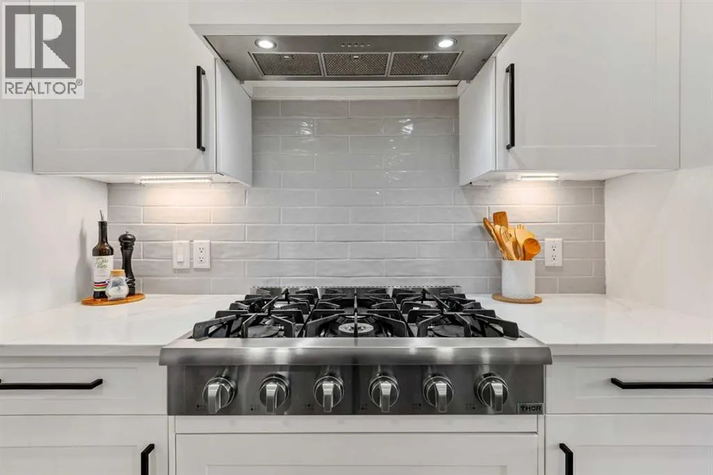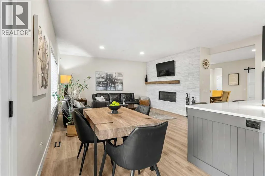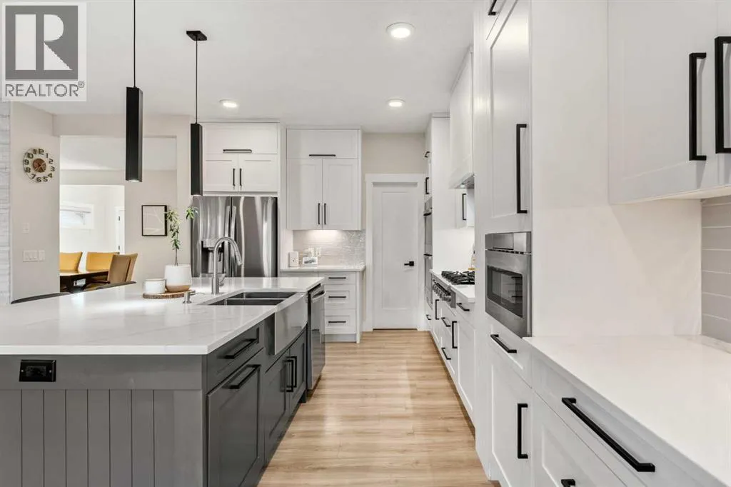 Welcome to 311 Chaparral Ravine, an exquisitely FULLY RENOVATED residence, ideally positioned on a quiet private street in the heart of Chaparral, complete with coveted LAKE ACCESS. Meticulously redesigned with elevated finishes, curated designer selections, and exceptional craftsmanship, this home offers a refined balance of sophistication and everyday comfort.The main level welcomes you with a bright, open-concept layout featuring a spacious family room and dining area, complemented by a convenient powder room. At the center of the home is a stunning chef-inspired kitchen, thoughtfully designed with a full-size double door refrigerator, built-in ovens and microwave, an expansive island, ceiling-height cabinetry, and abundant storage. A beautifully finished walk-in pantry with custom shelving and an additional bar fridge adds both style and function, while a dedicated coffee bar with its own beverage fridge creates an elegant space for daily rituals. The kitchen flows seamlessly into a second living area, highlighted by a striking brick feature wall that frames the inviting gas fireplace.Upstairs, a generous bonus room offers flexible living space alongside four well-appointed bedrooms. The primary bedroom provides a serene retreat, featuring a spa-inspired ensuite with a deep soaker tub, glass walk-in shower, private water closet, and a spacious walk-in closet designed for both beauty and organization.The FULLY FINISHED BASEMENT further enhances the homeâs versatility with an additional bedroom, an elegant full bathroom, and an expansive recreation room complete with a dry bar and beverage fridgeâperfect for hosting or relaxing. Custom built-in shelving ensures exceptional storage throughout.Outdoor living is equally impressive. Through glass French doors, step onto the deck and concrete patio featuring a BBQ gas line, pergola, gazebo, and storage shedâcreating an inviting setting for summer entertaining or peaceful evenings at home.Located in the presti gious lake community of Chaparral, residents enjoy the lifestyle of Lake Chaparral, with year-round recreation including swimming, skating, paddleboarding, and scenic walking paths, all while being close to schools, parks, and everyday amenities. Experience the perfect blend of luxury, comfort, and community living â you donât want to miss out on this property, book your private showing today. (id:27476)