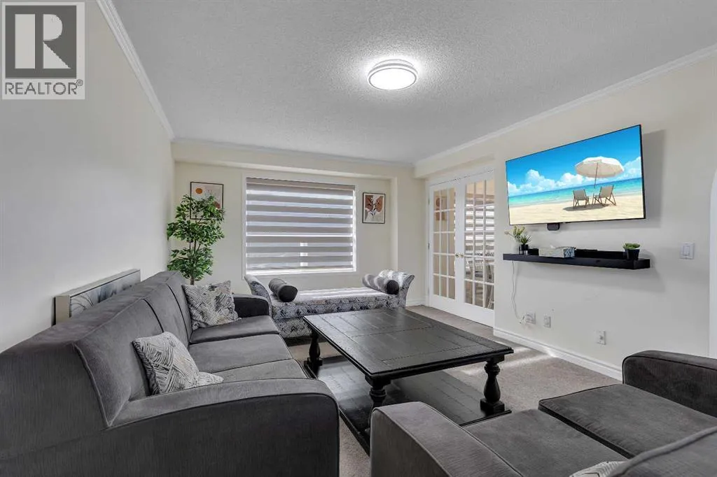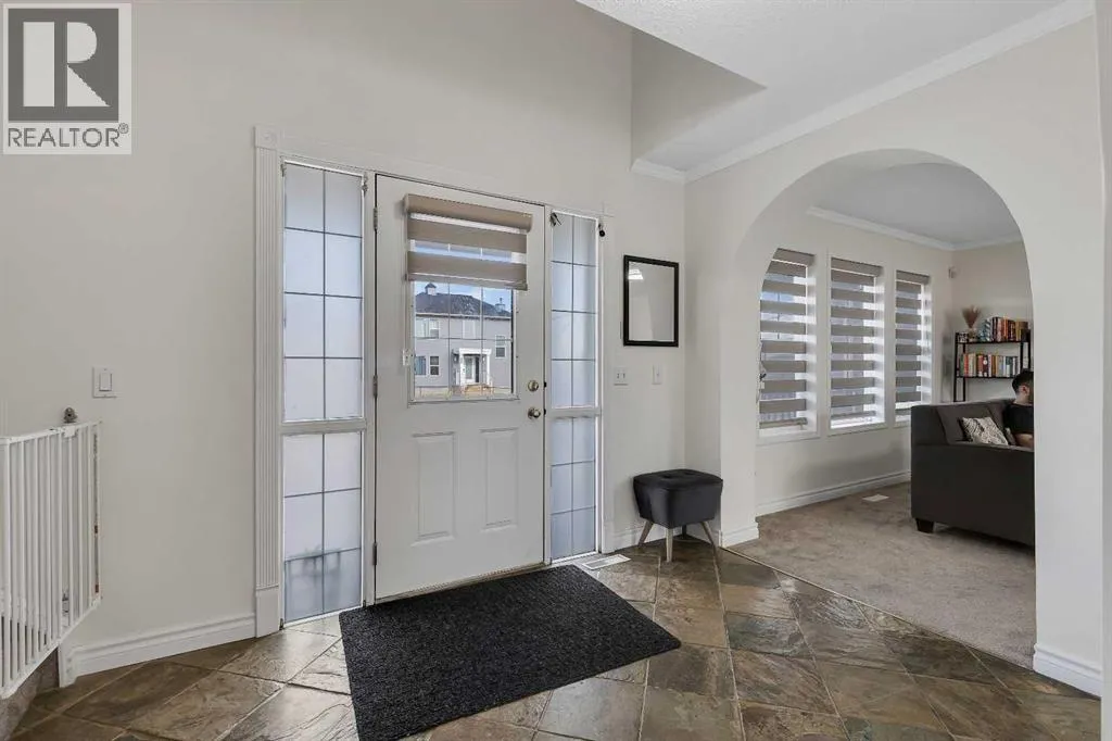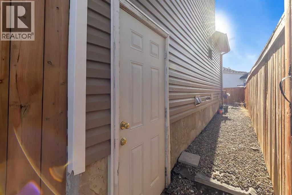 Experience the perfect blend of elegance and functionality in this meticulously kept, owner-occupied two-story home located in the highly sought-after community of Martindale. You are greeted by a charming front porch that leads into a grand foyer, where soaring open-to-above ceilings and dual-aspect windows flood the living area with an abundance of natural light. The main level continues to impress with a massive dining room and a well-appointed corner kitchen featuring a walk-in pantry and extensive counter space, all complemented by a convenient 2-piece bath. Upstairs, the primary suite offers a private sanctuary with a walk-in closet and a 4-piece Jack-and-Jill bathroom that provides seamless access to two additional generously sized bedrooms. The fully finished basement serves as a versatile living space with its own separate entrance, featuring a bedroom, a 3-piece bath, a secondary kitchen, and a cozy flex room centered around a warm fireplace, with a dedicated laundry area completing the level. Outside, the property boasts a double car garage and a low-maintenance backyard designed for easy living. This unbeatable location puts you within a 10-minute walk to the LRT, steps from major bus routes, and a short drive to Peter Lougheed Hospital, while top-rated schools like Crossing Park, Nelson Mandela High, and Gobind Sarvar, along with local grocery stores and places of worship, are all just moments away. (id:27476)