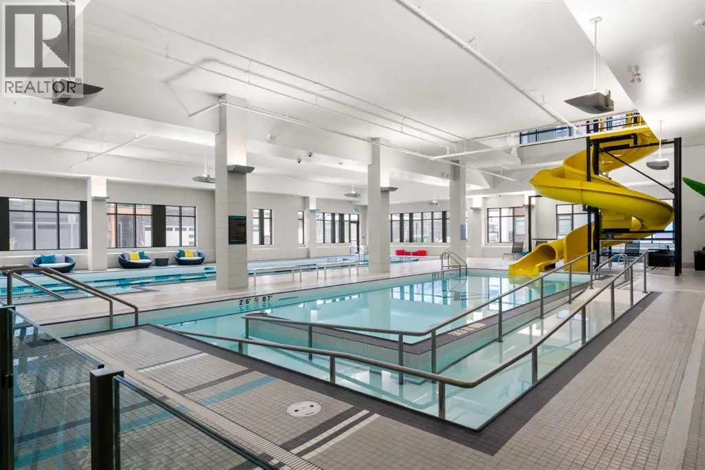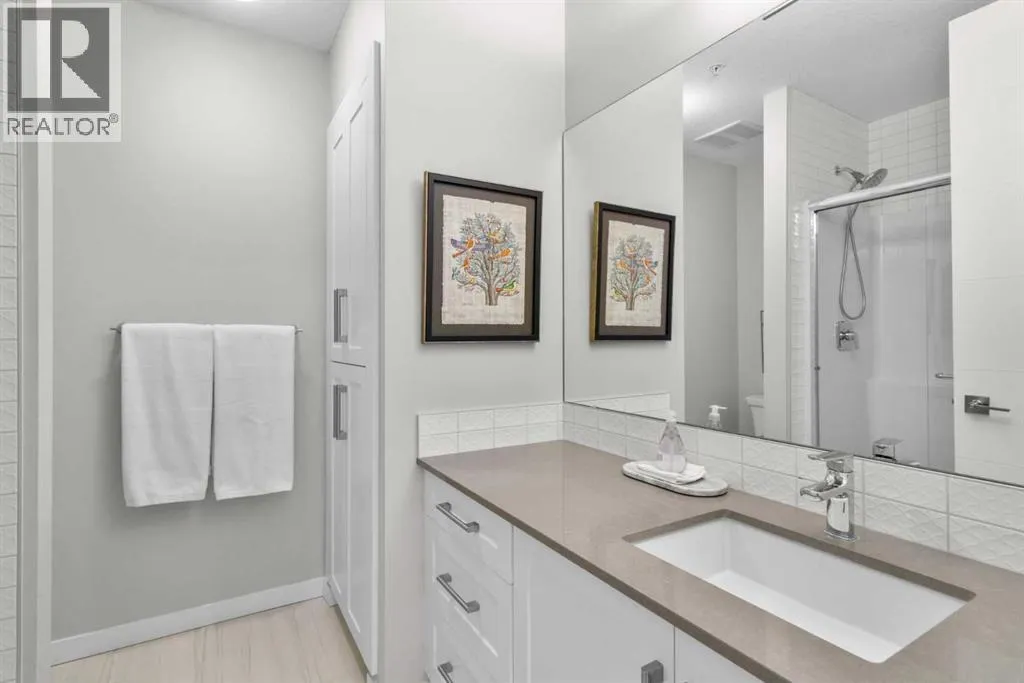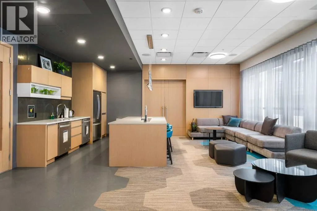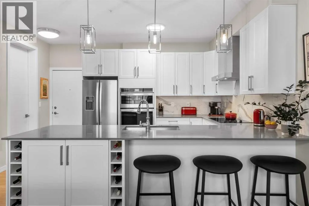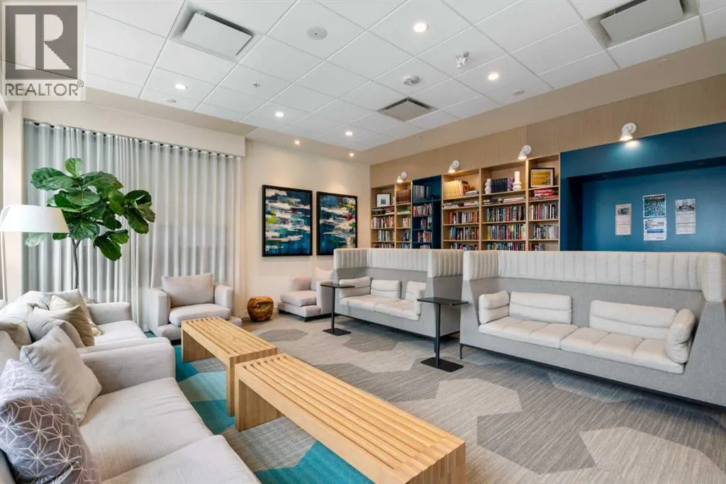 Elevated lake living meets panoramic skyline views in this rare top-floor residence at Westman Village in Mahogany. Positioned at the top of the building with soaring ceilings and expansive west exposure, this executive two-bedroom, two-bathroom luxury condo captures unobstructed mountain, lake, and downtown skyline views â a vantage point seldom available in Calgaryâs condominium market.The elevated ceiling height enhances the sense of space while natural light pours through expansive windows, creating a bright and refined living environment. Top-floor positioning further enhances privacy and delivers uninterrupted sightlines that define the homeâs living experience.Proudly offered by the original owner and meticulously maintained, this residence features an upgraded kitchen package with premium appliances, stone countertops, enhanced cabinetry, and a rare wrap-around U-shaped kitchen peninsula island â a highly functional layout that significantly expands prep space and creates a natural gathering area rarely found in comparable units.The open-concept design flows seamlessly through the dining and living areas and out to a private covered balcony, where sweeping sunset views stretch from the Rocky Mountains across the lake to Calgaryâs skyline.The primary suite offers generous proportions, a customized walk-through closet with built-in organization, and remote-operated blackout blinds for added comfort and privacy. The ensuite is well-appointed with upgraded finishes, while the second bedroom and full bathroom provide flexibility for guests, a home office, or downsizing without compromise.Additional highlights include luxury vinyl plank flooring throughout (no carpet), a thoughtfully designed in-suite laundry space with built-in storage, central air conditioning, triple-pane windows, secure concrete construction, and two titled underground heated parking stalls.Westman Village offers one of Calgaryâs most comprehensive private lifestyle environments, w ith full-service amenities including fitness facilities, wellness areas, social spaces, and premium features such as a wine vault, hot tubs, and steam rooms â all within the building. The complex is pet-friendly and designed for a highly connected, maintenance-free lifestyle.As a resident of Mahogany, youâll also enjoy access to the private Mahogany Beach House, offering year-round recreational opportunities including lake access, paddleboarding, skating, fitness programming, and community events â delivering a true four-season lake lifestyle just steps from your door.This is more than a condominium â it is a top-floor, view-driven luxury residence with rare design features and double titled parking within one of Calgaryâs most sought-after resort-style developments. (id:27476)