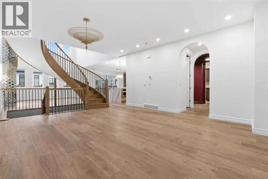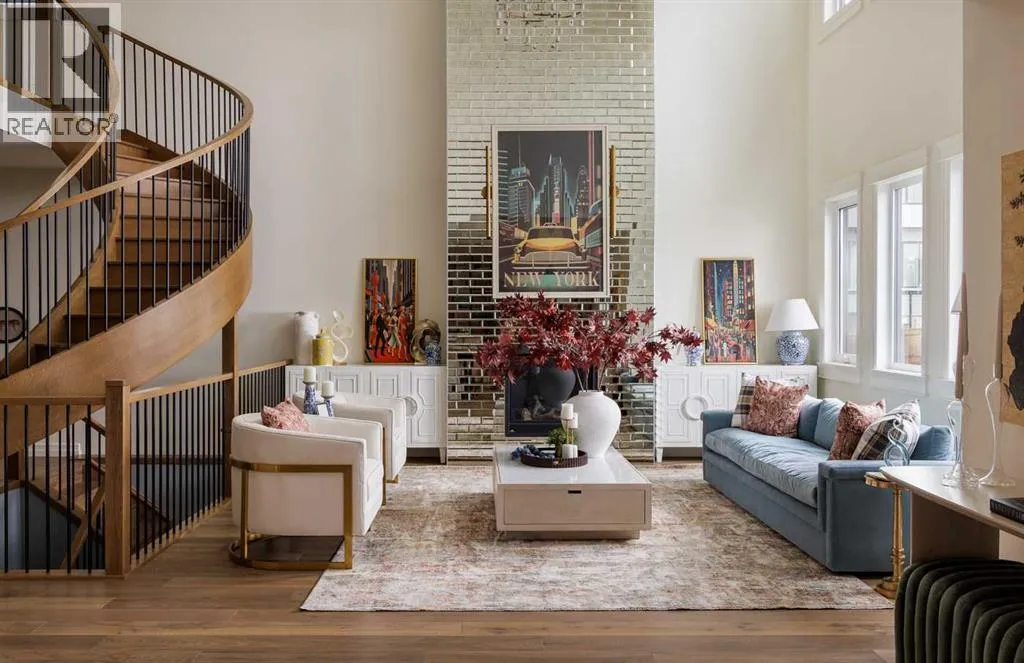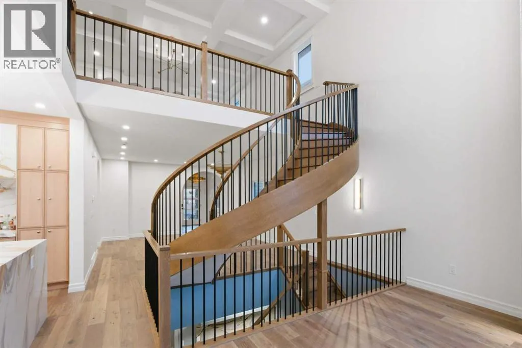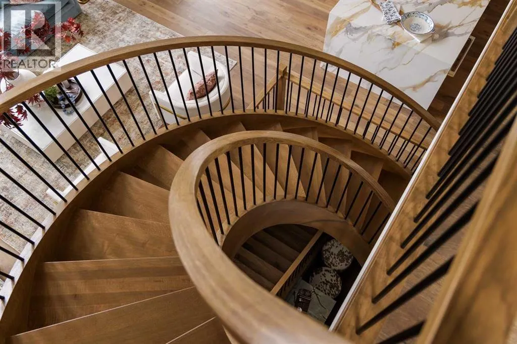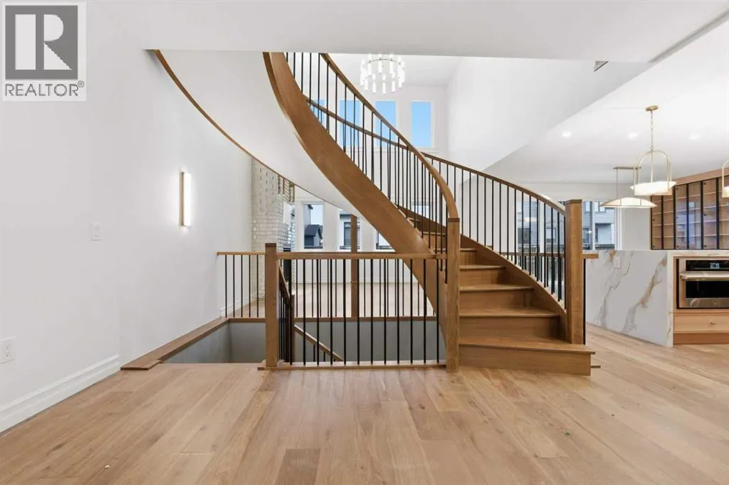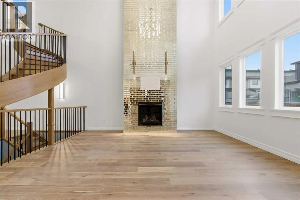 Welcome to an exceptional luxury residence in the prestigious community of Upper Greenwich, highlighted by a breathtaking custom spiral staircase that serves as a true architectural centerpieceâan unforgettable first impression that sets the tone for the entire home.This custom-built two-storey offers over 4,500 sq ft of meticulously crafted living space, blending refined design with everyday functionality. Soaring ceilings, expansive windows, and a seamless open-concept layout create an atmosphere of elegance and ease, perfect for both grand entertaining and comfortable family living.At the heart of the home, the gourmet chefâs kitchen is a showpiece, featuring premium appliances, an oversized island, and a fully equipped spice kitchenâideal for effortless hosting. The main floor living area is anchored by a striking fireplace and flows seamlessly into the dining space and outdoor living area. A private office and thoughtfully designed mudroom add versatility and convenience.Upstairs, the luxurious primary retreat offers a serene escape with a spa-inspired ensuite, complete with a deep soaker tub, oversized glass shower, and a spacious walk-in closet. Additional bedrooms are generously sized, each with access to beautifully appointed bathrooms.The fully developed basement expands your living space with a large recreation area, wet bar, fitness room, and guest accommodationsâperfect for entertaining or multi-generational living.Situated on a premium lot, this home also features a triple attached garage and is just minutes from parks, pathways, shopping, and top-tier amenities. A rare opportunity to own a truly distinguished home in one of Calgaryâs most sought-after emerging communities. (id:27476)