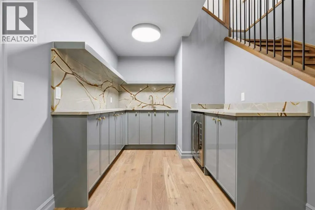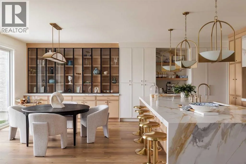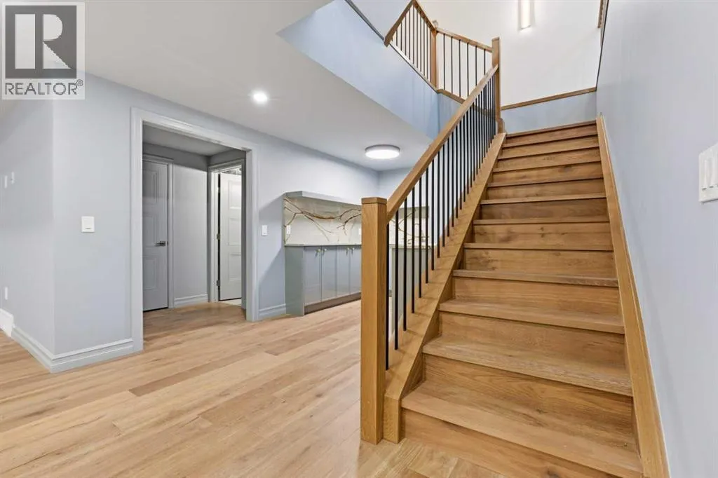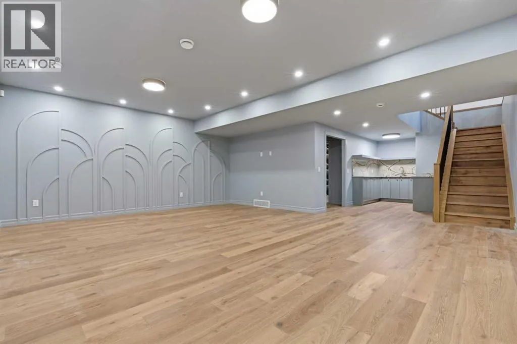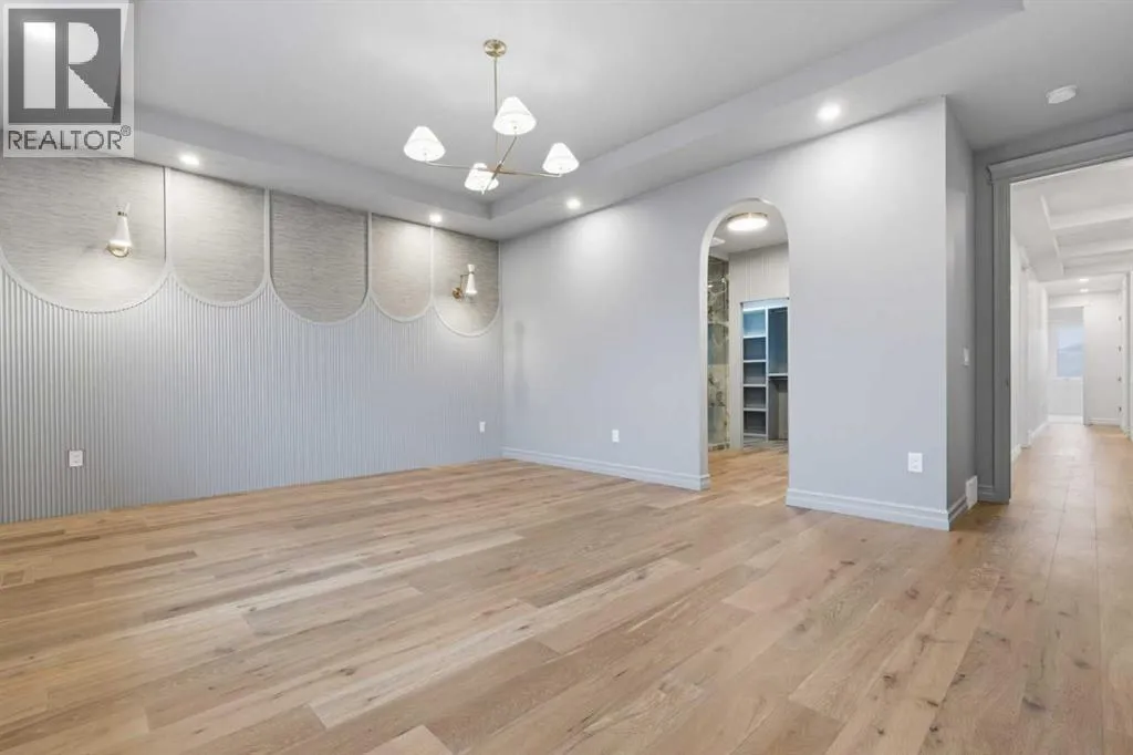 Welcome to an exceptional luxury residence in the prestigious community of Upper Greenwich, highlighted by a breathtaking custom spiral staircase that serves as a true architectural centerpieceâan unforgettable first impression that sets the tone for the entire home.This custom-built two-storey offers over 4,500 sq ft of meticulously crafted living space, blending refined design with everyday functionality. Soaring ceilings, expansive windows, and a seamless open-concept layout create an atmosphere of elegance and ease, perfect for both grand entertaining and comfortable family living.At the heart of the home, the gourmet chefâs kitchen is a showpiece, featuring premium appliances, an oversized island, and a fully equipped spice kitchenâideal for effortless hosting. The main floor living area is anchored by a striking fireplace and flows seamlessly into the dining space and outdoor living area. A private office and thoughtfully designed mudroom add versatility and convenience.Upstairs, the luxurious primary retreat offers a serene escape with a spa-inspired ensuite, complete with a deep soaker tub, oversized glass shower, and a spacious walk-in closet. Additional bedrooms are generously sized, each with access to beautifully appointed bathrooms.The fully developed basement expands your living space with a large recreation area, wet bar, fitness room, and guest accommodationsâperfect for entertaining or multi-generational living.Situated on a premium lot, this home also features a triple attached garage and is just minutes from parks, pathways, shopping, and top-tier amenities. A rare opportunity to own a truly distinguished home in one of Calgaryâs most sought-after emerging communities. (id:27476)