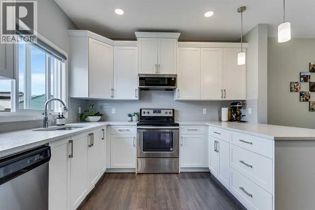 Looking for a place that just feels right the second you walk in? This is it. Bright, welcoming, and full of functional space, this Walden home offers three finished levels, four true bedrooms, and enough room for everyone to have their own little corner to crash, create, or chill. Walk up the charming front porch and step into a main floor that was made for real life. Itâs open and airy, with big windows and a layout that just makes sense. The classic white kitchen features granite countertops and a generous pantry, flowing easily into the living and dining areas. Thereâs even a half bath and a mudroom tucked off the back entrance to keep the daily chaos out of sight but close at hand. Upstairs on the second level, the spacious primary suite includes a walk-in closet and private four-piece ensuite. Two more bedrooms, a full bathroom, and laundry are also on this floor. Yes, the laundry is upstairs, right where you want it. One more level up, youâll find the kind of flexible bonus space you didnât know you needed. Whether itâs a teen hangout, office zone, guest retreat, or creative studio, this upper floor has a large fourth bedroom, another full bathroom, and a cozy nook perfect for working, relaxing, or just taking five minutes to yourself. The basement is currently partially finished with drywall and offers loads of potential. With an exterior stairwell entrance and plumbing already roughed in, itâs ready for whatever you dream up. Think in-lawâs, home gym, games room, or storage that keeps your main floor clutter-free. Outside, the fenced backyard has room to play, garden, or unwind. Thereâs a raised deck for morning coffees or evening drinks and a poured concrete parking pad ready for your future garage. Walden is one of Calgaryâs newer southeast communities and is known for its modern vibe, walkable paths, and convenient access to nature and amenities. Youâll find schools, shops, parks, and restaurants all close by, plus quick routes to wherever else life ta kes you. (id:27476)
