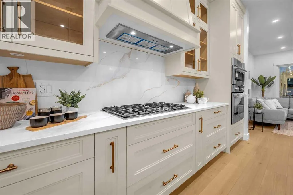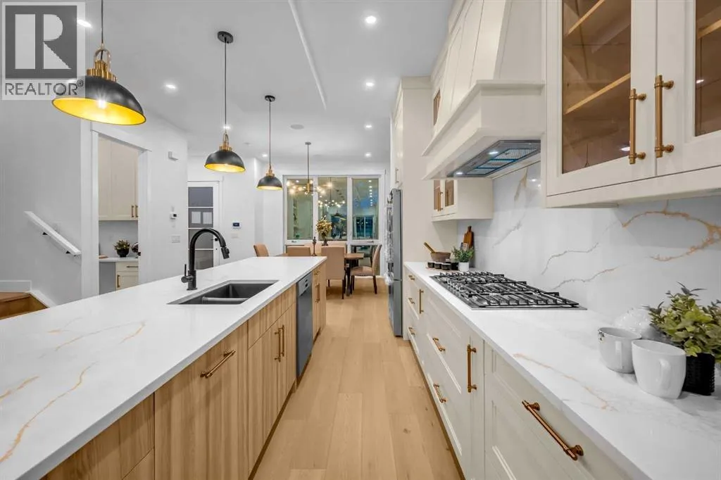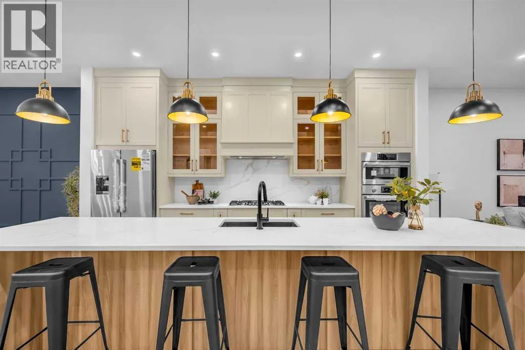 **BOTH SIDES AVAILABLE & QUICK POSSESSION AVAILABLE!** Welcome to this truly remarkable residence in the heart of the highly desirable North Glenmore Park community, where contemporary architecture meets meticulous craftsmanship. This property seamlessly blends luxury, functionality, and investment potential. South-facing backyard, and a 2-bedroom legal basement suite, this home offers unparalleled comfort, elegance, and versatility for families and investors alike. From the moment you step through the door, youâll be captivated by the open-concept layout, high-end finishes, and abundance of natural light. The main floor is an entertainerâs dream, designed to maximize functionality without compromising style. The central gourmet kitchen is the heart of the home, featuring stainless steel appliances, custom high-rise cabinetry, quartz countertops, a spacious built-in pantry, and a large island with bar seating. Whether youâre hosting dinner parties or enjoying casual meals with family, this kitchen is sure to impress. The kitchen also features a coffee bar that has a sink. Adjacent to the kitchen, the dining area is flooded with light from oversized windows, creating a warm and inviting space for gatherings. The main-floor office, thoughtfully tucked away, provides the perfect environment for productivity, whether for remote work, study, or personal projects. A well-organized mudroom, complete with built-in storage and a bench, adds a layer of convenience, while the elegantly designed half bathroom enhances the functionality of this level. The upper floor continues to impress with its focus on luxury and practicality. The primary suite is a true retreat, featuring sky-high vaulted ceilings, a walk-in closet, and a spa-like 5-piece ensuite. The ensuite is a masterpiece in itself, offering a free-standing soaker tub, a walk-in rain shower, dual sinks, and premium finishes, creating a space that feels like your own private sanctuary. Two additional bedrooms, each with sophisticated tray ceiling accents, provide comfort and style for family members or guests. A spacious laundry room with a sink, counter space, and linen storage ensures organization and efficiency on this level. One of the homeâs standout features is the fully developed legal basement suite, which offers a host of possibilities. With its own private side entrance, this legal suite is designed for maximum privacy and functionality. It includes two spacious bedrooms, a sleek kitchen with quartz countertops and modern finishes, a stylish 4-piece bathroom, and its own laundry facilities. Whether used as a mortgage helper, a rental property, or a space for extended family, this legal suite is a valuable addition to the home. Close to parks, schools, shopping, Mount Royal University, Marda Loop, Lakeview Golf Course, easy access to Crowchild and Glenmore Trail and so much more. (id:27476)