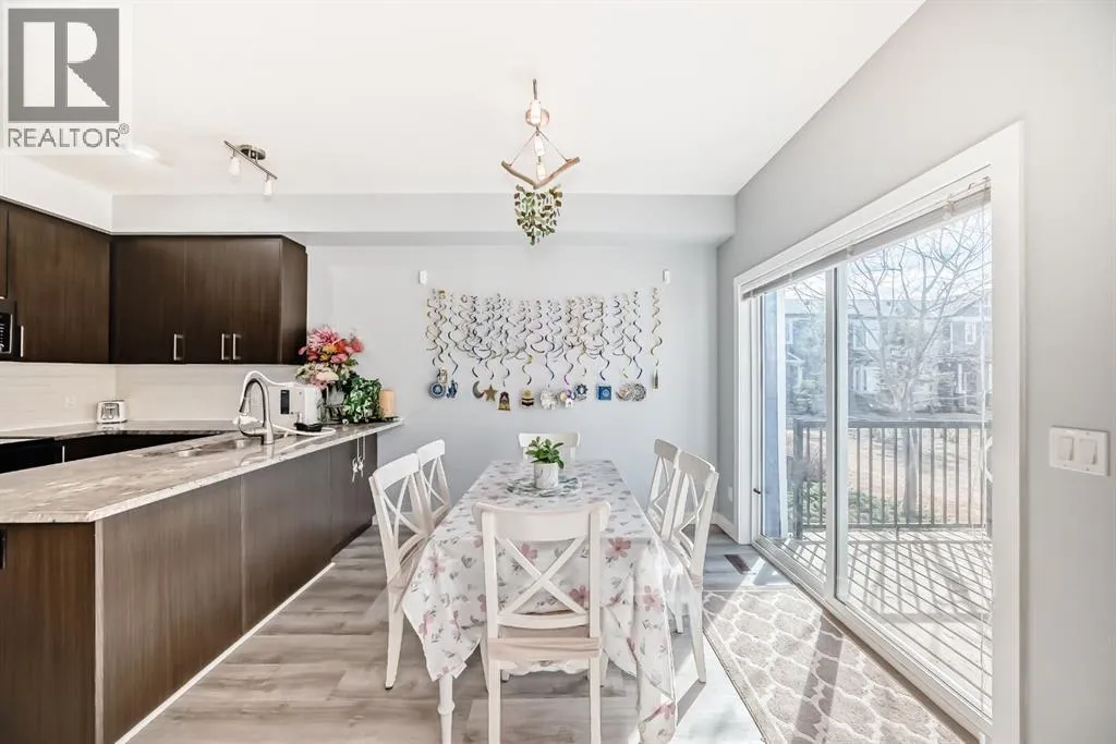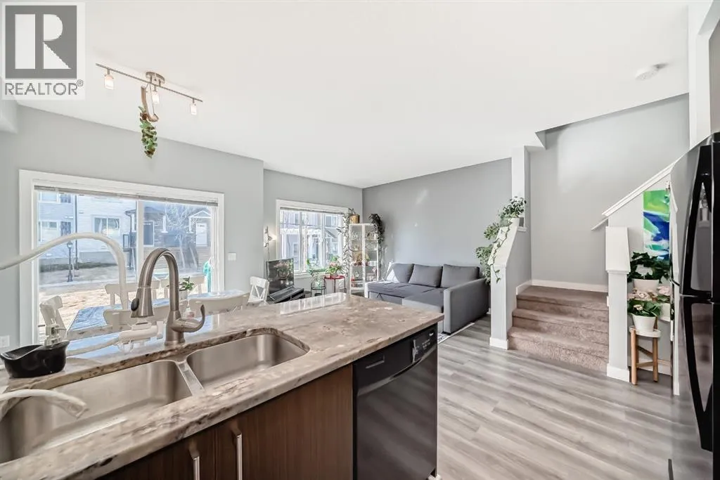 Beautifully maintained 2-storey townhouse condo built in 2013, offering 3 bedrooms, 3 bathrooms, and a front-attached garage. The open-concept main floor features a modern kitchen with stone countertops, black appliances, and a bright living and dining area.Upstairs includes three spacious bedrooms, including a primary suite with walk-in closet and ensuite, plus convenient upper-level laundry. Recent updates include fresh paint and vinyl plank flooring.Partially finished basement with additional room and future development potential. Enjoy a sunny south-facing patio backing onto greenspace. Located close to parks, shopping, and amenities. Immediate possession available. (id:27476)
