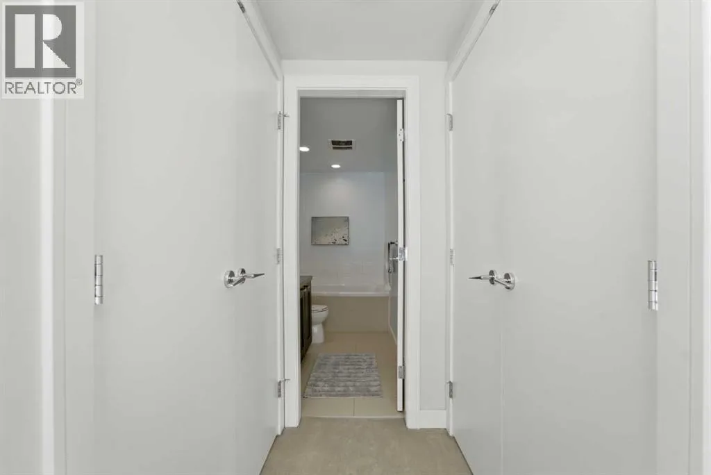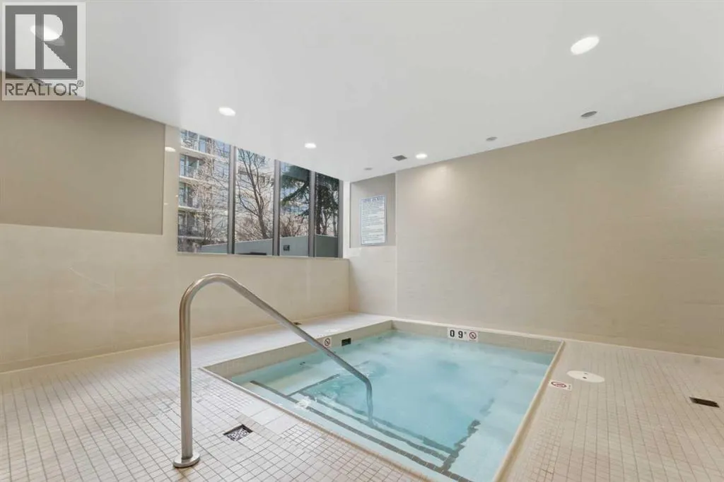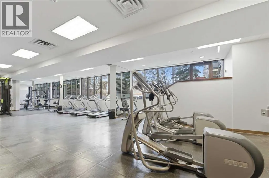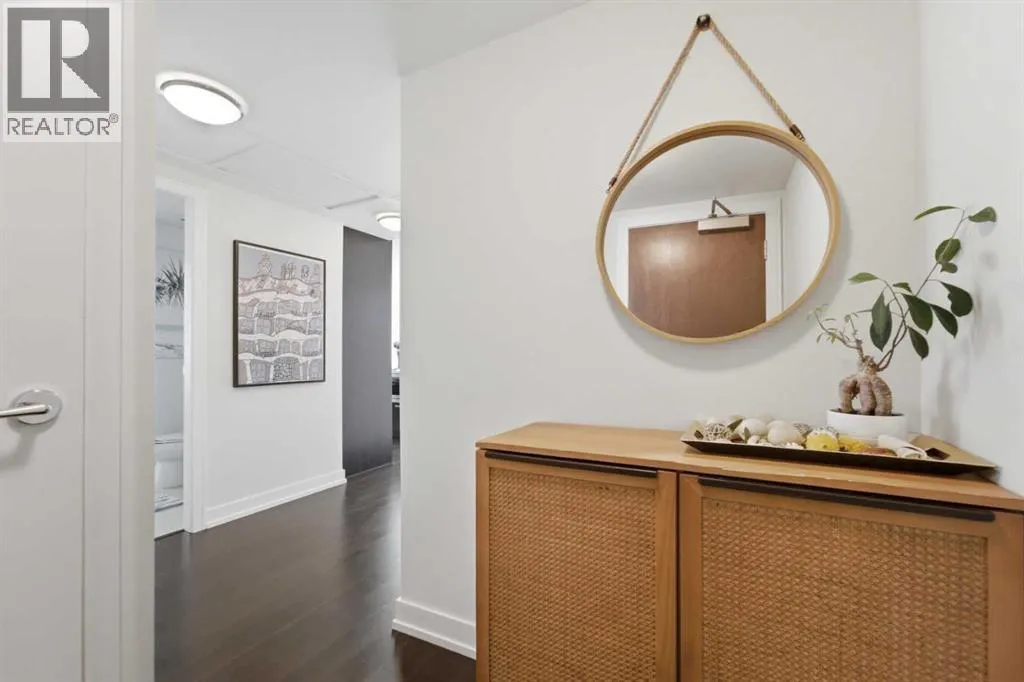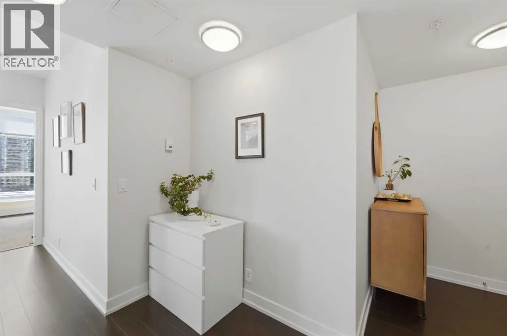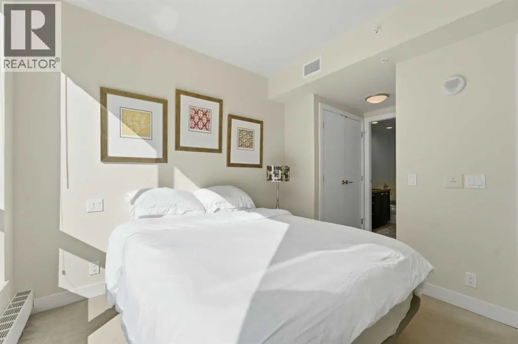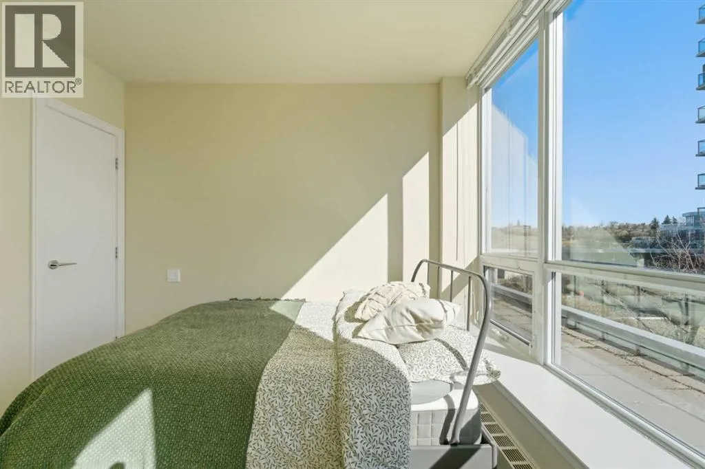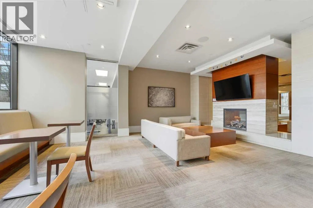Bright and sunny, corner 2 bedroom and 2 bath in a concrete building. Flooded with beautiful light, this south east corner unit, has amazing city and river views. Very open plan with gourmet kitchen, with gas stove, quart counters, large eating bar. South facing living room with gas fireplace. Master bedroom has a spa style suite, and duel closets. Second bedroom is well located, for privacy making it ideal for a roommate. Underground parking and storage locker are included. Building amenities include a fitness center (weight, cardio equipment and jacuzzi tub), social room, theatre, and of a concierge desk. Lots of visitor parking for friends and family. Prime Eau Claire location steps for coffee shops, restaurants, shopping, river walkways, bike paths, restaurants, downtown nightlife, and transit. Immediate possession. (id:27476)