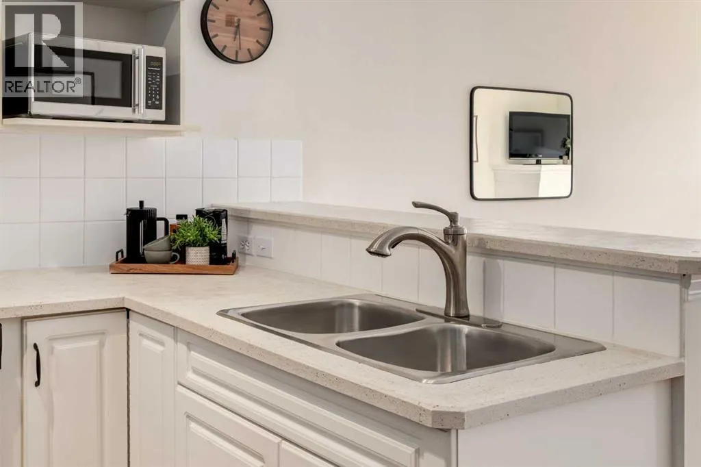Renovated main floor condo has plenty of natural light and is move in ready! The well appointed kitchen has plenty of cabinets, granite counters with raised breakfast bar and overlooks your large living and dining rooms, perfect for entertaining. Patio doors off the living room lead to your private south facing patio. The primary bedroom has a walk through closet and 4 piece ensuite. The 2nd bedroom/den is adjacent to the 3 piece bath, great for roommates or guests. The insuite laundry room can accommodate a washer and dryer and still have storage space. You also have an assigned storage and a titled parking stall in the heated underground parkade which also has a car wash bay for the residents to use. This well maintained complex has a great location close to many great amenities of Kensington, schools, transit and an easy commute to downtown, SAIT, U of C, and the Foothills and Children's Hospitals. Don't miss out! (id:27476)