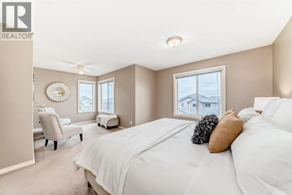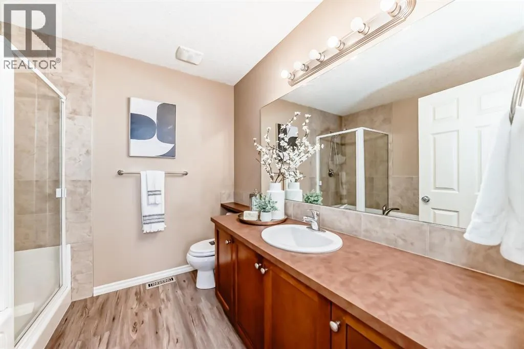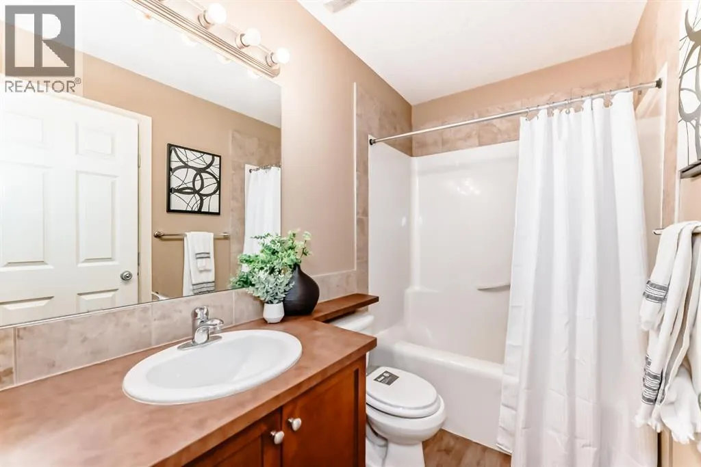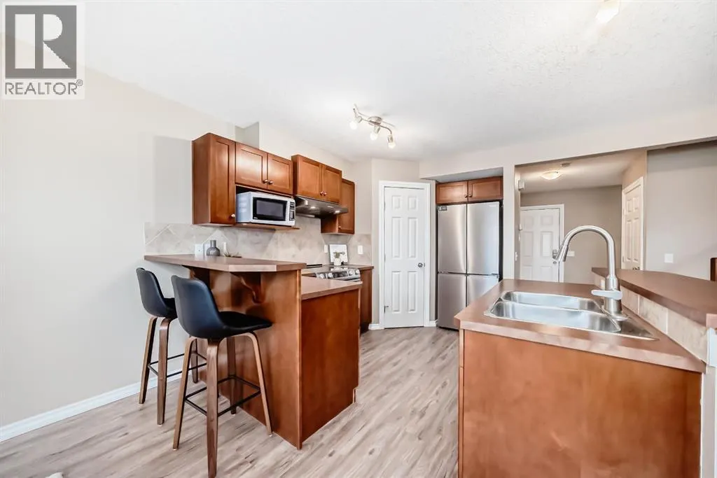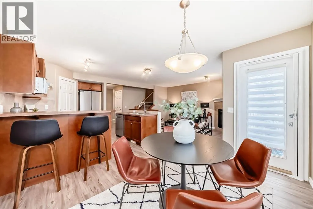 This beautiful three-bedroom walkout can be found in the sought-after Royal View Estates complex, where homes rarely come up for sale. The owners have taken meticulous care of this semi-detached home, which is mere minutes from all the amenities of Royal Oak, including the YMCA; along with the great schools of the popular northwest community. It is pet-friendly and located across the street from a large park. The main floor, with unblemished vinyl plank flooring, has an open concept kitchen with brand new stainless steel appliances and a spacious corner pantry. It has both a two-person breakfast bar and eating nook large enough to comfortably seat your dinner guests. Right off the main floor area is a south-facing balcony that will allow you to enjoy your coffee under the morning sun. The living room is large enough to host friends and family and features a natural gas corner fireplace that will add to the ambiance. Upstairs, the primary bedroom faces the south, giving you a bright retreat. It is large enough to easily allow for a king size bed and features an extra space for either a desk or sitting area. Itâs ensuite comes with both a separate shower and soaker tub. As with the kitchen, the laminate countertops are in pristine condition. The two secondary bedrooms are both large enough to fit queen beds. This home is made extra special by the beautiful walkout basement, which has two large south facing windows and patio. With is full living room area and space for a full games table or pool table and can easily handle large gatherings. The kitchen area has a sink, counter top and mini fridge. The basement also comes with a beautiful four-piece bath and laundry hook up. (id:27476)