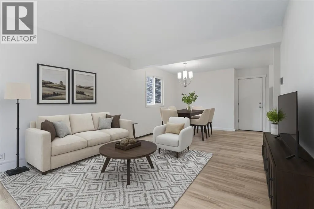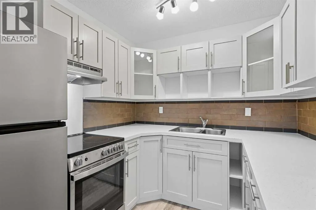 Step inside this beautifully updated corner unit condo and experience a home that balances style, function, and warmth. The open concept living and dining area sets the tone, with bright natural light pouring in through large windows and neutral tones that create a fresh, welcoming atmosphere. The kitchen is a true highlight, showcasing white cabinetry with elegant glass inserts that combine timeless style with everyday functionality. The bathroom has also been upgraded with a new vanity and a stylish tile surround, bringing a fresh, modern feel to this private retreat. The living room is spacious and inviting, perfect for relaxing or entertaining. The dining space sits under a contemporary chandelier, giving the area a polished, modern touch. This condo features two generously sized bedrooms, each designed with comfort in mind. Large windows fill the spaces with natural light, providing calming views of the treed courtyard. Whether you need restful retreats, guest accommodations, or a dedicated home office, these rooms offer the flexibility you need. Recent upgrades throughout include new flooring, lighting, and modern finishes, making this condo truly move-in ready. Prime location close to schools, shopping, dining & transit. Perfect for first-time buyers, downsizers, or investors. This is your chance to own a home that combines modern comfort with everyday convenience. Donât wait, book your private showing today and see for yourself! (id:27476)