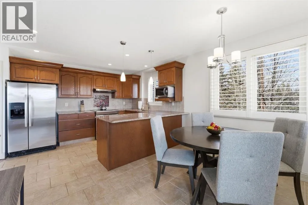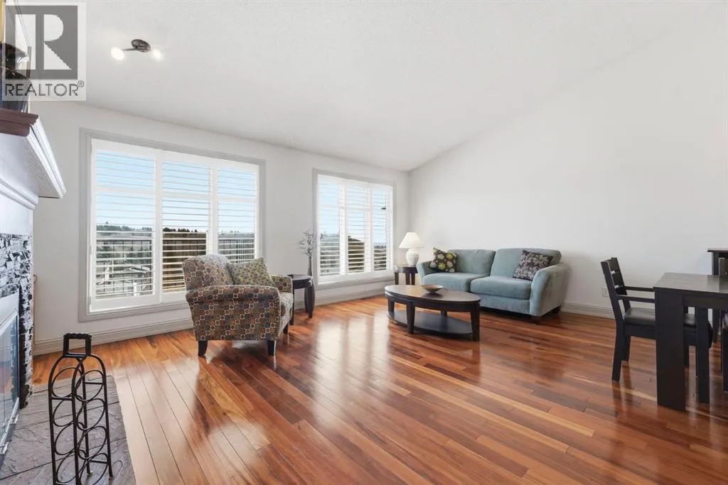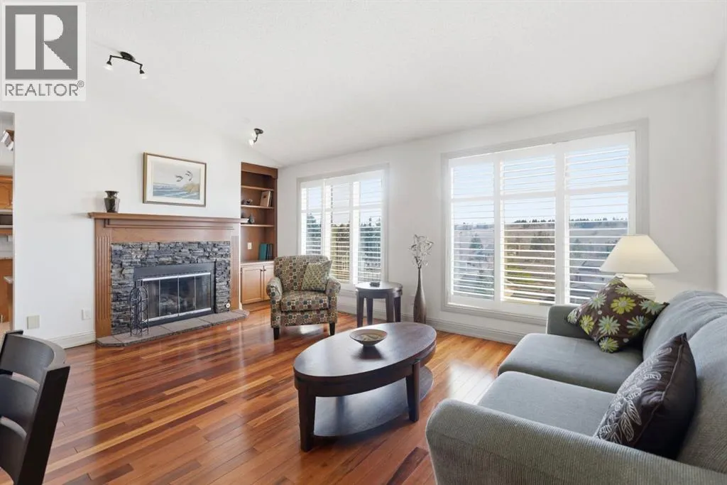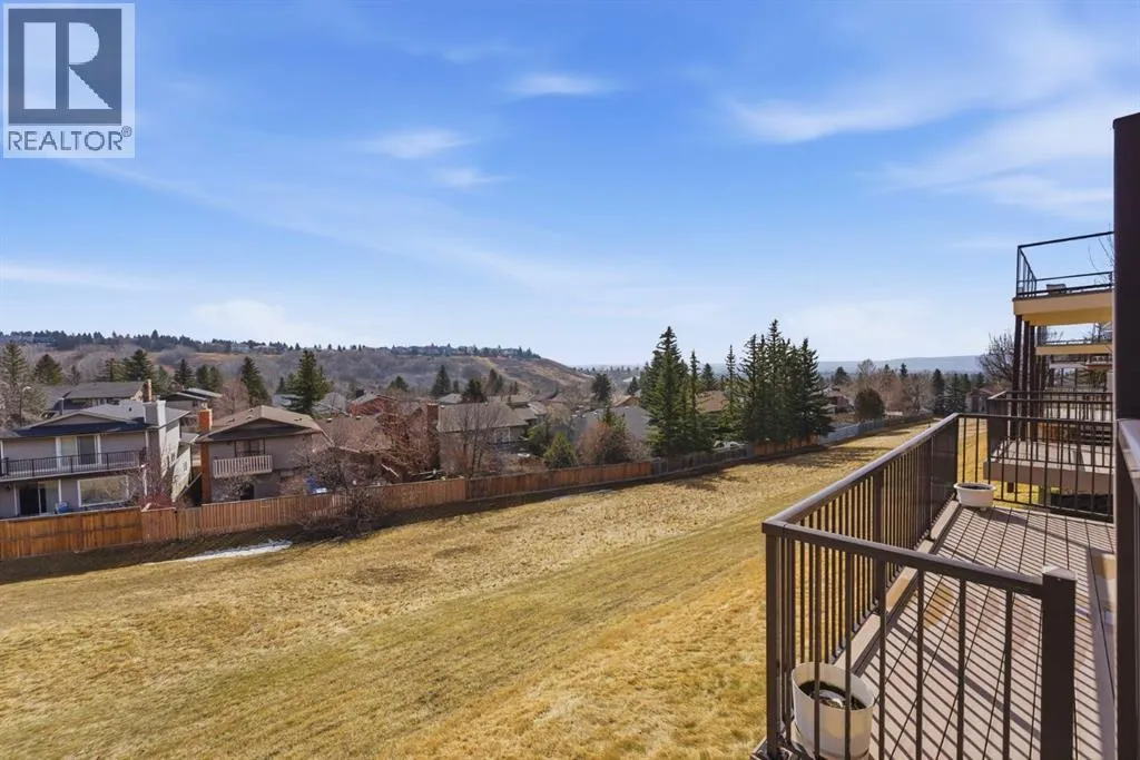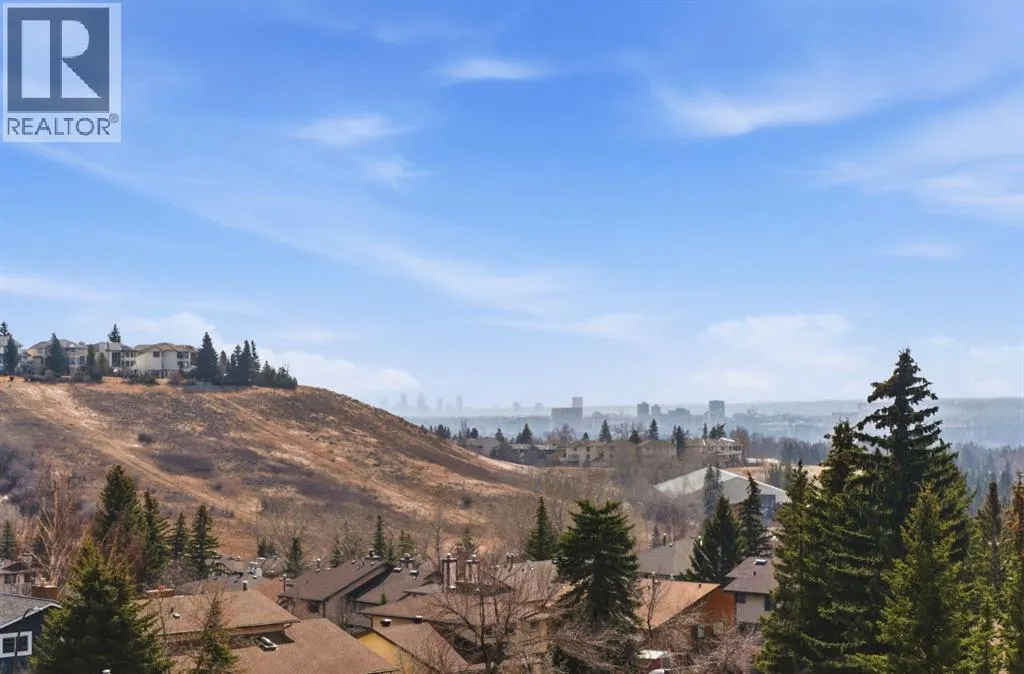 Discover 54 Edgeland Close NWâa beautifully maintained villa-style home in the prestigious Summit Point Estates of Edgemont. Perfectly positioned backing directly onto lush greenspace, this rare property offers breathtaking city and valley views from your private west-facing deck and select main-level windows. Enjoy unparalleled privacy and tranquility surrounded by mature trees, rolling green belts, and natural beautyâall steps from everyday conveniences. Completely updated throughout with fresh neutral décor, high-end plantation shutters on every window, and exquisite Brazilian Tigerwood hardwood flooring flowing seamlessly through most of the main floor. The home features a brand new high-efficiency furnace, central air conditioning, newer shingles and fresh exterior paint for lasting curb appeal and worry-free ownership. The sun-filled main level welcomes you through a large front entrance with vaulted ceilings and generous windows framing beautiful views. Open-concept living and dining area flows to a living room anchored by a gas fireplace featuring elegant oak mantle and stone facing, complemented by oak built-in bookshelves adding character and function. The chef's kitchen offers abundant oak cabinetry, granite countertops, stainless steel appliances, large pantry, in-floor heating for comfort, and garden door to west-facing balcony with gas BBQ hookupâideal for outdoor dining. Both balcony and lower deck feature new Duradek surfaces for fresh, durable, low-maintenance enjoyment. The oversized primary bedroom easily accommodates king-sized bed with 4-piece ensuite featuring in-floor heating. A main-floor office/den with custom oak built-ins provides versatile quiet workspace, while convenient 2-piece bath combined with laundry completes this well-designed level. The fully developed walk-out lower level offers 9-foot ceilings, full in-floor heating, sliding door to lower deck, and bright open layout perfect for relaxing or entertaining. The family room showca ses gas fireplace with oak mantle and brick facing plus oak built-ins for warmth and charm. Two generous bedrooms and 4-piece bathroom provide comfortable guest or family accommodation, while massive storage areas with extensive shelving and cabinetry ensure effortless organization. Step out to private west-facing decksâideal outdoor retreats for relaxing, entertaining, or soaking in spectacular city and valley vistas. Summit Point Estates delivers vibrant yet peaceful condo living with meticulously maintained common areas and easy access to Edgemont's shops, restaurants, transit, schools, and extensive pathway network. This turnkey villa combines exceptional updates, premium oak finishes, vaulted ceilings, large front entrance, comprehensive in-floor heating, central air conditioning, unbeatable greenspace position, and postcard-worthy views representing one of the finest offerings in Calgary's most coveted northwest enclaves. (id:27476)