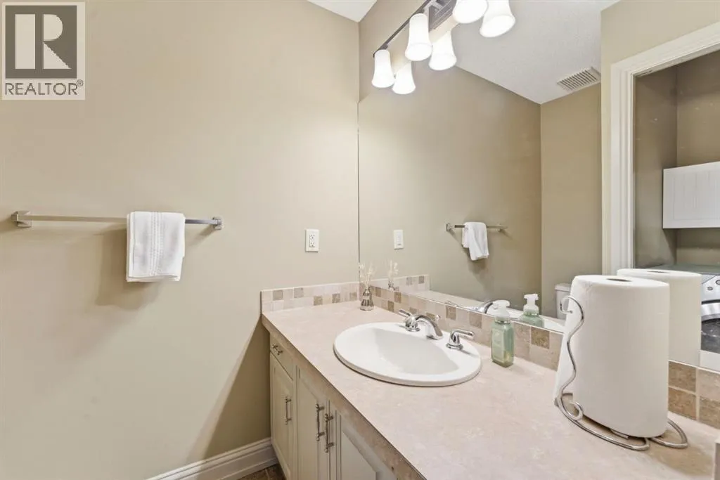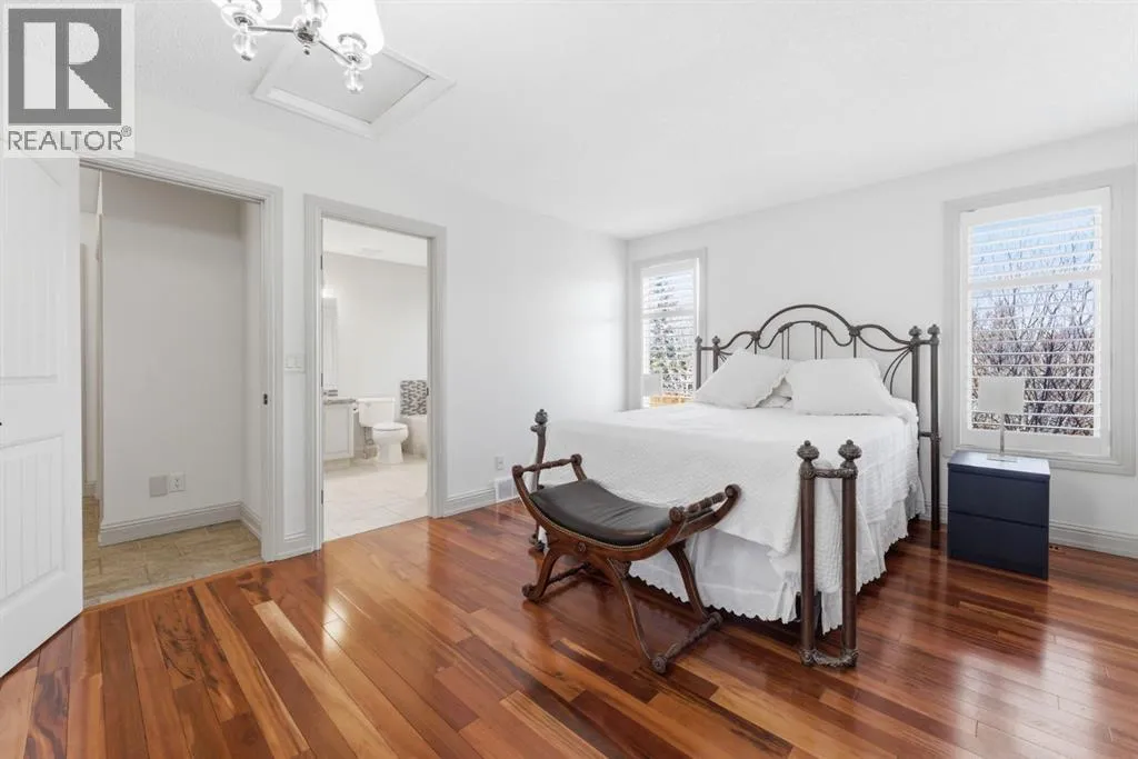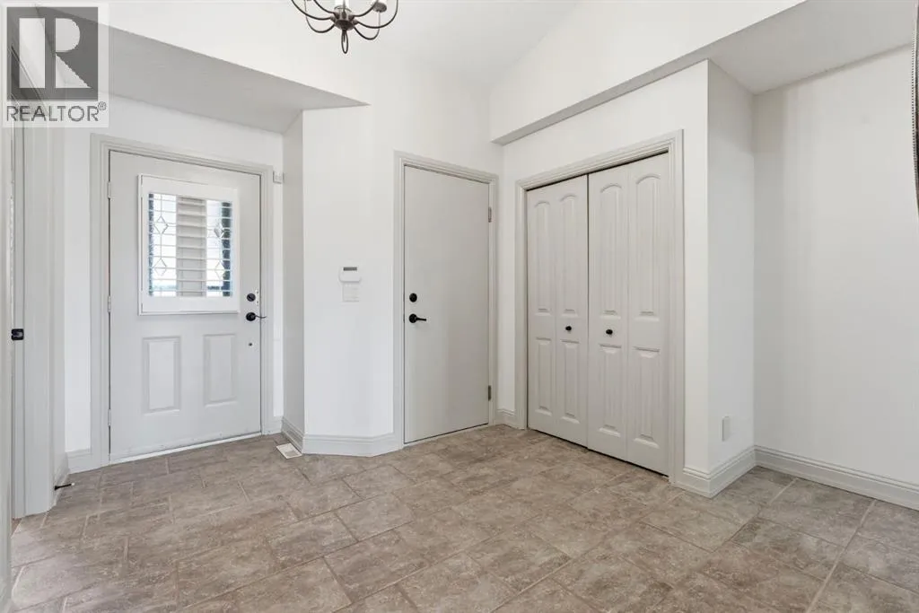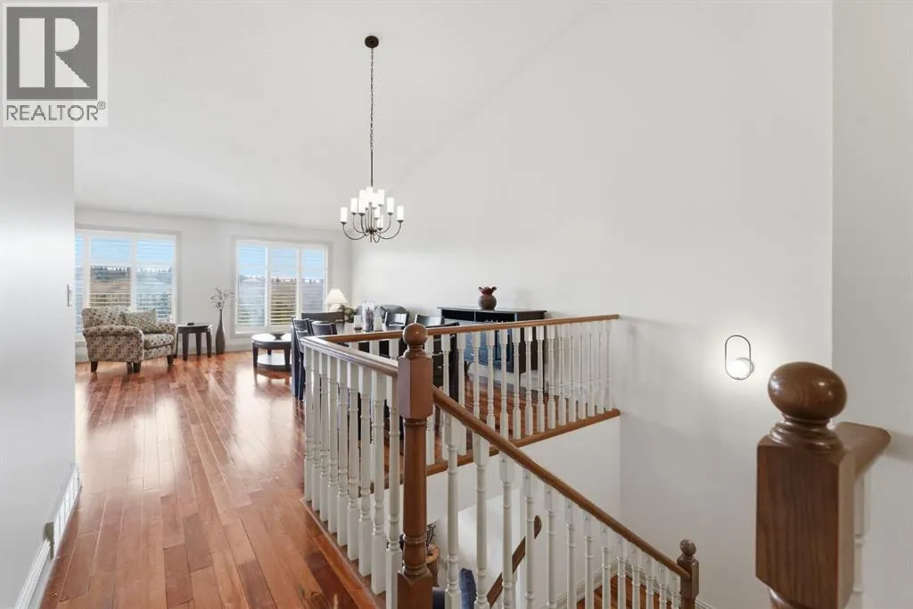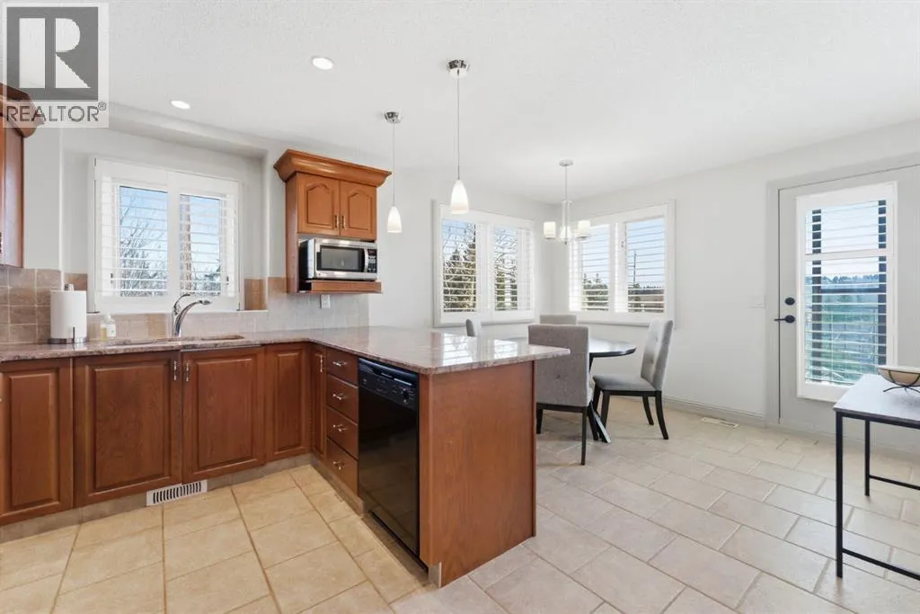 Discover 54 Edgeland Close NWâa beautifully maintained villa-style home in the prestigious Summit Point Estates of Edgemont. Perfectly positioned backing directly onto lush greenspace, this rare property offers breathtaking city and valley views from your private west-facing deck and select main-level windows. Enjoy unparalleled privacy and tranquility surrounded by mature trees, rolling green belts, and natural beautyâall steps from everyday conveniences. Completely updated throughout with fresh neutral décor, high-end plantation shutters on every window, and exquisite Brazilian Tigerwood hardwood flooring flowing seamlessly through most of the main floor. The home features a brand new high-efficiency furnace, central air conditioning, newer shingles and fresh exterior paint for lasting curb appeal and worry-free ownership. The sun-filled main level welcomes you through a large front entrance with vaulted ceilings and generous windows framing beautiful views. Open-concept living and dining area flows to a living room anchored by a gas fireplace featuring elegant oak mantle and stone facing, complemented by oak built-in bookshelves adding character and function. The chef's kitchen offers abundant oak cabinetry, granite countertops, stainless steel appliances, large pantry, in-floor heating for comfort, and garden door to west-facing balcony with gas BBQ hookupâideal for outdoor dining. Both balcony and lower deck feature new Duradek surfaces for fresh, durable, low-maintenance enjoyment. The oversized primary bedroom easily accommodates king-sized bed with 4-piece ensuite featuring in-floor heating. A main-floor office/den with custom oak built-ins provides versatile quiet workspace, while convenient 2-piece bath combined with laundry completes this well-designed level. The fully developed walk-out lower level offers 9-foot ceilings, full in-floor heating, sliding door to lower deck, and bright open layout perfect for relaxing or entertaining. The family room showca ses gas fireplace with oak mantle and brick facing plus oak built-ins for warmth and charm. Two generous bedrooms and 4-piece bathroom provide comfortable guest or family accommodation, while massive storage areas with extensive shelving and cabinetry ensure effortless organization. Step out to private west-facing decksâideal outdoor retreats for relaxing, entertaining, or soaking in spectacular city and valley vistas. Summit Point Estates delivers vibrant yet peaceful condo living with meticulously maintained common areas and easy access to Edgemont's shops, restaurants, transit, schools, and extensive pathway network. This turnkey villa combines exceptional updates, premium oak finishes, vaulted ceilings, large front entrance, comprehensive in-floor heating, central air conditioning, unbeatable greenspace position, and postcard-worthy views representing one of the finest offerings in Calgary's most coveted northwest enclaves. (id:27476)