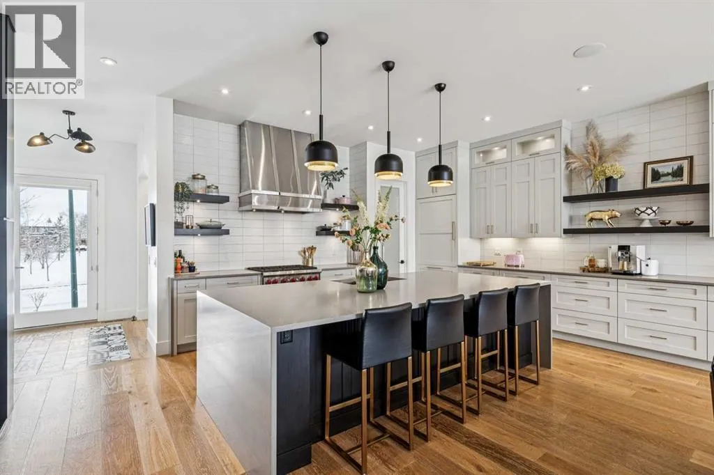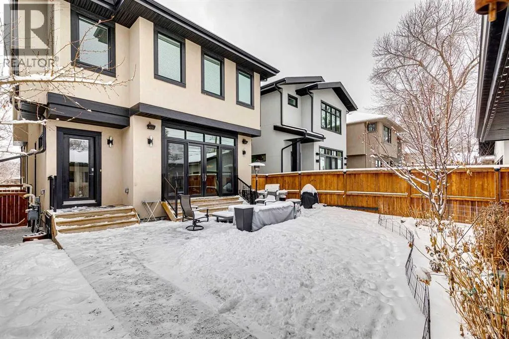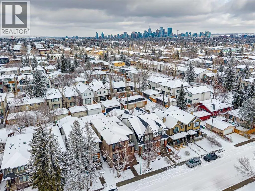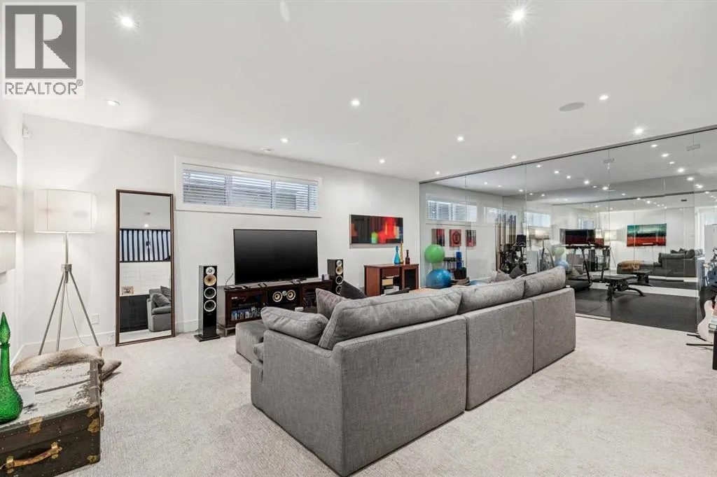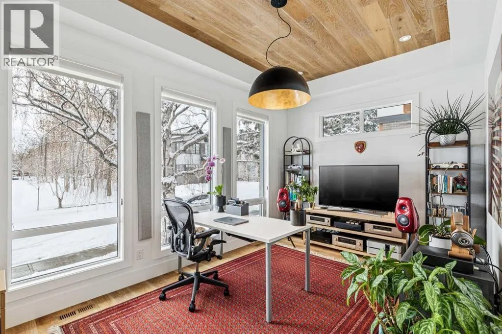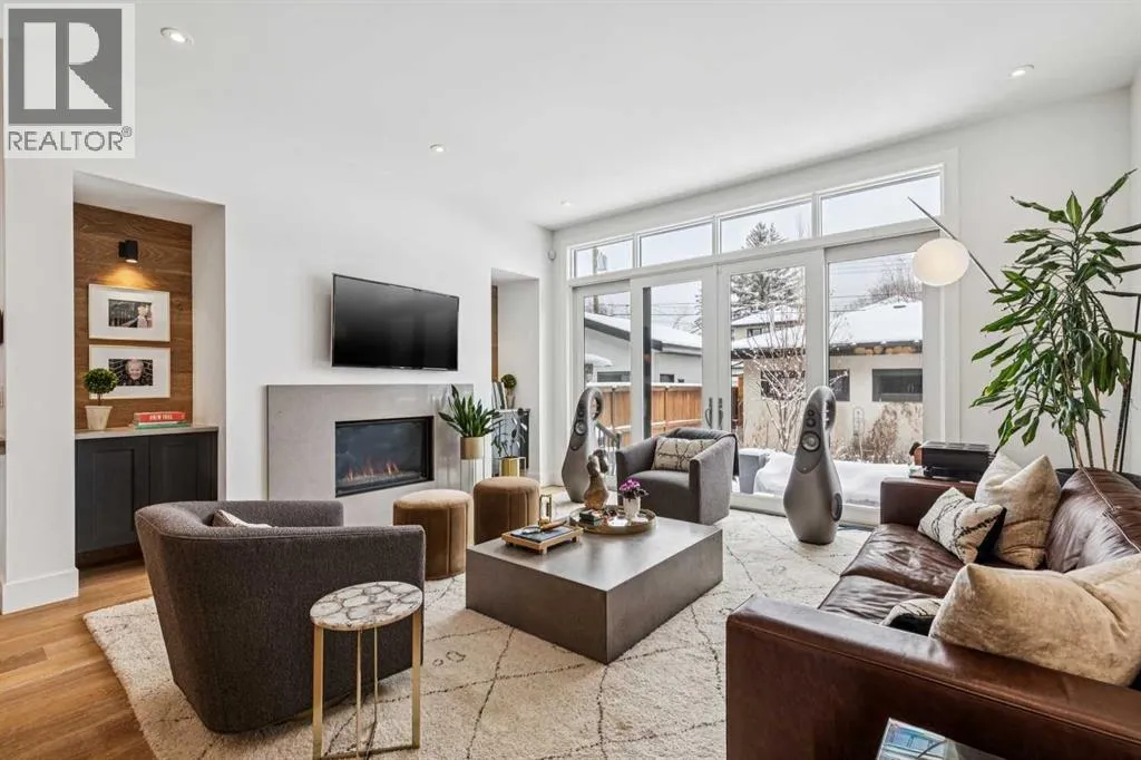 Parkside living meets elevated design in this luxurious detached home by award-winning custom builder CNJ Developments, ideally positioned on a tree-lined street in a prime location directly facing a green space. Thoughtful comfort upgrades elevate everyday living including central air conditioning, central vacuum, a power humidifier & built-in speakers across all 3 levels. Exceptional functionality & style come together in the chef-inspired kitchen where abundant 2-toned cabinetry, quartz countertops & high-end stainless steel appliances support both everyday cooking & entertaining. A Wolf gas range & Sub-Zero refrigerator anchor the appliance package while a beverage fridge, custom pantry & large centre island encourage casual gathering. Centring the open concept space, the dining room with chic lighting & clear sightlines promotes effortless conversation. Relaxation unfolds in the living room where a gas fireplace framed by built-ins creates a warm focal point while an entire wall of windows opens to the backyard, encouraging a seamless indoor & outdoor lifestyle. Organization remains simple thanks to a custom mudroom designed to store everyday essentials & seasonal gear. Productivity finds a quiet setting in the private main floor den where oversized windows & a wood ceiling detail create a sophisticated home office environment. Natural light continues upstairs where skylights brighten the hallway leading to the primary retreat. Oversized windows frame park views while a private balcony offers a peaceful setting for morning coffee or evening relaxation. An elegant tray ceiling enhances the sense of space while the luxurious ensuite includes dual vanities, a deep soaker tub, heated floors & an oversized steam shower. A skylight introduces additional daylight while a custom walk-in closet supports organized daily routines. Two additional bedrooms feature spacious layouts with wallpaper feature walls while a stylish 4-piece bathroom & convenient upper laundry compl ete the level. The fully finished lower living expands the home with heated floors that provide consistent comfort throughout. Evenings gather easily in the recreation room for movies or games while a wet bar keeps snacks & drinks within easy reach. Fitness routines remain convenient with a dedicated home gym while a fourth bedroom, versatile den & modern 4-piece bathroom offer flexibility for guests or hobbies. Outdoor living continues in the fully fenced backyard where children & pets have room to play & a patio invites summer barbeques & quiet evenings outdoors. Added privacy is created by the triple detached garage accessed from the rear lane. Sunny south exposure highlights the front patio where peaceful park views create a welcoming place to relax. Sandy Beach Park, the Elbow River pathways & the vibrant amenities of Marda Loop including boutique shops, tennis courts, the outdoor pool & acclaimed dining are all within walking distance, supporting an exceptional inner-city lifestyle. (id:27476)