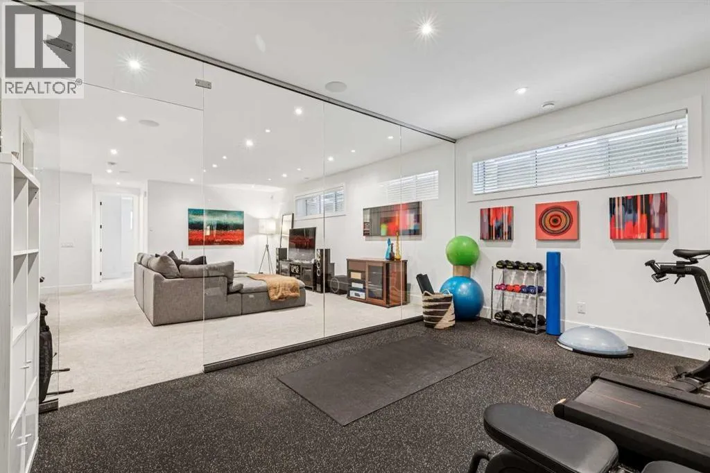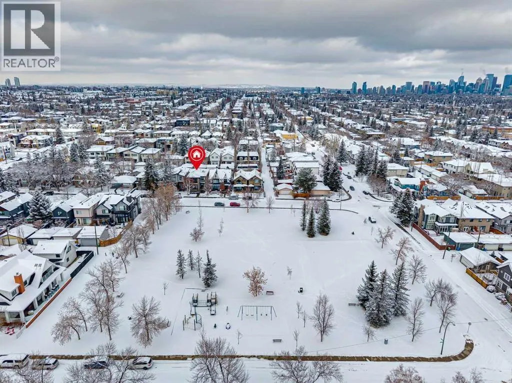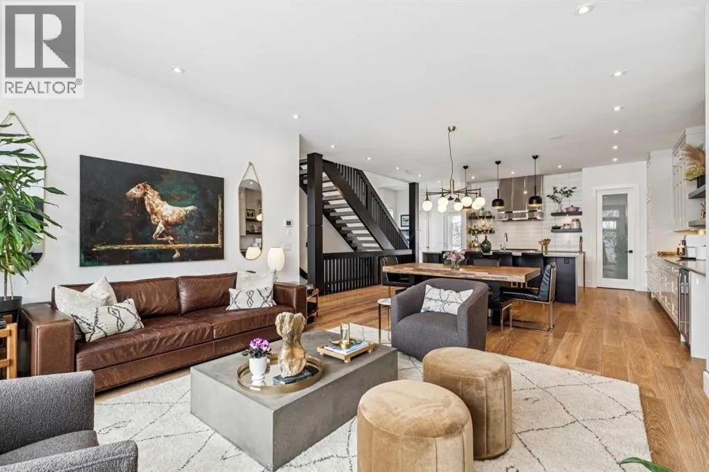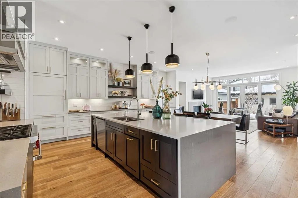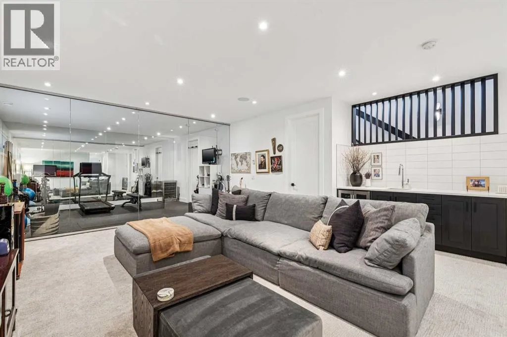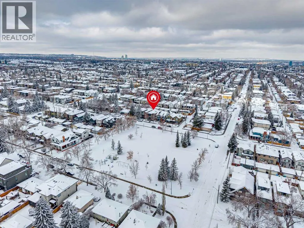 Parkside living meets elevated design in this luxurious detached home by award-winning custom builder CNJ Developments, ideally positioned on a tree-lined street in a prime location directly facing a green space. Thoughtful comfort upgrades elevate everyday living including central air conditioning, central vacuum, a power humidifier & built-in speakers across all 3 levels. Exceptional functionality & style come together in the chef-inspired kitchen where abundant 2-toned cabinetry, quartz countertops & high-end stainless steel appliances support both everyday cooking & entertaining. A Wolf gas range & Sub-Zero refrigerator anchor the appliance package while a beverage fridge, custom pantry & large centre island encourage casual gathering. Centring the open concept space, the dining room with chic lighting & clear sightlines promotes effortless conversation. Relaxation unfolds in the living room where a gas fireplace framed by built-ins creates a warm focal point while an entire wall of windows opens to the backyard, encouraging a seamless indoor & outdoor lifestyle. Organization remains simple thanks to a custom mudroom designed to store everyday essentials & seasonal gear. Productivity finds a quiet setting in the private main floor den where oversized windows & a wood ceiling detail create a sophisticated home office environment. Natural light continues upstairs where skylights brighten the hallway leading to the primary retreat. Oversized windows frame park views while a private balcony offers a peaceful setting for morning coffee or evening relaxation. An elegant tray ceiling enhances the sense of space while the luxurious ensuite includes dual vanities, a deep soaker tub, heated floors & an oversized steam shower. A skylight introduces additional daylight while a custom walk-in closet supports organized daily routines. Two additional bedrooms feature spacious layouts with wallpaper feature walls while a stylish 4-piece bathroom & convenient upper laundry compl ete the level. The fully finished lower living expands the home with heated floors that provide consistent comfort throughout. Evenings gather easily in the recreation room for movies or games while a wet bar keeps snacks & drinks within easy reach. Fitness routines remain convenient with a dedicated home gym while a fourth bedroom, versatile den & modern 4-piece bathroom offer flexibility for guests or hobbies. Outdoor living continues in the fully fenced backyard where children & pets have room to play & a patio invites summer barbeques & quiet evenings outdoors. Added privacy is created by the triple detached garage accessed from the rear lane. Sunny south exposure highlights the front patio where peaceful park views create a welcoming place to relax. Sandy Beach Park, the Elbow River pathways & the vibrant amenities of Marda Loop including boutique shops, tennis courts, the outdoor pool & acclaimed dining are all within walking distance, supporting an exceptional inner-city lifestyle. (id:27476)