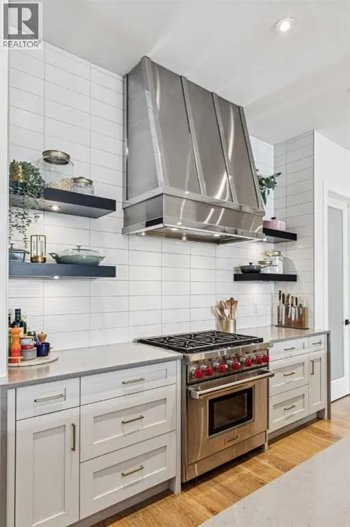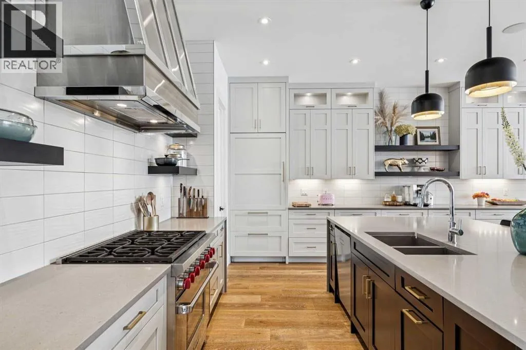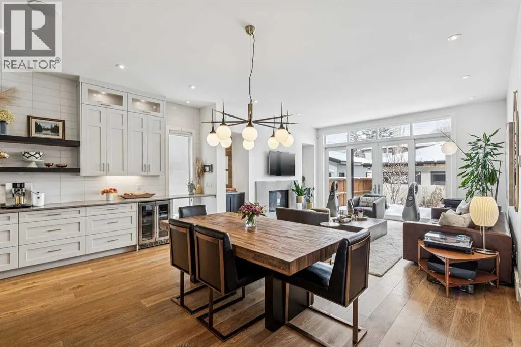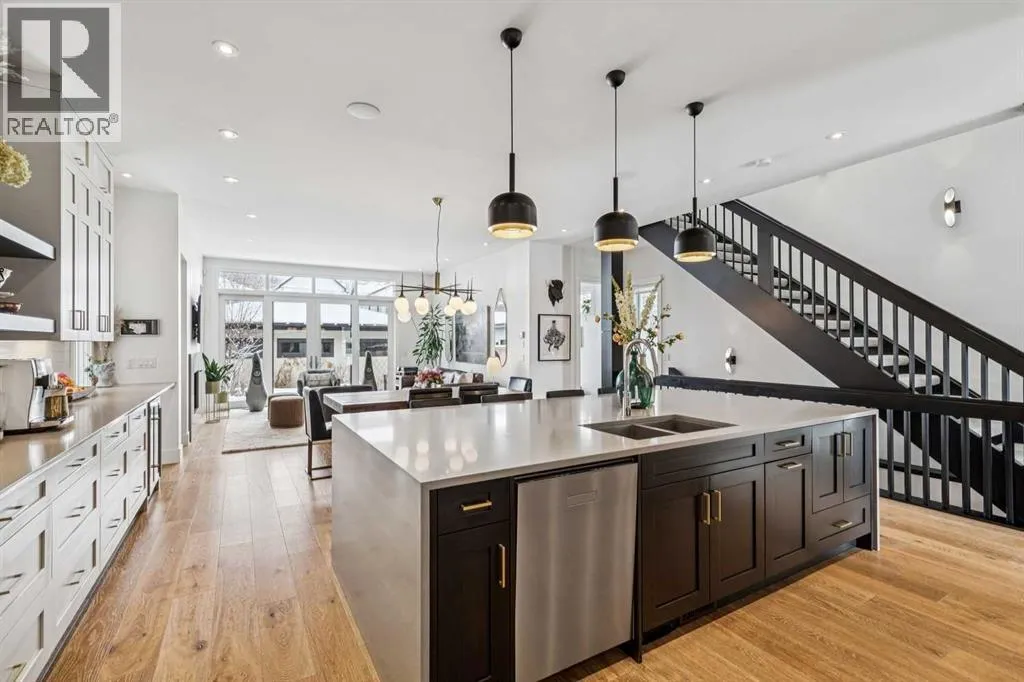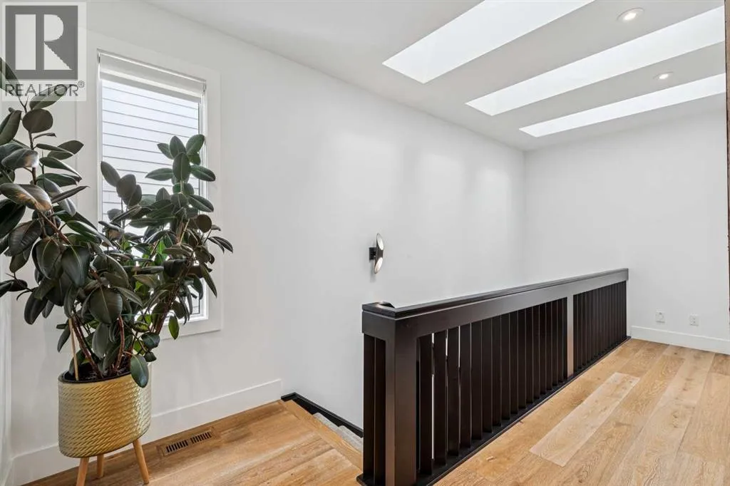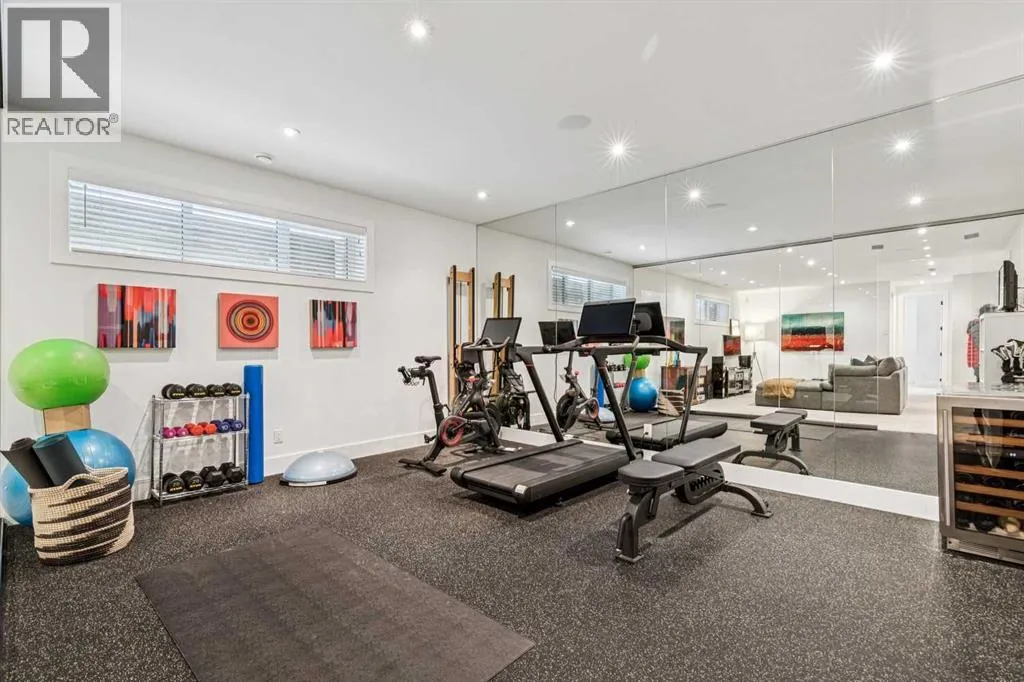 Parkside living meets elevated design in this luxurious detached home by award-winning custom builder CNJ Developments, ideally positioned on a tree-lined street in a prime location directly facing a green space. Thoughtful comfort upgrades elevate everyday living including central air conditioning, central vacuum, a power humidifier & built-in speakers across all 3 levels. Exceptional functionality & style come together in the chef-inspired kitchen where abundant 2-toned cabinetry, quartz countertops & high-end stainless steel appliances support both everyday cooking & entertaining. A Wolf gas range & Sub-Zero refrigerator anchor the appliance package while a beverage fridge, custom pantry & large centre island encourage casual gathering. Centring the open concept space, the dining room with chic lighting & clear sightlines promotes effortless conversation. Relaxation unfolds in the living room where a gas fireplace framed by built-ins creates a warm focal point while an entire wall of windows opens to the backyard, encouraging a seamless indoor & outdoor lifestyle. Organization remains simple thanks to a custom mudroom designed to store everyday essentials & seasonal gear. Productivity finds a quiet setting in the private main floor den where oversized windows & a wood ceiling detail create a sophisticated home office environment. Natural light continues upstairs where skylights brighten the hallway leading to the primary retreat. Oversized windows frame park views while a private balcony offers a peaceful setting for morning coffee or evening relaxation. An elegant tray ceiling enhances the sense of space while the luxurious ensuite includes dual vanities, a deep soaker tub, heated floors & an oversized steam shower. A skylight introduces additional daylight while a custom walk-in closet supports organized daily routines. Two additional bedrooms feature spacious layouts with wallpaper feature walls while a stylish 4-piece bathroom & convenient upper laundry compl ete the level. The fully finished lower living expands the home with heated floors that provide consistent comfort throughout. Evenings gather easily in the recreation room for movies or games while a wet bar keeps snacks & drinks within easy reach. Fitness routines remain convenient with a dedicated home gym while a fourth bedroom, versatile den & modern 4-piece bathroom offer flexibility for guests or hobbies. Outdoor living continues in the fully fenced backyard where children & pets have room to play & a patio invites summer barbeques & quiet evenings outdoors. Added privacy is created by the triple detached garage accessed from the rear lane. Sunny south exposure highlights the front patio where peaceful park views create a welcoming place to relax. Sandy Beach Park, the Elbow River pathways & the vibrant amenities of Marda Loop including boutique shops, tennis courts, the outdoor pool & acclaimed dining are all within walking distance, supporting an exceptional inner-city lifestyle. (id:27476)