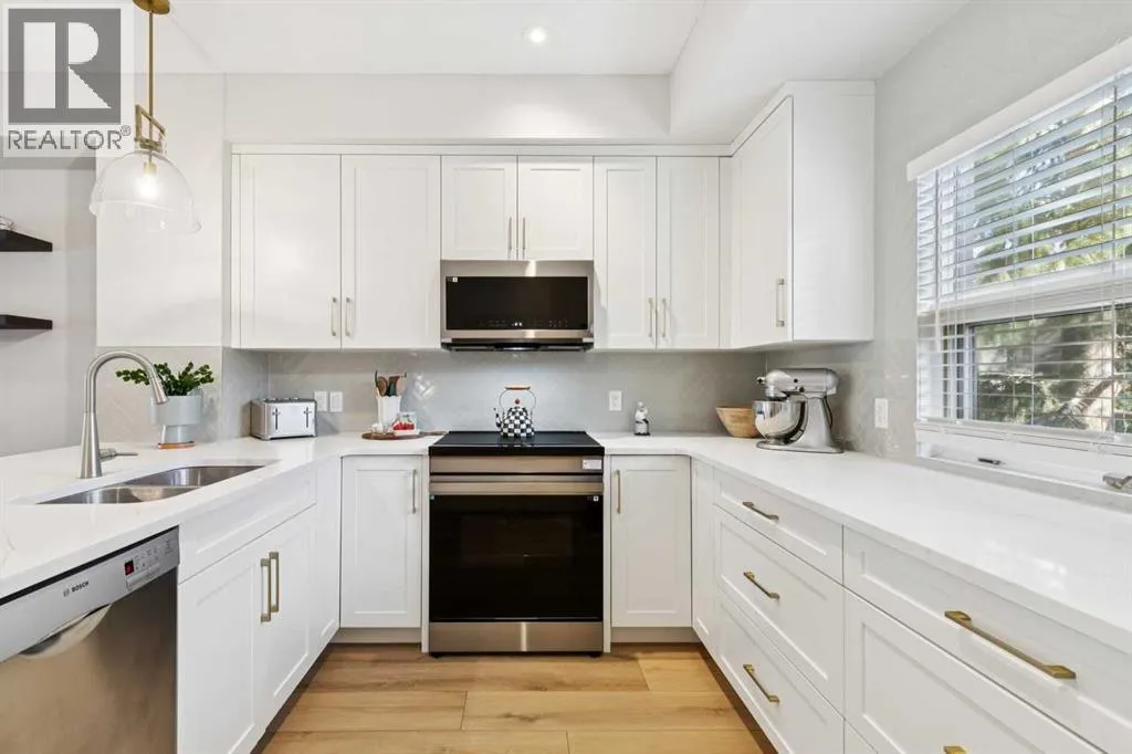 Fully Renovated | Over $100,000 in Upgrades | Turn-Key Townhome in Calgary| Close to LRT| Walk-in Garage on Main Floor | Welcome to this fully renovated, move-in ready townhome offering over 1,550 sq ft of developed living space across three levels, thoughtfully redesigned with professional upgrades. This home showcases exceptional craftsmanship, premium finishes, and modern functionality throughout, creating a perfect blend of style, comfort, and long-term value in a highly desirable Calgary location.The custom kitchen is a true focal point, featuring quartz countertops, custom cabinetry, and a premium appliance package including a refrigerator and dishwasher, an induction range, and a built-in microwave. Designed for both everyday living and entertaining, this space offers clean lines and high-end performance. Bathrooms have been completely transformed with custom vanities, new tile, modern fixtures, and fully updated plumbing, delivering a cohesive, elevated finish throughout the home. Interior upgrades include luxury vinyl plank flooring, new carpet, and tile flooring in key areas, complemented by fresh paint, updated doors and window casings, and new window coverings throughout. The home feels bright, modern, and truly turnkey. Major mechanical and electrical improvements provide peace of mind, including updated electrical systems, new lighting throughout, 15 LED pot lights, a new air conditioning unit, and a smart thermostat system for enhanced efficiency and comfort. Enjoy outdoor living on the brand new main balcony with vinyl decking, perfect for relaxing or entertaining.The functional layout offers spacious living and dining areas, a well-appointed kitchen, and comfortable upper-level bedrooms, including a primary suite with a walk-in closet and ensuite, making this an ideal fit for both end-users and investors. This is a rare opportunity to own a completely renovated Calgary home where all the work has already been done, simply move in and enjoy. (id:27476)