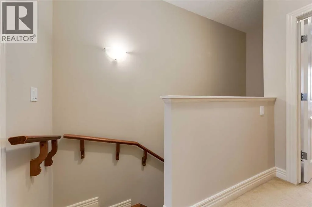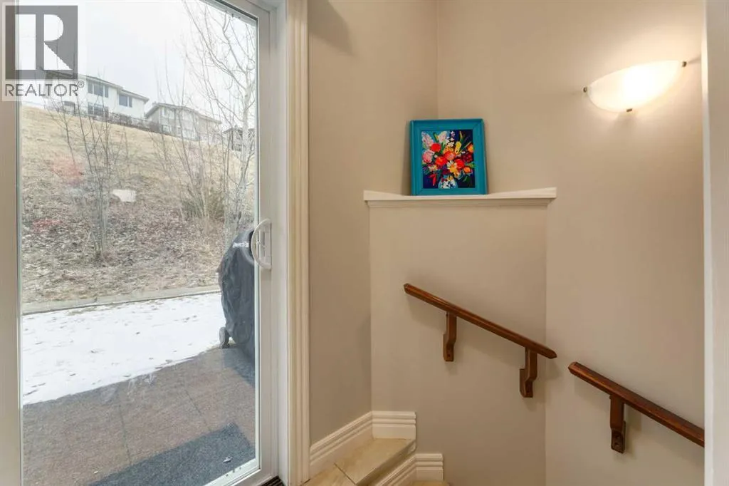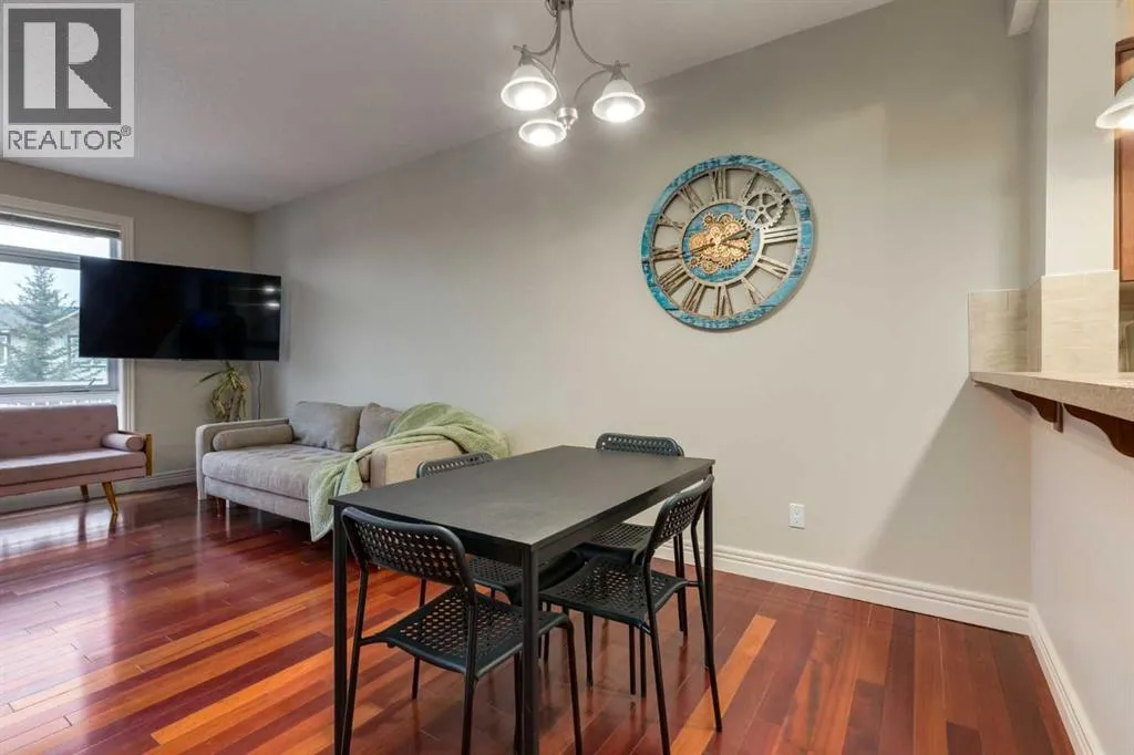 Exceptional value with low condo fees in the highly sought after community of Rocky Ridge, offering west facing mountain views and a quiet, private location in the complex. The entry level welcomes you with a spacious foyer, additional storage and direct access to the single attached heated garage, complete with an EV charging station. The main floor features 9â ceilings, rich cherry hardwood flooring and a bright open concept design ideal for everyday living. The kitchen connects to the dining and living areas, while large windows flood the space with natural light. Just off the living room, a patio door opens to a spacious deck; perfect for relaxing or entertaining. Upstairs, enjoy the convenience of upper level laundry. The primary bedroom captures beautiful mountain views and includes a 3 piece ensuite, while a second bedroom and full 4 piece bathroom offer flexibility for family, guests or an additional space for a home office. Recent updates include; Furnace (2021), Epoxy flooring in garage (2024), Hot water tank (2025) and Humidifier (2025). The complex itself includes a spacious fitness centre, ample visitor parking, gazebo area and included in the condo fees is access to the Rocky Ridge Community Center. The community provides easy access to parks, playgrounds, walking paths, shopping & schools. Just 15 minutes from the University of Calgary, Foothills Hospital, Calgary Childrenâs Hospital, Market Mall, Bowness Park, Canada Olympic Park & more! (id:27476)