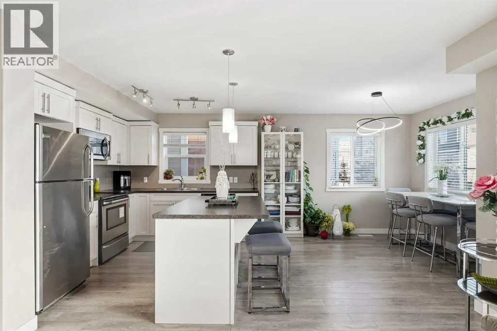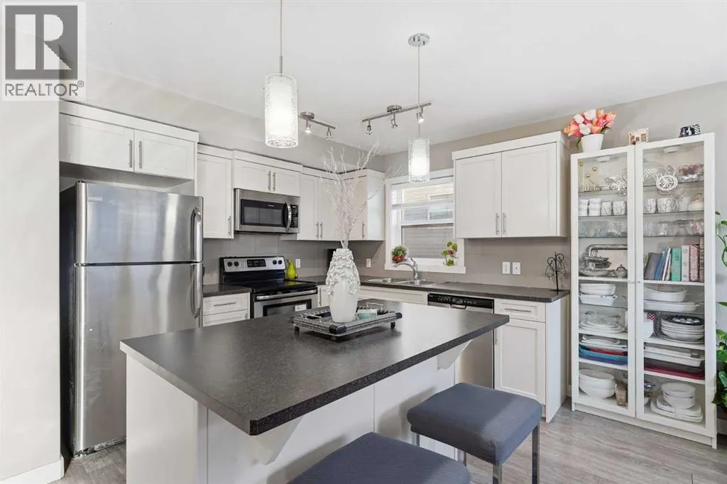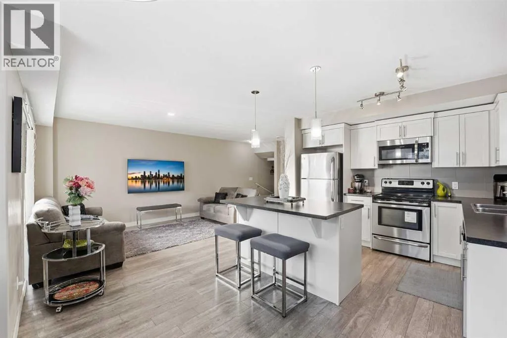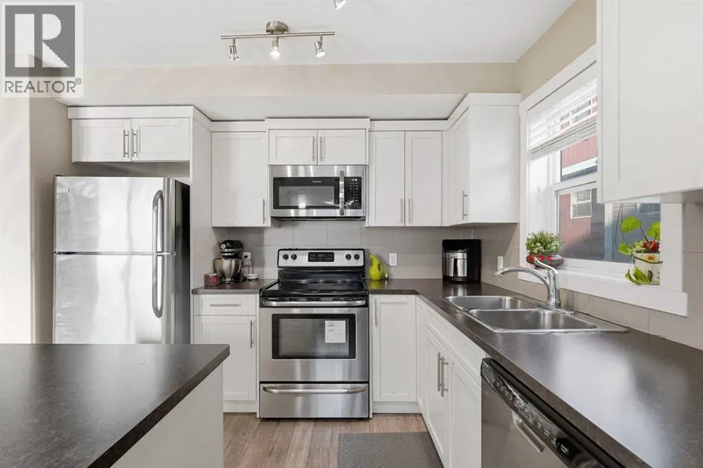 CORNER UNIT | PRICED TO SELL | LOW CONDO FEESThis beautifully maintained three-storey townhome offers natural lights and modern living. Move in worry-free with recent updates, including a NEW ROOF and repaired siding. Safety is covered with BRAND-NEW FIRE and CO2 ALARMS on every floor. Inside, enjoy an upgraded ceiling light in the dining area and a NEW microwave. The middle-floor washroom features a LARGE SINK and the attached OVERSIZED GARAGE comes with new wall racks for extra storage and a WALL-HEATER. Ground Level: Flexible den or private home office, plus access to your SINGLE ATTACHED GARAGE with extra storage room. Main Level: The kitchen boasts rich cabinetry, quartz countertops, stainless steel appliances, and an island with breakfast bar. It flows seamlessly into the dining area and cozy living room. Step out to your sunny BALCONY with BBQ GAS OUTLET, perfect for summer entertaining. Upper Level: Retreat to three spacious bedrooms, including a primary bedroom with VAULTED CEILING, walk-in closets, and a private ensuite. Two additional bedrooms share a full bathroom. Convenience is key with THREE CEILING FANS and a dedicated laundry area on the main level. Located just minutes from schools, shopping, restaurants, the airport, and major routes like Stoney Trail and Deerfoot. Whether youâre a first-time buyer, investor, or growing family, this move-in-ready gem combines style, comfort, and smart updates in one fantastic package. Donât miss your chance and book your private showing today! (id:27476)