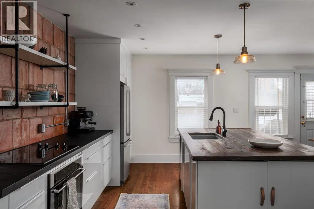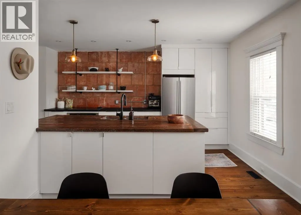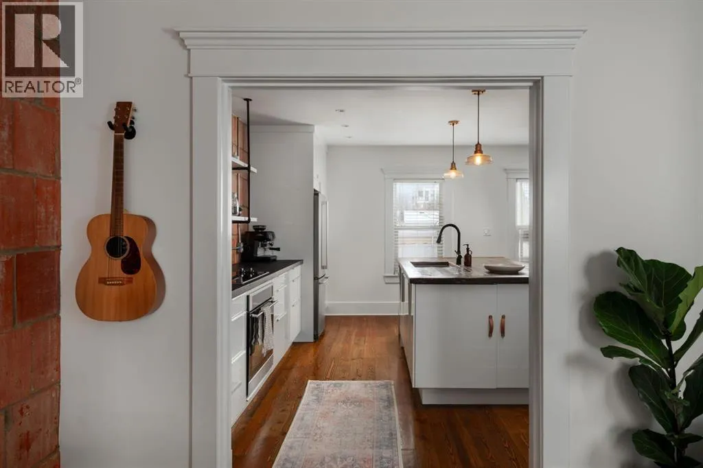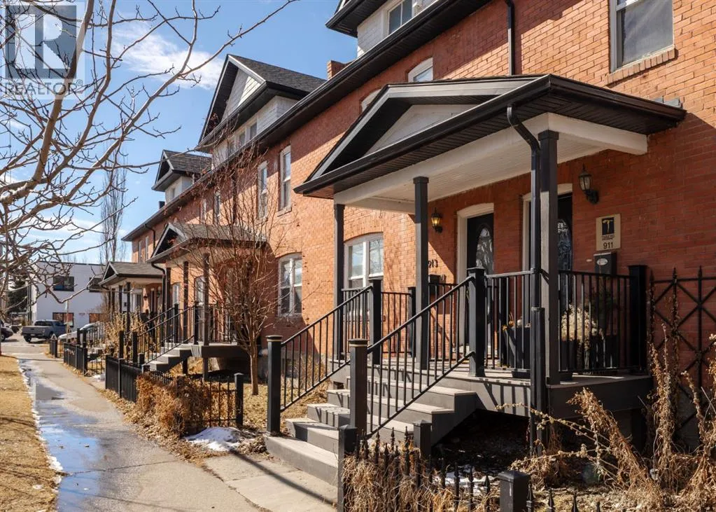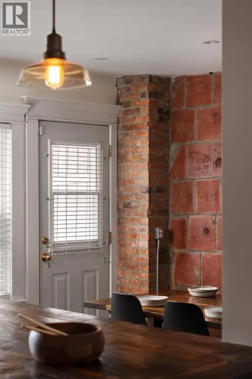 **Open Houses Cancelled** Welcome to the Historic Hamilton Apartments, built in 1912 and located in the heart of Inglewood of Calgaryâs most iconic and storied communities. This 114 year old brick townhome (No Condo Fees) stands as a testament to time, having been present since the inaugural Calgary Stampede and just steps from Atlantic Avenue, the cityâs original Main Street.Built by John Hamilton, this solid brick residence seamlessly blends rich history with thoughtful modern updates. Inside, exposed original brick walls line the main living spaces, while industrial lighting and updated electrical elements complement the homeâs early architectural character. Carefully preserved details including original chandeliers, heat registers, and mouldings add authenticity and warmth throughout. The main floor offers an inviting, sun filled living room, perfect for relaxing or entertaining. The renovated kitchen features a built-in stove, full stainless steel appliance package, and distinctive billiard slate and barn wood countertops. A striking dining area set against a backdrop of exposed brick creates a truly memorable space for hosting family and friends.Upstairs, youâll find beautifully maintained original wood railings, large period baseboards, and a refreshed 4-piece bathroom complete with upgraded tile, new vanity, and built-in shelving. Three spacious bedrooms include an oversized primary retreat with warm afternoon sun, elegant wall sconces, and wainscotting detailing. Secondary bedrooms enjoy bright east-facing morning light. The fully developed basement adds versatility with a cozy alcove and den ideal for a home office, media room, or play space, along with a utility/laundry area and ample storage, with potential for further development.Outside, enjoy an elevated wood deck, two rear parking stalls, and a charming low-maintenance front courtyard enclosed by wrought iron fencing.Recent updates include a newer hot water tank, washer, and dishwasher, blackout bl inds in all bedrooms, a new bathroom vanity, luxury vinyl plank flooring on the upper level, attic insulation, and a freshly repainted main floor.Located just off 9th Avenue, this home offers unbeatable access to Inglewoodâs vibrant shops, dining, and amenities. Youâre steps from the aquatic centre, close to Pierce Estate Park and the Inglewood Bird Sanctuary, and only minutes from downtown Calgary and the Calgary Zoo.Homes like this are rare donât miss your chance to own a true piece of Calgary history. (id:27476)