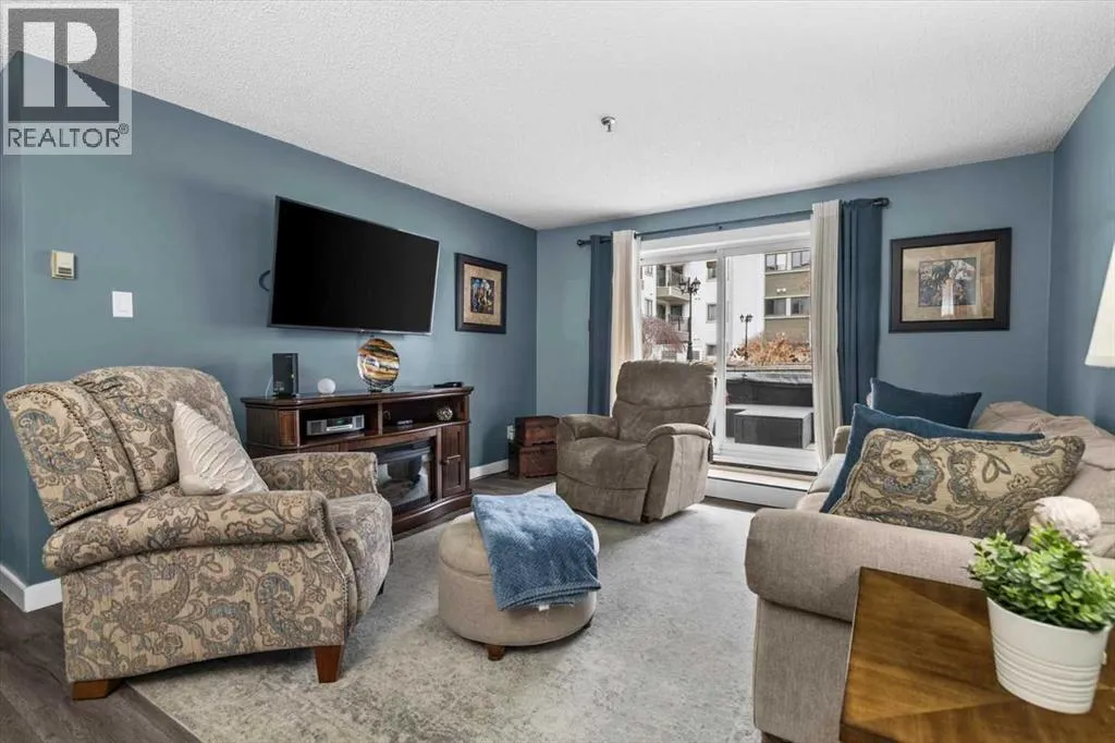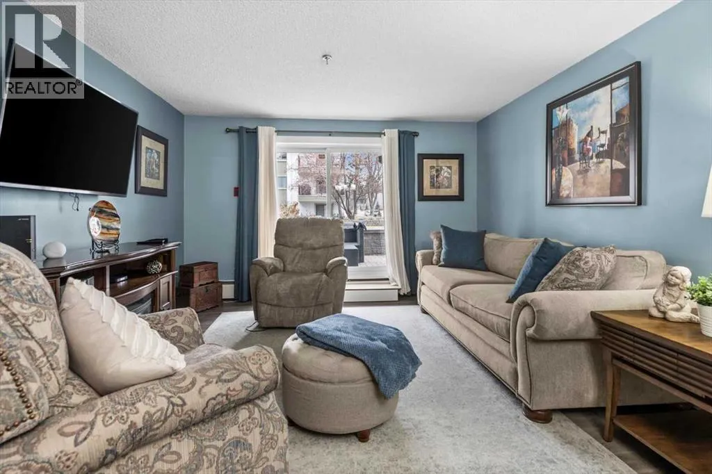 Well-maintained and thoughtfully updated Adult living 40+ building, this main floor 2-bedroom unit in Windsor Park offers comfortable living in a highly convenient location. The home features updated flooring and lighting, along with a refreshed kitchen complete with stainless steel appliances. The bathroom has also been updated with modern fixtures and includes a relaxing jacuzzi tub.Over the years, additional improvements include interior doors, trim, and electrical updates. The unit offers the added convenience of in-suite laundry and extra storage. As an end unit with no neighbours on either side, it offers added privacy along with a side window off the dining area that creates a natural cross-breezeâhelping keep the space comfortable during warmer months. The covered exposure over the patio provides some welcome shade for those hot summer days.An assigned parking stall is included.Ideally located just steps to transit with quick access to downtown, and close to Chinook Centre, the LRT, grocery stores, and everyday amenities, this is a highly walkable and accessible location. The building has undergone ongoing exterior improvements and shows pride of ownership throughout, with a strong reserve fund in place.A great opportunity for those seeking value in an established central community. Quiet building. Non-smoking home. No pets permitted. Below grade on main level, vacant and easy to show. Flexible possession. (id:27476)