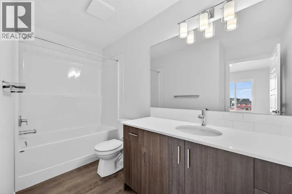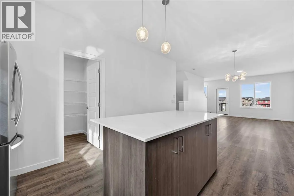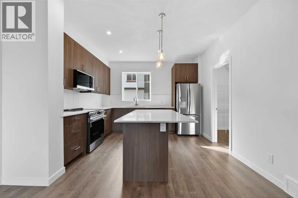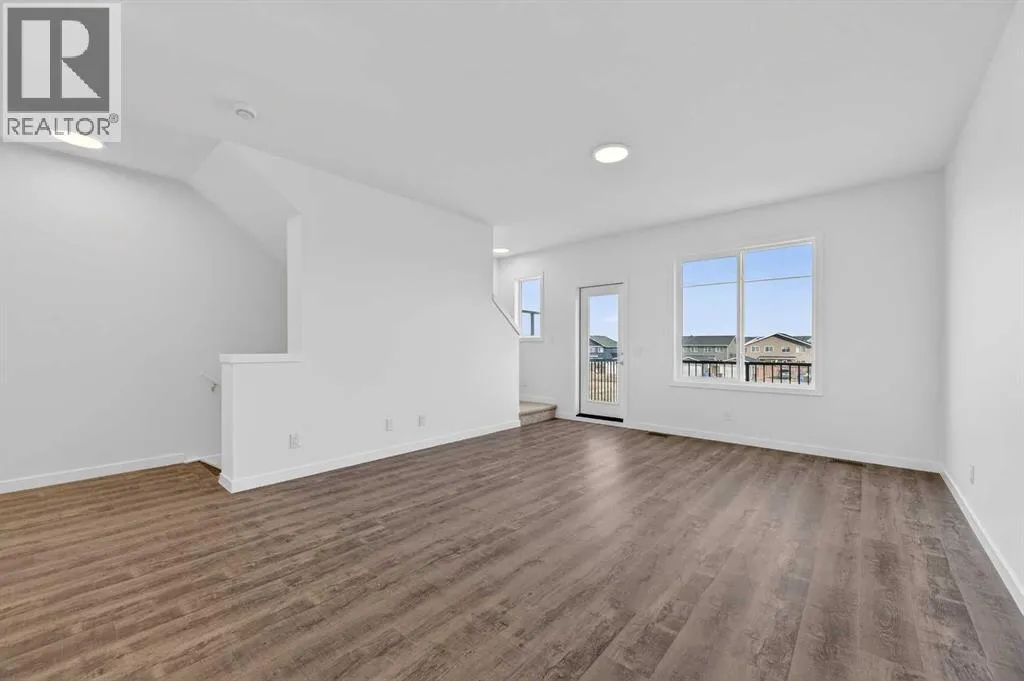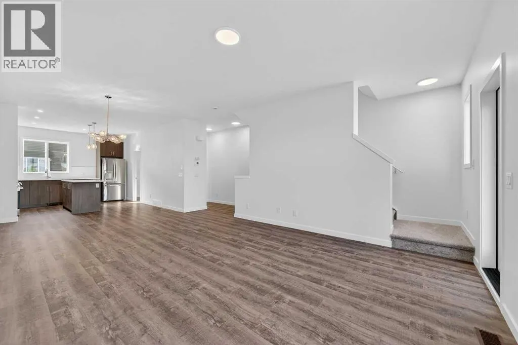 OPEN HOUSE on Saturday and Sunday from 12-5pm. Please go to the show home located at 101, 28 Red Embers Plaza NE for access. StreetSide proudly presents this highly desired interior-unit townhome that offers a sophisticated blend of expansive living space and elegant modern finishes. Designed with versatility in mind, the residence features four spacious bedroomsâincluding a convenient lower level bedroom ideal for guests or a home officeâand two and a half well appointed bathrooms. The heart of the home is an open-concept main floor that flows seamlessly onto a private balcony, perfect for indoor-outdoor entertaining. Culinary enthusiasts will appreciate the chef-inspired kitchen, which comes standard with modern dark slab-style cabinetry, a full bank of storage drawers, polished white quartz countertops, and premium stainless steel appliances. The interior aesthetic is defined by contemporary durability, featuring luxury vinyl flooring throughout the primary areas and premium 8lb underlay carpet for added comfort on the stairs and upper level. Practicality meets luxury with a dedicated upper-level laundry room and an attached double car garage. Located within Redstone Square this home places you at the heart of the dynamic Redstone neighborhood. Enjoy the ease of a convenient location with quick access to major routes, including Stoney Trail, ensuring you are never far from the city's best. The community is strategically positioned near future commercial developments, promising shops, services, dining, and entertainment options just moments from your doorstep. (id:27476)