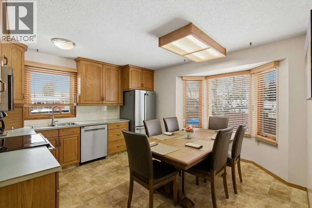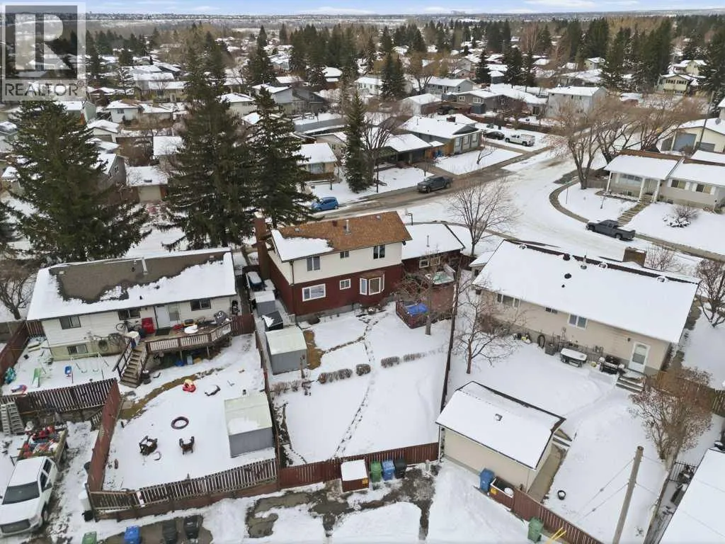 Welcome to this beautifully maintained home, nestled on a quiet, established street in the highly desirable community of Queensland. Situated on a massive corner pie lot, this property offers outstanding outdoor space, thoughtful updates, and exceptional value. Pride of ownership shines throughout, with meticulous care evident in every detailâcreating a home that has been truly enjoyed for family living. Step inside to a welcoming foyer that opens into a spacious living room featuring a cozy wood-burning fireplace, a versatile dining (flex) area, and a bright kitchen complete with stainless steel appliances, ample cabinetry, and a sunny eating nook. The main level also includes a generously sized bedroomâideal for a primary suite or guest spaceâalongside a convenient 3-piece bathroom. Upstairs, youâll find three additional well-proportioned bedrooms, including a primary retreat with dual closets and cheater access to a 4-piece bathroom, offering a functional and flexible layout for families. The fully finished lower level expands your living space with a large recreation room, dedicated office, laundry area, and plenty of storage, including built-in shelving and a workshop. Step outside to an impressive backyard retreat set on an expansive pie-shaped lot, offering space, privacy, and endless potential. The fully fenced yard features a mature apple tree, spacious deck, hot tub, irrigation system, and three storage shedsâperfect for everyday living, kids, and pets. There is also convenient access to the rear alley. The oversized double front detached garage is heated, insulated, and equipped with built-in storage and a workspace, providing both function and versatility. Curb appeal is enhanced with Gemstone lighting on both the home and garage. Additional highlights include air conditioning, a VacuFlow central vacuum system, fresh neutral paint, newer kitchen appliances (2023), washer and dryer (2024), updated bathroom fixtures, and upgraded LED lighting throughout. T he home has been meticulously well maintained, with exterior and fence painting completed just two years ago. Ideally located within walking distance to Fish Creek Park, and close to both public and Catholic schoolsâincluding elementary and middle schools just steps awayâthis home also offers easy access to Bow Bottom Trail and nearby amenities. Enjoy being part of a welcoming, family-oriented community with year-round activities such as skating and pickleball. A true gemâhomes with lots like this seldom become available. This is your chance to own a beautifully cared-for property in one of Calgaryâs most established and sought-after neighbourhoods. (id:27476)