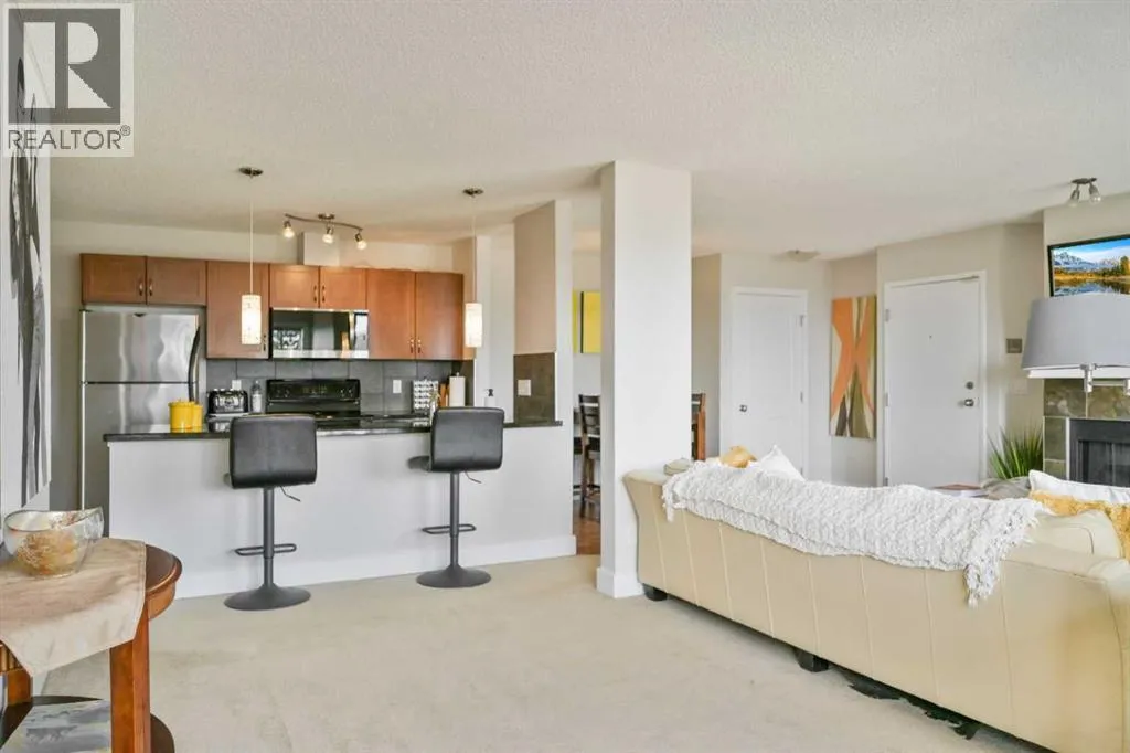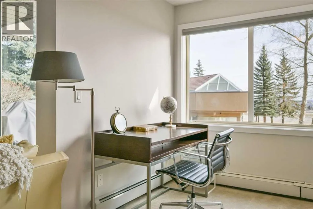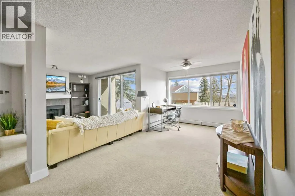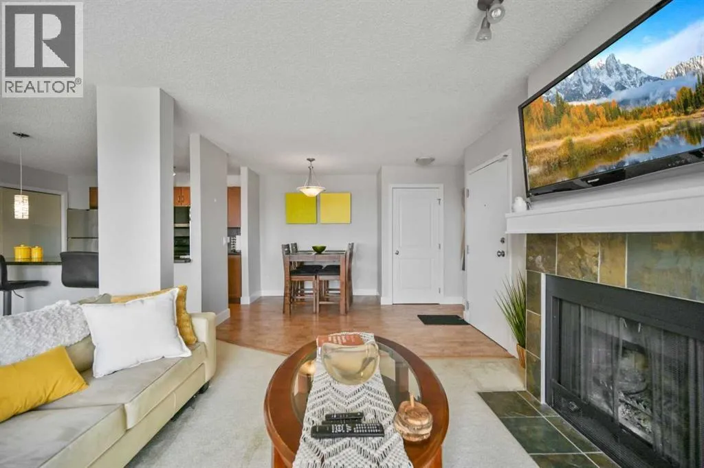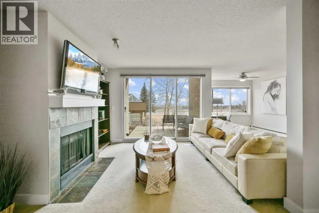 Click brochure link for more details. DEVELOPER SHOW SUITE | FULLY FURNISHED | 1,000+ SQ FT | UNOBSTRUCTED CITY VIEWS | TURN KEY INVESTMENT Step inside the developerâs former show suite, ideally located in the highly sought after community of The News at Broadcast Hill in the prestigious southwest neighbourhood of Patterson Heights. This ground floor, 2 bedroom, 2 bathroom walk out unit offers over 1,000 sqft of living space with unobstructed city skyline views from every room. Opportunities like this are rare, combining location, size, and value in one offering. The home has been fully upgraded and freshly painted, featuring brand new appliances and window coverings. Highlights include two full bathrooms, a spacious primary bedroom with walk in closet, in suite washer and dryer, underground parking, a large south facing patio, and a cozy wood burning fireplace. This unit is truly turn key and comes fully furnished with high end furnishings and curated artwork throughout. Whether you are looking for a move in ready home or a strong long term rental investment, this property delivers. Just bring your suitcase. Originally held as the developerâs prized show suite, this home includes premium upgrades and one of the best locations within the community, just steps from its exceptional amenities. Residents enjoy access to an indoor pool, hot tub, fitness centre, tennis and basketball courts, and an event space for private gatherings. Set on 17 acres of private land, this pet friendly community offers a unique lifestyle just 10 minutes from downtown Calgary. Enjoy peaceful walks, mature surroundings, and the soothing sound of the nearby waterfall just outside your door. This is the first time this unit has been offered for sale since its original purchase from the developer. A rare opportunity to own a fully furnished, show suite quality home in one of Calgaryâs most desirable southwest communities (id:27476)